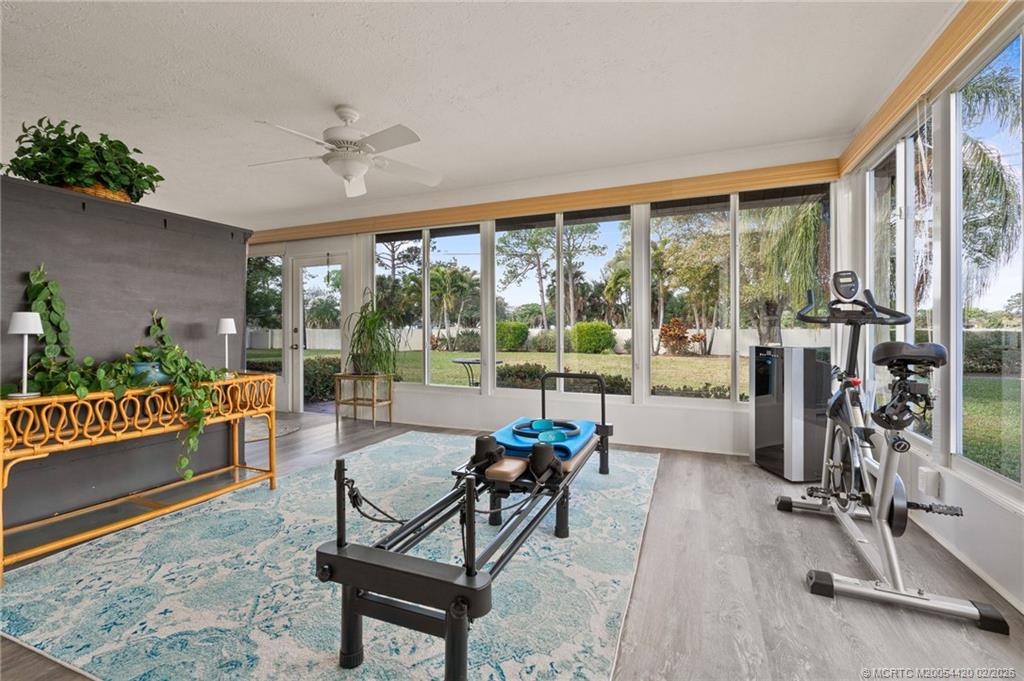 Stunning, totally updated, wheelchair accessible home. 3 bedrooms, 2 newly renovated baths, cathedral ceilings, Island Kitchen with quartz throughout and all new appliances There is a whole house water filtration system with UV, new A/C with Remi Halo and UV, new impact windows, vinyl floor, irrigation system is on well water, The lot is elevated and gives up close golf course view of the Martin County public course. Community has active pickleball , tennis, bocce, shuffleboarad, hugh clubhouse, , gym, dogparkl. It is Close to beaches, shops and medical facilities.
