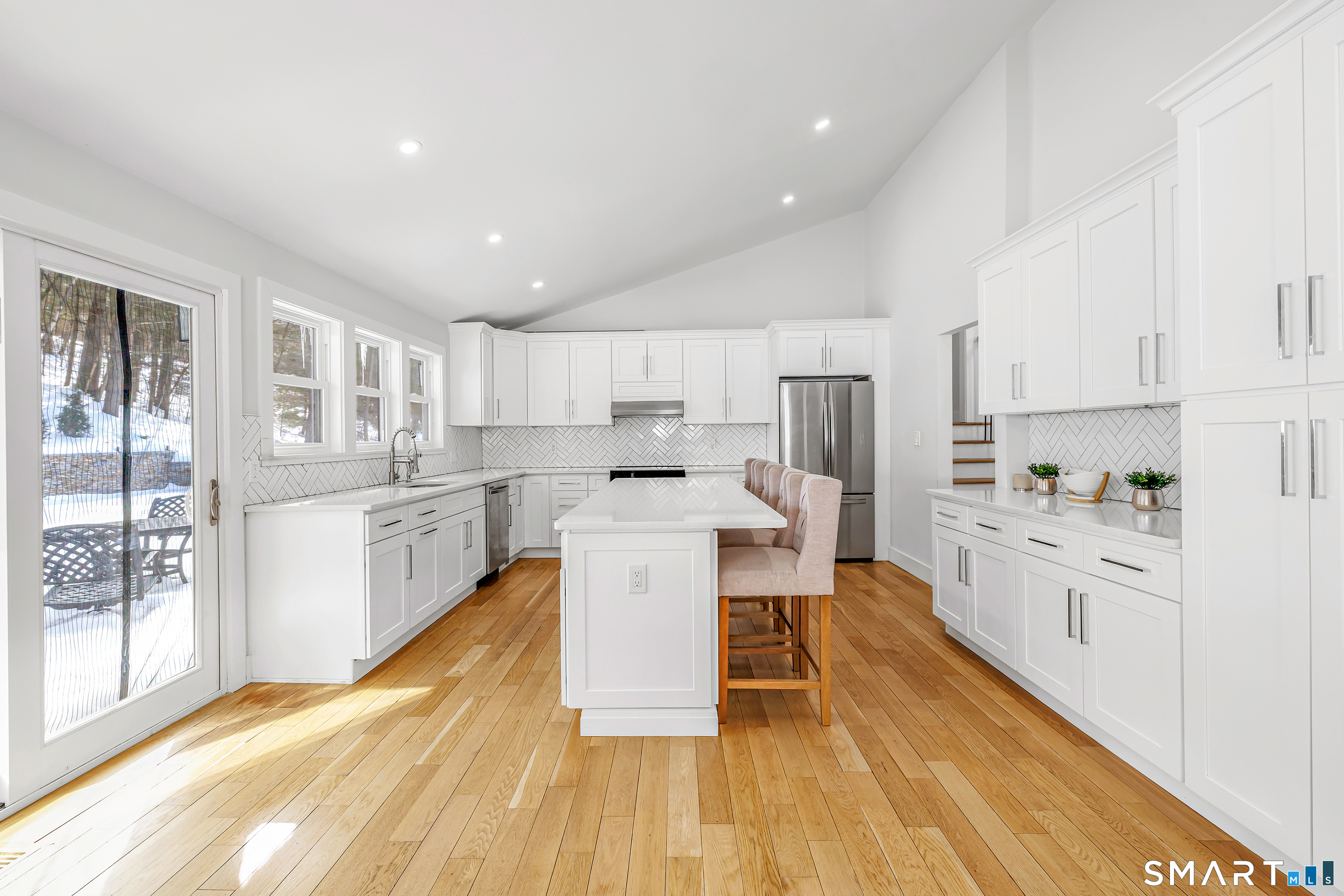 Beautifully remodeled and thoughtfully upgraded, this modern Monroe home offers the perfect blend of comfort, design, and nature. Featuring 4 bedrooms and 3 fully updated bathrooms, the interior showcases white oak hardwood floors, neutral tones, a bright white kitchen with granite surfaces and newer appliances, and a spacious living room with fireplace. The dining area opens to a three seasons porch, overlooking peaceful wooded views, ideal for enjoying birds and seasonal scenery. Since purchasing, the owners have invested in exceptional lifestyle enhancements, including a professionally designed backyard patio with stone and glass fencing, brand new retaining walls, and an outdoor gazebo and hot tub, creating a private retreat. The three seasons porch boast brand new windows, brand new sliding doors and bifold custom doors. The main bedroom features a newly installed electric window to maximize natural views along with a custom-built master closet. Additional upgrades include a finished garage floor, electric vehicle charger, and lease-to-own solar panels for energy efficiency. Set in the sought-after town of Monroe close to parks, trails, shopping, and top-rated schools, this move-in-ready home offers modern updates, privacy, and everyday functionality. Simply unpack and enjoy. Solar panel lease is transferable. Call agent for more info.