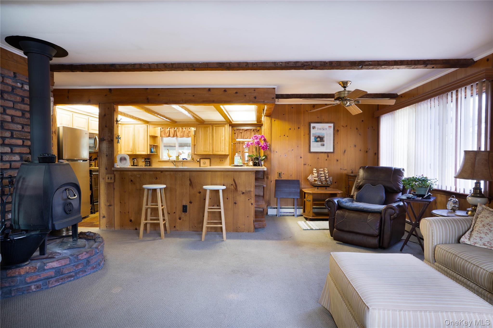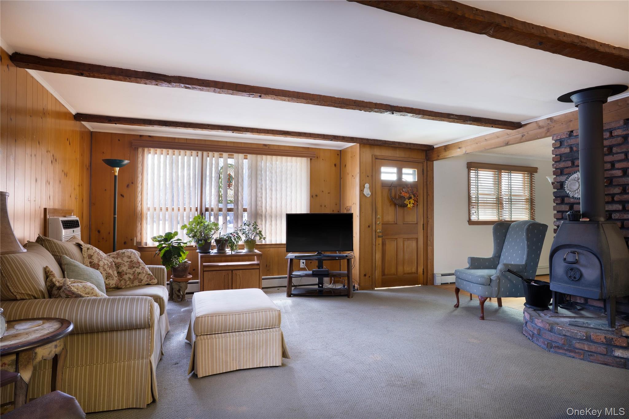 Set on a comfortable . 26-acre property in Holbrook, this 1961 ranch offers 3 bedrooms and 2 full baths with a warm, cozy feel throughout. Rich hardwood floors and carpeting complement intimate living spaces anchored by two wood-burning fireplaces, including one in the four-season room; an inviting retreat perfect for quiet evenings or relaxed gatherings. The eat-in kitchen opens to the main living area for easy flow. A full, partially finished walk-out basement offers excellent potential for extended living space, recreation, workspace, or possible accessory use with proper permits. Convenient to shopping, dining, and Holbrook Country Club, this home is full of character and ready for its next chapter.