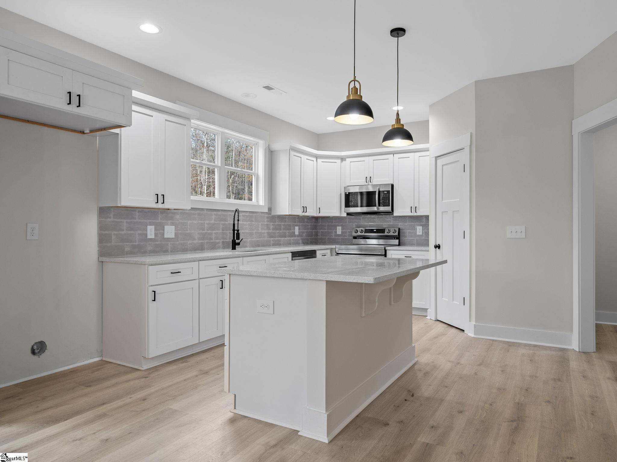 Welcome to country living at its finest! This brand new 4-bedroom, 2. 5-bathroom home sits proudly on an expansive . 60-acre lot, offering the perfect blend of rural tranquility and modern convenience. The 2, 321 square feet of thoughtfully designed living space features an open concept layout with luxury vinyl planks flowing throughout the first floor. The heart of the home showcases gorgeous quartz countertops, stainless steel appliances, and a stylish tiled backsplash. Cozy up by the electric fireplace or step outside to enjoy the spacious back deck and welcoming covered front porch. The modern farmhouse aesthetic shines through quality construction, including Hardie board siding and a finished two-car garage. Upstairs, you'll discover spacious bedrooms and a convenient walk-in laundry room complete with quartz countertops and utility sink. The home features tiled bathroom floors and showers, plus a flexible first-floor room perfect for your lifestyle needs. Located in award-winning Spartanburg District Six Schools area, you'll enjoy peaceful country atmosphere while remaining conveniently close to shopping, dining, and entertainment. The sodded front and back yards complete this exceptional property.