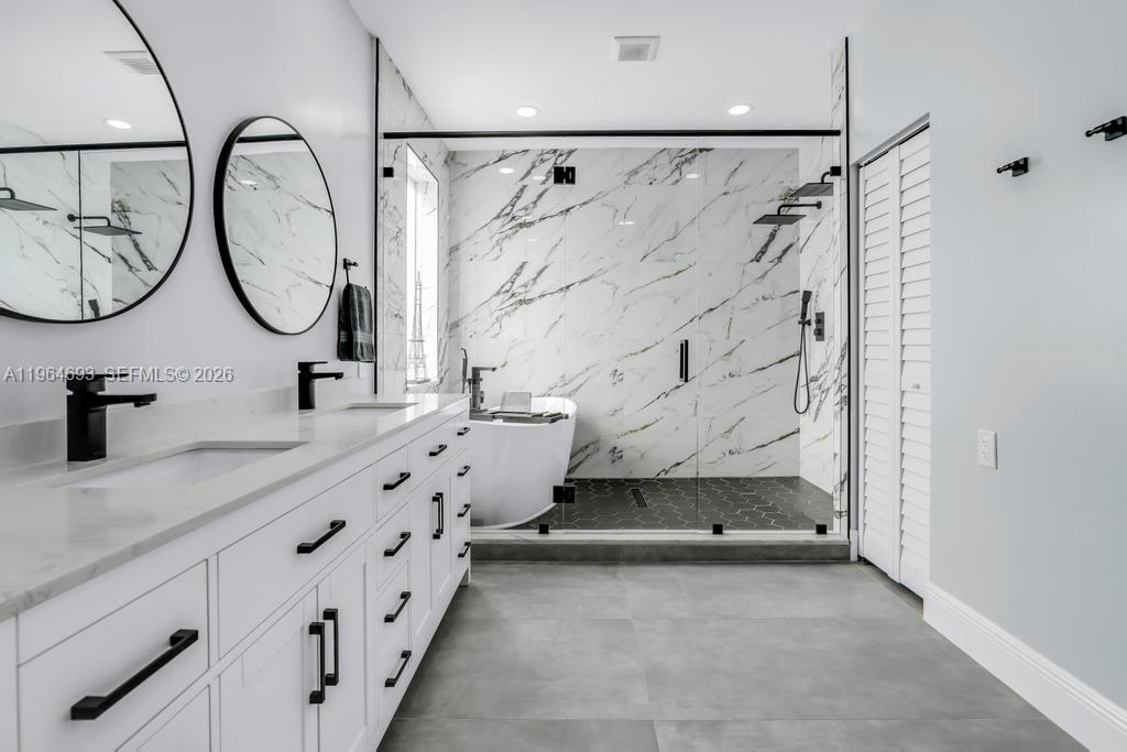 The renovated kitchen is a showstopper, complete with high-end appliances, pot filler, wine refrigerator, farmhouse sink, and elegant finishes. Gorgeous, updated bathrooms add to the home’s refined appeal. The spacious primary suite features dual sinks, a soaking tub, and an oversized walk-in shower. Second bathroom is a cabana bath leading to the pool. A half bath perfect for guest. Enjoy travertine tile flooring throughout the main living areas and wood flooring in the bedrooms. Custom closets through out. Step outside to your private oasis with a luxurious pool and screened lanai — perfect for entertaining year-round. A transferable home warranty will be provided to the buyer at closing.