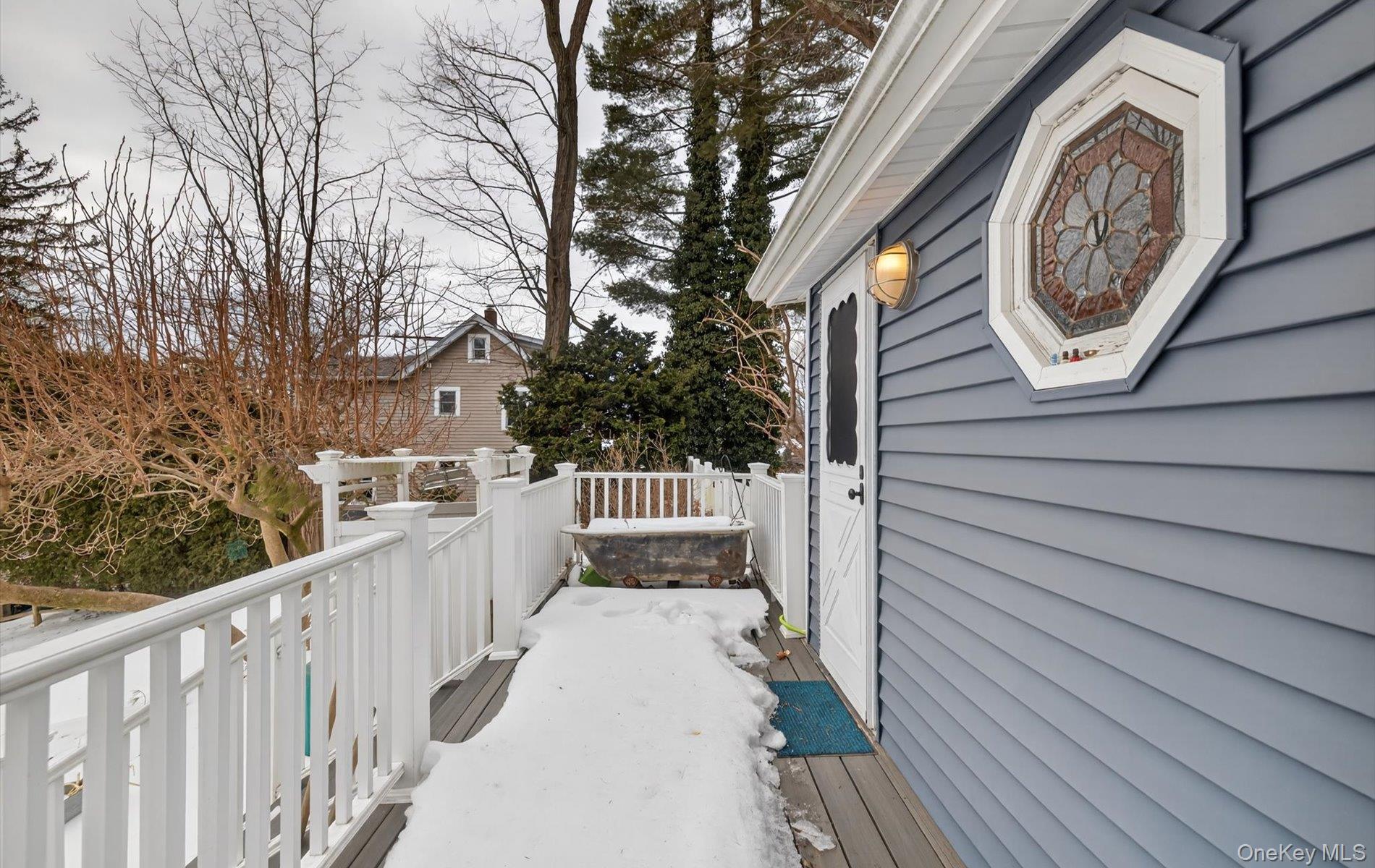 Charming 1863 Corner-Lot Home with Timeless Appeal. Tucked away on a quiet block, this 3 bedroom, 2 bath home is a welcoming, peaceful retreat. Step outside and you are surrounded by lush, thoughtfully maintained landscaping—vibrant flower beds, mature trees, and a welcoming curb appeal that instantly draws you in. The yard backs up to a sprawling, picturesque landscape, offering wide-open views and a serene sense of space that is hard to find. It’s the kind of setting that makes your morning coffee and evening sunsets feel extra special. Inside, natural light pours through the home, highlighting its warmth and charm. The wood burning fireplace creates a cozy atmosphere in the living room, while the conservatory wall in the dining room invites the outside in with gorgeous views of the multi-level deck and grounds. The layout is both comfortable and functional, with inviting spaces for everyday living and entertaining.