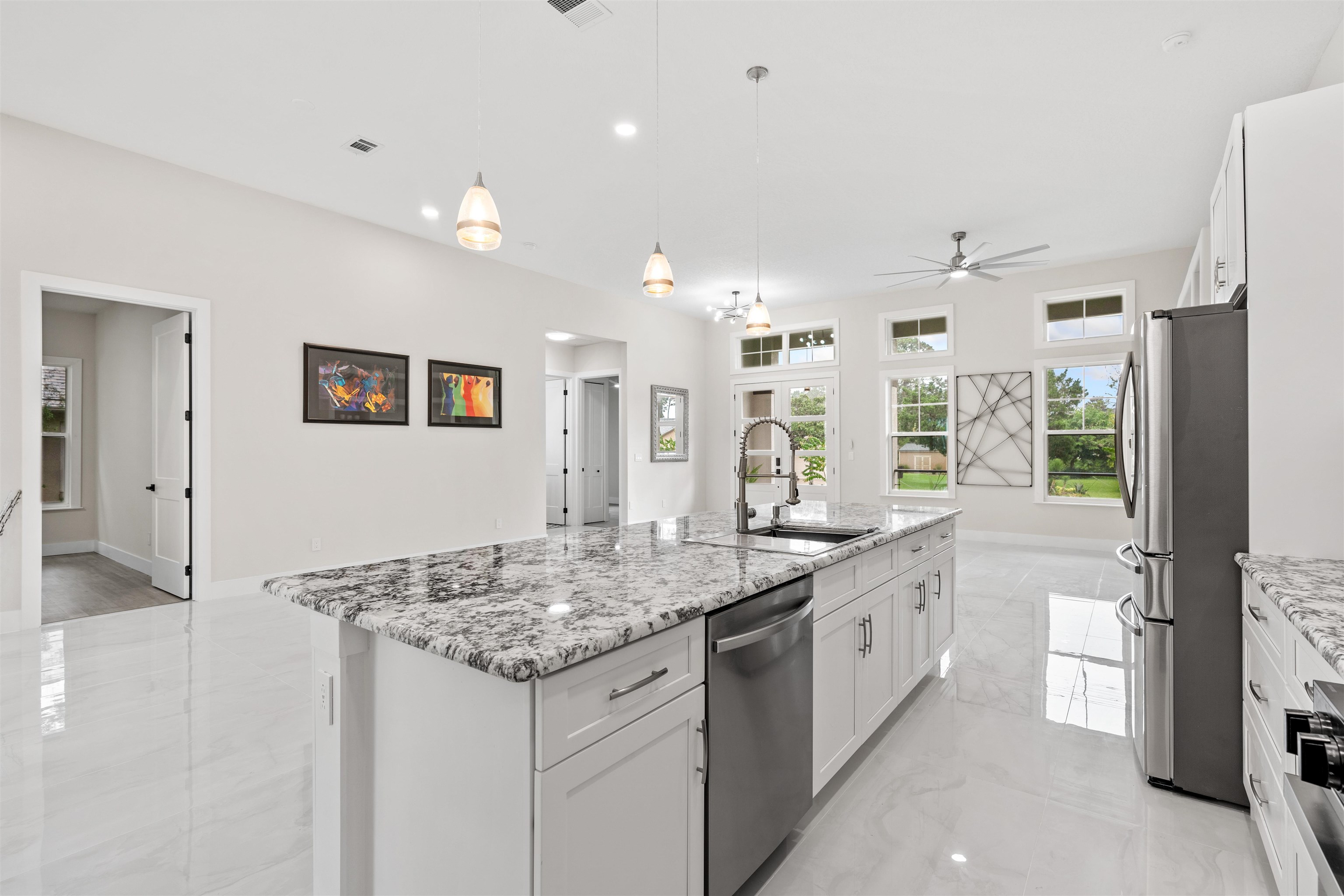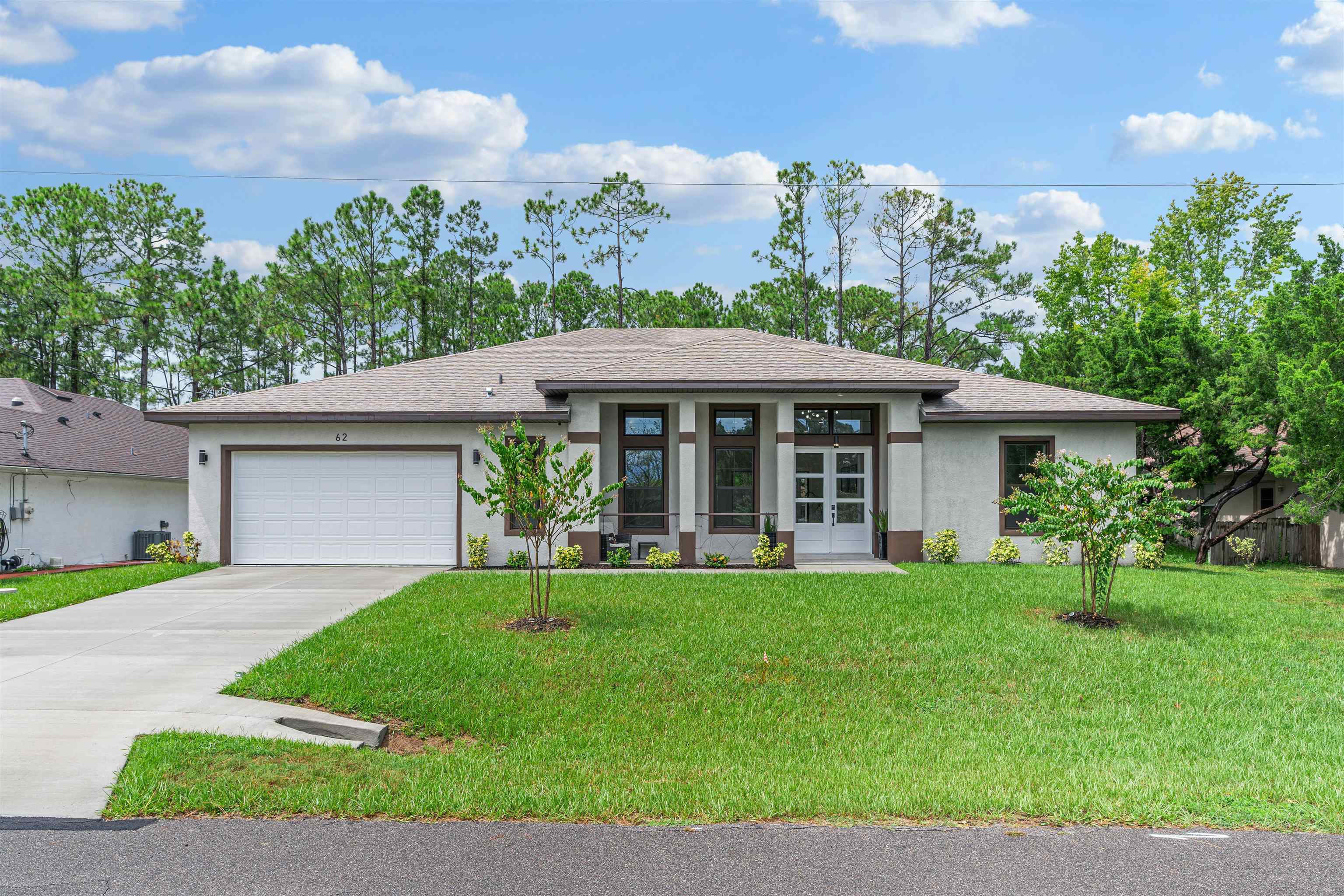 Welcome to 62 Whittington Drive — a brand-new luxury home offering the perfect balance of modern design, European-inspired sophistication, and Florida waterfront living. This stunning residence features an open-concept floor plan with 4 bedrooms and 3 full bathrooms, thoughtfully designed for both comfort and style. The elegant tile flooring throughout living, kitchen and bathrooms, LVP , paired with solid-surface countertops in the kitchen and baths, showcases quality craftsmanship at every turn. The gourmet kitchen is a chef's delight, with premium finishes, ample storage, and a large island seamlessly flowing into the spacious great room. The centerpiece of the living area is an electric fireplace, creating a warm and inviting atmosphere filled with natural light. Step outside to embrace the Florida lifestyle: Expansive covered lanai pre-wired for a hot tub Private dock on a freshwater canal, perfect for kayaking and outdoor enjoyment Summer kitchen for elevated outdoor entertaining The primary suite is a tranquil retreat with a spa-inspired bathroom, while an additional en suite bedroom provides extra flexibility for family or guests. Designed with the future in mind, this home features wide doorways, walkways, and easy-entry showers for enhanced accessibility. Conveniently located, this home places you at the heart of everything Palm Coast has to offer: Just 15 minutes to Flagler Beach 10 minutes to shopping, dining, and everyday conveniences Easy access to major roads, schools, and local parks Don't miss your chance to own this exceptional property that perfectly blends style, comfort, and accessibility in one of Palm Coast's most desirable locations. Schedule your private showing today!