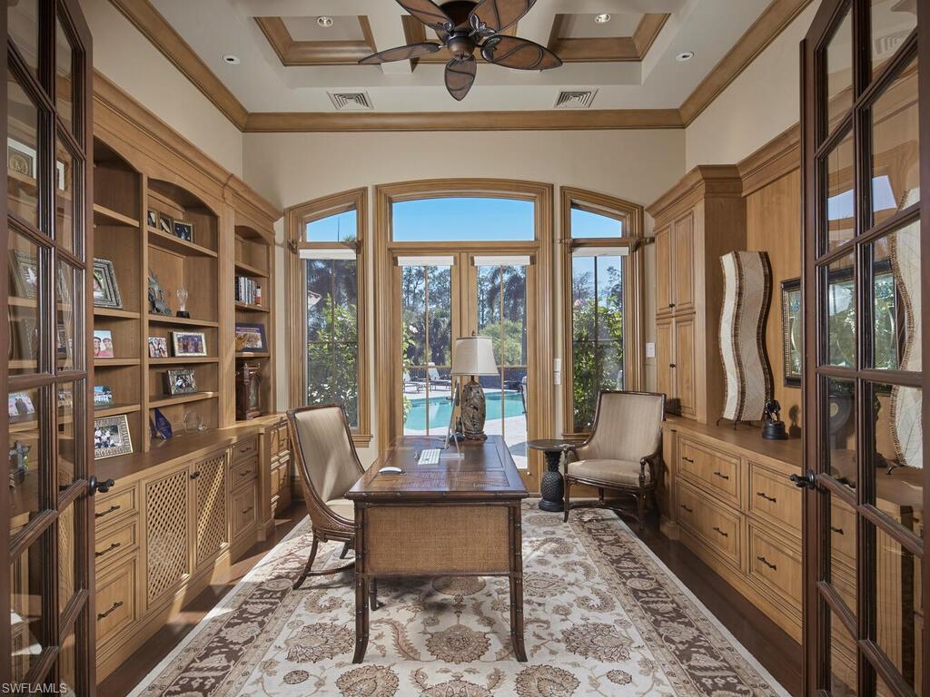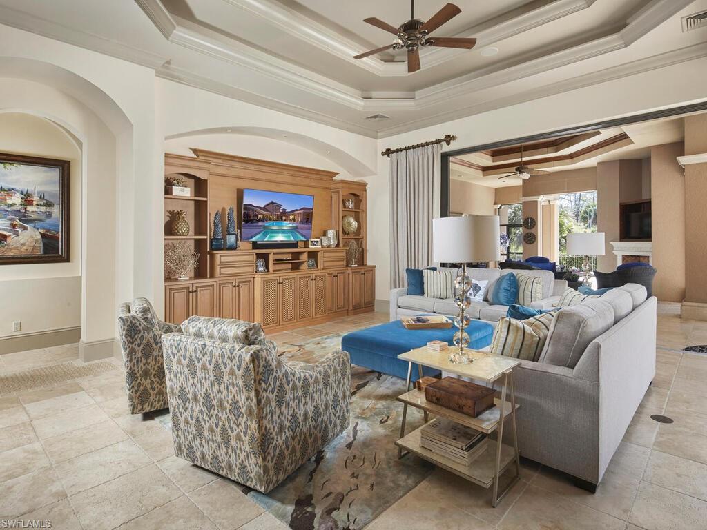 Golf membership slot available immediately! Custom McGarvey Estate with preserve views, renovated pool and spa, impact windows, whole-house generator and luxury amenities. This 4 Bedroom, 4. 5 Bath + Den home spans an impressive 4, 850 square feet of refined living space, designed for both grand entertaining and every day comfort. From the moment you enter, you are welcomed by soaring ceilings, expansive windows, and an open-concept floor plan filled with natural light. The formal Living and Dining areas flow seamlessly into a spacious Family Room, creating an ideal setting for gatherings. The Chef's Kitchen is a true showpiece featuring premium appliances, custom cabinetry and elegant finishes that blend beauty with functionality. Each of the 4 generously sized Bedrooms offers privacy and comfort. The additional Den provides a versatile space perfect for a Home Office, Library or Media Room. Step outside to a spectacular living oasis where the recently renovated (2023) pool and spa await you. All of this overlooks a serene preserve offering peaceful views and exceptional privacy providing an exceptional backdrop for enjoying morning coffee or evening sunsets. This elegant estate perfectly balances sophistication, comfort and the beauty of nature - offering living at its finest. Mediterra is one of SWFL's most desirable communities having it's own beautifully appointed private Beach Club, two Tom Fazio Championship Golf Courses, state-of-the-art Fitness Center, extremely active tennis and pickleball groups, bocce, eight miles of nature trails that meander through the community and much more.
