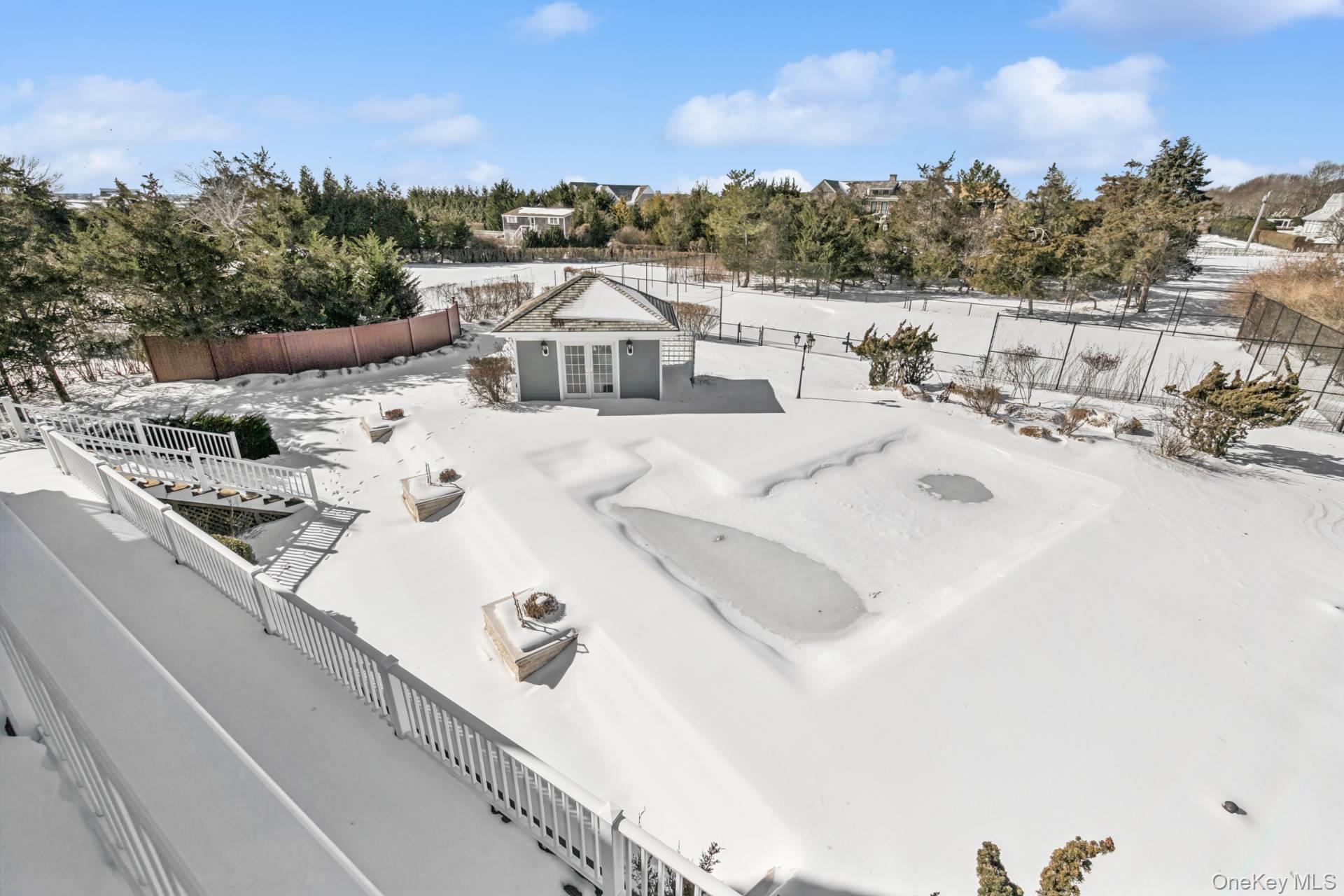 Located at 23 Meadow Lane in the heart of Westhampton Beach, this exceptional seasonal rental offers the ultimate Hamptons summer retreat with luxury amenities, privacy, and proximity to ocean beaches and the village center. A grand entry foyer opens into a bright, airy open-concept living room, dining area, and gourmet kitchen designed for effortless summer entertaining. The chef's kitchen features top-of-the-line appliances, premium finishes, and a breakfast bar with seating, while the professionally decorated living room showcases a wood-burning fireplace, game table, and three sets of French doors leading directly to the pool and Har-Tru tennis court for seamless indoor-outdoor living. A comfortable den with a Jack-and-Jill bath connects to a first-floor guest bedroom, ideal for visitors. Upstairs, the expansive primary suite offers a private balcony overlooking the heated gunite pool and tennis court, a gas fireplace, oversized walk-in closet with custom built-ins, and a luxurious spa-style bath with double sinks, bidet, dressing table, Jacuzzi tub, and oversized glass shower. Three additional bedrooms include a king en suite, a queen bedroom, and a twin bedroom sharing a full bath, providing generous accommodations for guests. The beautifully landscaped outdoor space features a large heated gunite pool, pool house with full bath, separate BBQ area, and Har-Tru tennis court, creating a true resort-style experience. Additional amenities include a two-car garage and bicycles for tenant use. Just minutes from Westhampton Beach Village, residents enjoy easy access to boutique shopping, fine dining, marina, a farmers market, local theater, and pristine ocean beaches, making this luxury Westhampton Beach summer rental an outstanding opportunity for an unforgettable Hamptons season.