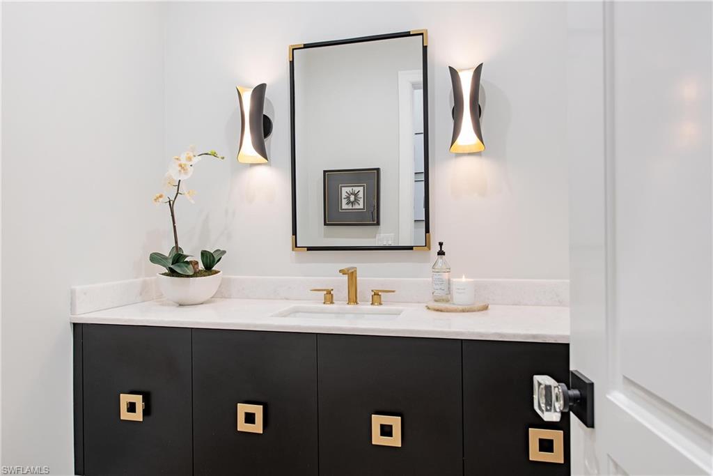 Experience refined coastal living in this exceptional Naples residence, residing within a newer, smaller, private, gated, community with only 28 residences where elegance meets effortless indoor-outdoor luxury. Thoughtfully designed with an open floor plan, coffered ceilings, wide-plank white oak flooring, and expansive walls of glass, the home is bathed in natural light and showcases a seamless flow ideal for both intimate living and grand entertaining. The open-concept great room is anchored by striking designer lighting and sophisticated finishes, creating a warm yet modern ambiance. The home has Control 4 home automation as well as surround sound in the main living area as well as outdoors. A chef-inspired kitchen features custom cabinetry, Bosch appliances, an oversized island with seating, and dining area directly off the kitchen. Disappearing glass sliders open to a private tropical retreat, blending the interior with a resort-style outdoor setting. The covered lanai offers generous lounge and dining areas, while the sparkling pool and spa are surrounded by lush, mature landscaping for ultimate privacy. Evening ambiance is elevated with soft architectural lighting and serene water reflections, creating an idyllic backdrop for sunset gatherings. Upstairs and beyond, the home continues to impress with refined architectural details, a statement staircase with glass railing, and beautifully appointed spaces that reflect meticulous craftsmanship throughout. Located in the heart of Naples, this residence embodies Florida luxury offering sophistication, comfort, and the coveted indoor-outdoor lifestyle that defines Southwest Florida living. The residence is located in close proximity to the beach and all the best Naples has to offer! Not to forget to nearby award winning private and public schools as well!