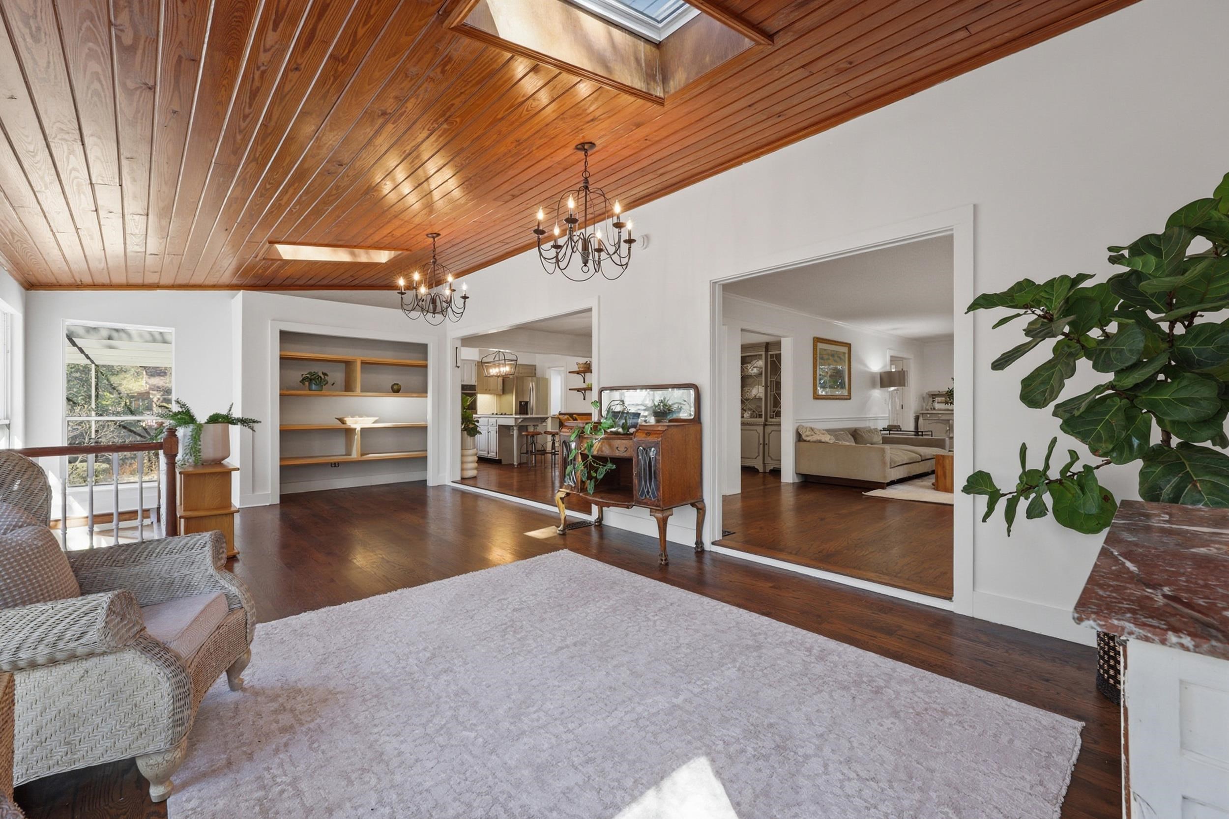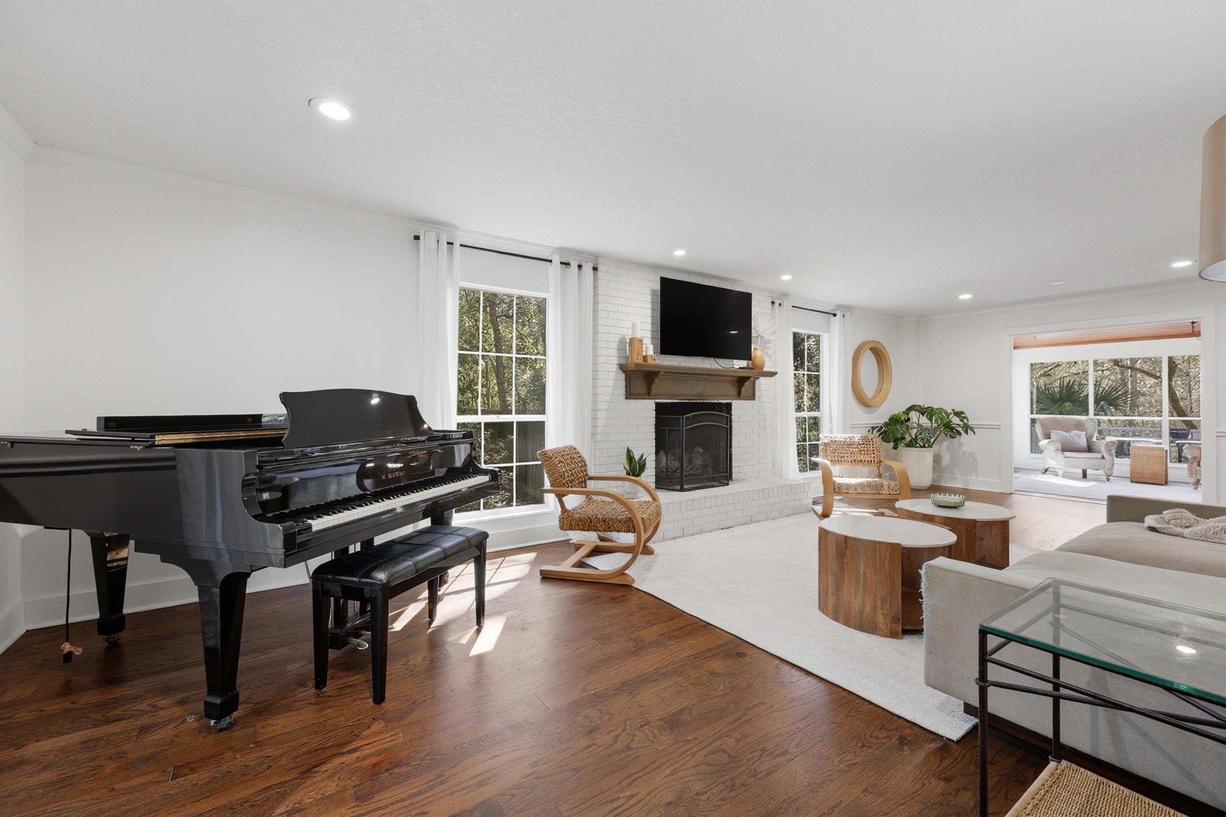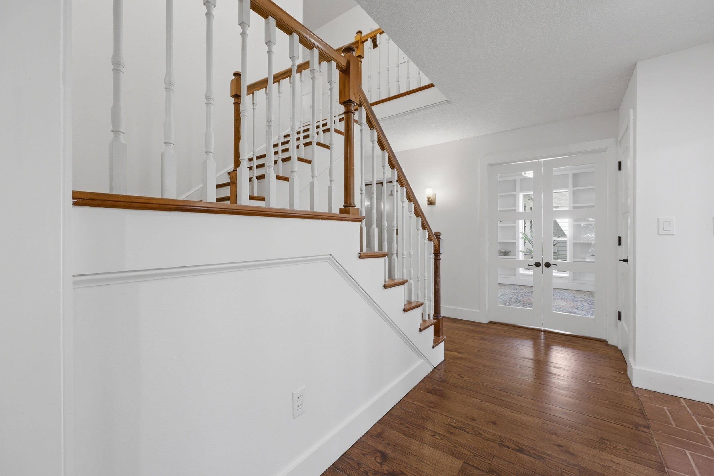 Situated on a full acre within the sought-after Prairie Creek community, 3577 Red Cloud Trl is a refined tri-level residence offering privacy, space, and timeless architectural appeal. This impressive 4-bedroom, 4-bath home encompasses 3, 462 square feet of living space, thoughtfully designed with multiple areas for comfortable family living and entertaining. From the moment you enter, the home makes a striking impression. Crisp white walls and rich wooden floors flow throughout, while the foyer opens to an elegant staircase that serves as an architectural centerpiece, setting the tone for the home’s elevated design. To the right, a spacious office features classic wood paneling and built-in shelving, creating a refined yet welcoming space for work or gatherings. The living room is anchored by a beautiful brick wood-burning fireplace, enhanced by recessed lighting and framed by views of the sunroom and the mature trees beyond. The kitchen opens directly into this main living space, allowing for an effortless flow ideal for entertaining. Designed with both style and function in mind, the expansive modern kitchen includes a double oven, a large island, and generous space for casual dining or a breakfast area filled with natural light. Just beyond, the sunroom provides a warm and inviting retreat, complete with wood-paneled ceilings and two skylights that illuminate the space. From here, step out onto the deck or head downstairs to the finished lower level. The air-conditioned basement offers substantial flex space perfect for a gym, media room, or game room, and opens directly to the screened, in-ground heated pool and spa, creating a truly private at-home retreat. Upstairs, the wooden flooring continues, complemented by a charming reading nook overlooking the grounds, an ideal place to pause and unwind. The owner’s suite is a true sanctuary, featuring two walk-in closets, an oversized glass-enclosed shower, a classic clawfoot tub, and distinctive antique cabinetry that adds character and elegance. Two additional bedrooms each include walk-in closets and share a generously sized guest bath with double sinks and wooden shelving. Walking from the kitchen toward the garage, you will find a centrally located laundry room, along with a separate suite positioned between the main living area and the garage that provides exceptional flexibility, functioning beautifully as a guest or mother-in-law suite. Complete with its own private entry, a bedroom, and a living space overlooking the patio, this area offers privacy while remaining connected to the heart of the home. The spacious finished garage further accommodates the needs of a busy family with a variety of interests. Outdoors, the rear fenced property extends to a peaceful creek that runs just beyond the fence line, enhancing the sense of natural beauty and seclusion. A pavered fire pit and pergola area create a charming setting to enjoy morning coffee while watching the deer. Altogether, 3577 Red Cloud Trl is a distinguished Prairie Creek estate that blends refined finishes, architectural character, and expansive amenities on a beautifully wooded acre. With generous living spaces, thoughtful updates, and an atmosphere of quiet sophistication, this home presents an exceptional lifestyle opportunity in one of the area’s most desirable established communities.