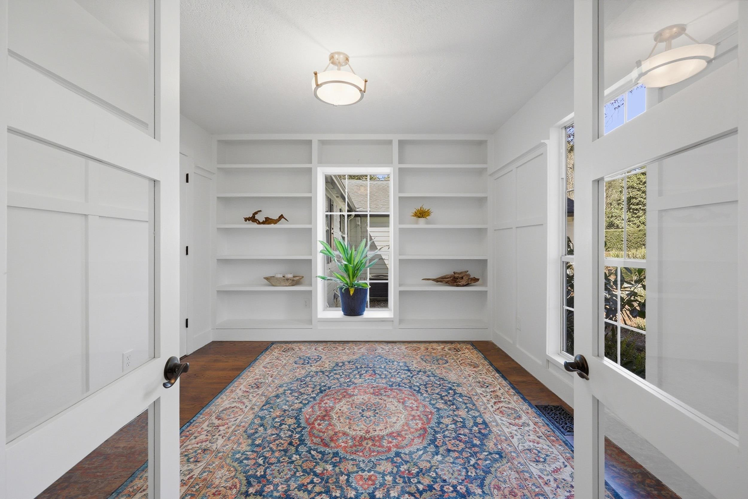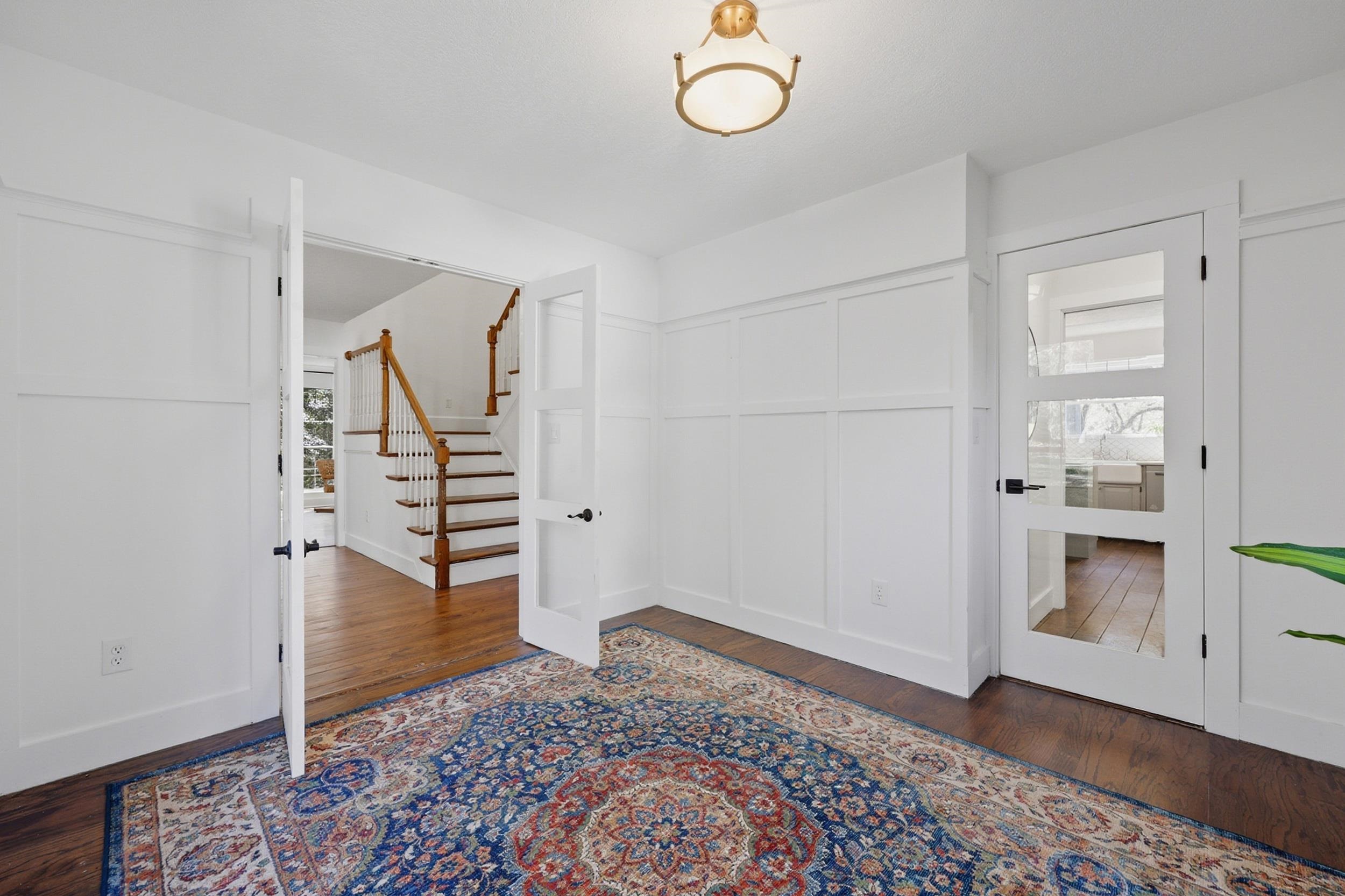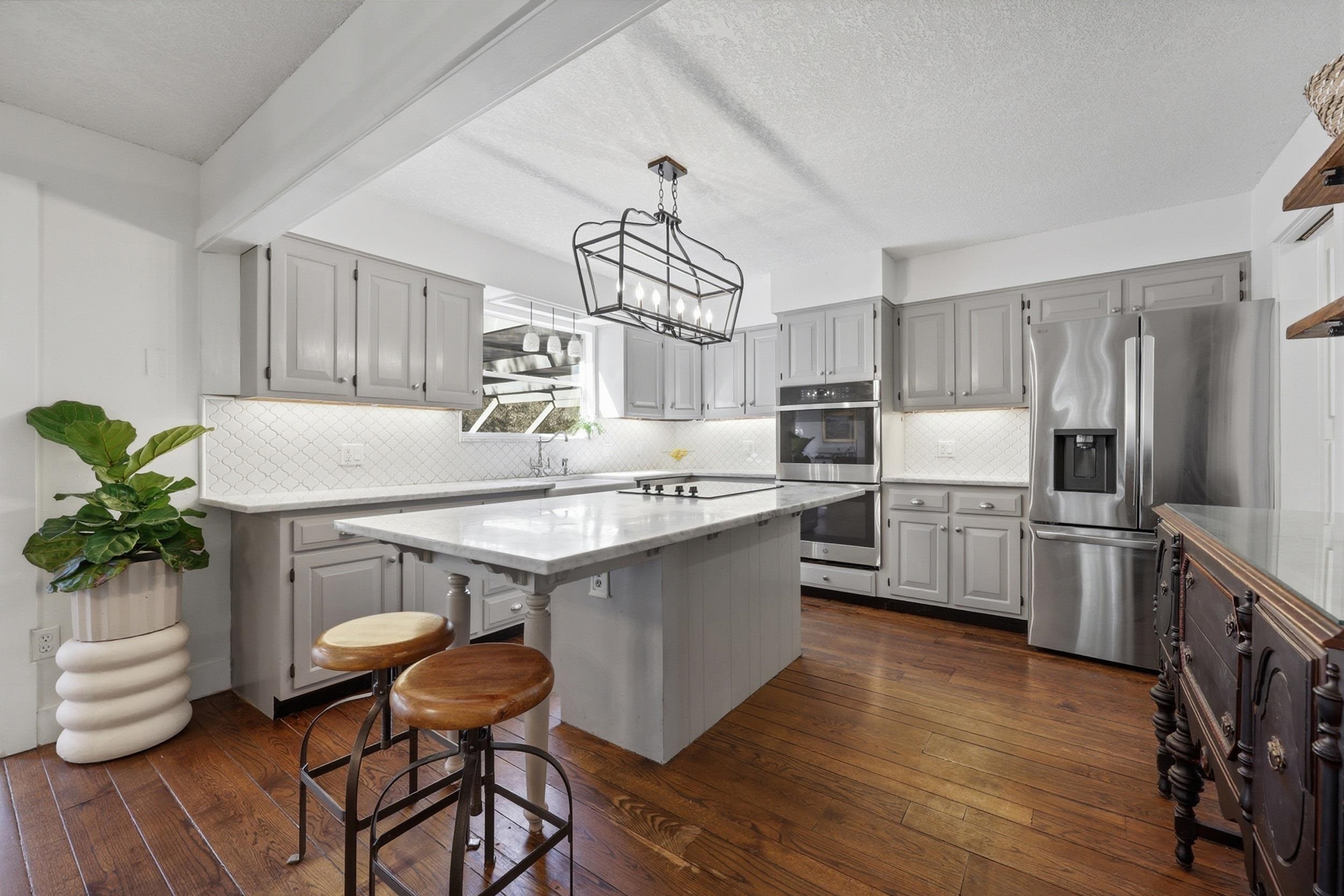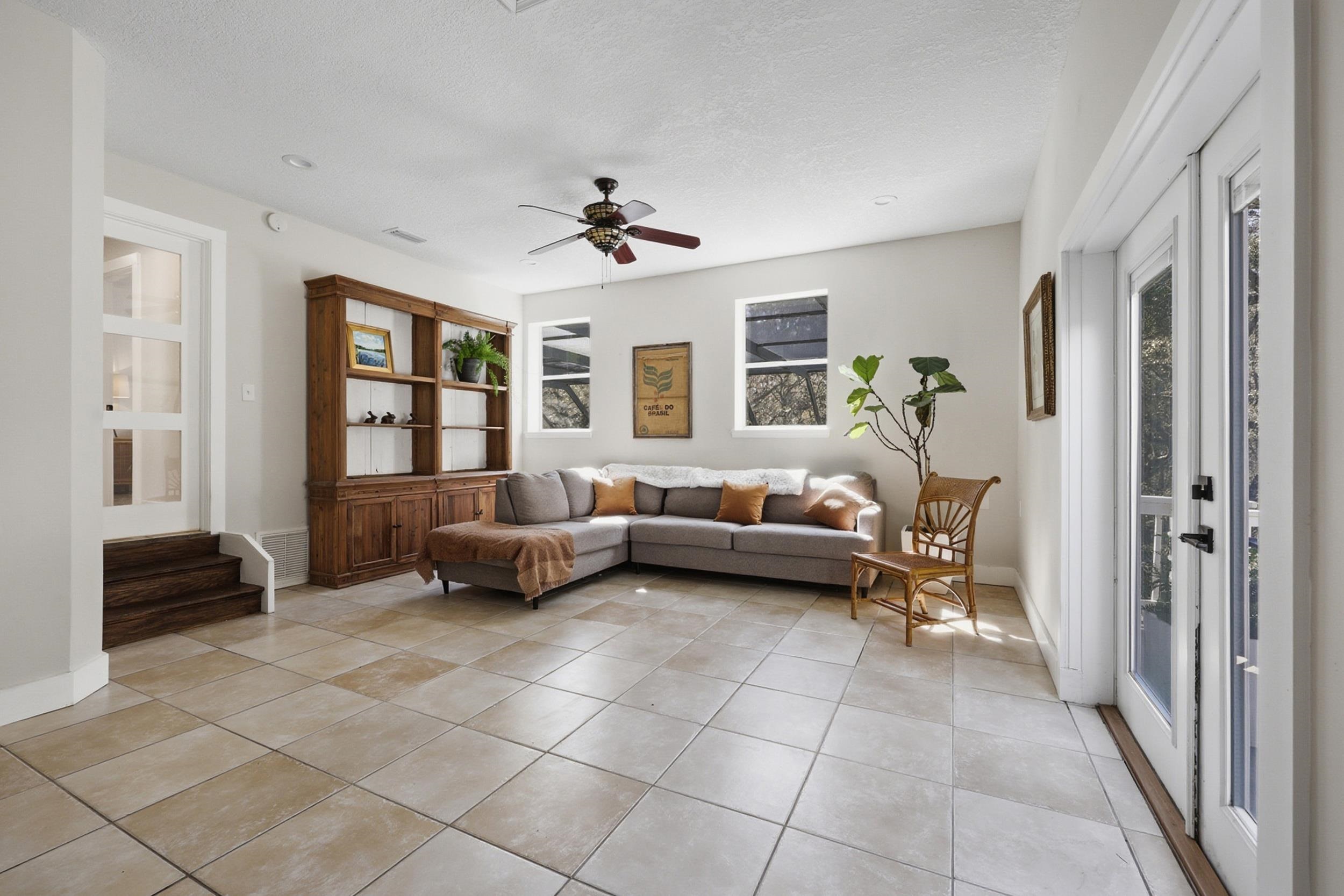 Situated on a full acre within the sought-after Prairie Creek community, 3577 Red Cloud Trl is a refined tri-level residence offering privacy, space, and timeless architectural appeal. This impressive 4-bedroom, 4-bath home encompasses 3, 462 square feet of living space, thoughtfully designed with multiple areas for comfortable family living and entertaining. From the moment you enter, the home makes a striking impression. Crisp white walls and rich wooden floors flow throughout, while the foyer opens to an elegant staircase that serves as an architectural centerpiece, setting the tone for the home’s elevated design. To the right, a spacious office features classic wood paneling and built-in shelving, creating a refined yet welcoming space for work or gatherings. The living room is anchored by a beautiful brick wood-burning fireplace, enhanced by recessed lighting and framed by views of the sunroom and the mature trees beyond. The kitchen opens directly into this main living space, allowing for an effortless flow ideal for entertaining. Designed with both style and function in mind, the expansive modern kitchen includes a double oven, a large island, and generous space for casual dining or a breakfast area filled with natural light. Just beyond, the sunroom provides a warm and inviting retreat, complete with wood-paneled ceilings and two skylights that illuminate the space. From here, step out onto the deck or head downstairs to the finished lower level. The air-conditioned basement offers substantial flex space perfect for a gym, media room, or game room, and opens directly to the screened, in-ground heated pool and spa, creating a truly private at-home retreat. Upstairs, the wooden flooring continues, complemented by a charming reading nook overlooking the grounds, an ideal place to pause and unwind. The owner’s suite is a true sanctuary, featuring two walk-in closets, an oversized glass-enclosed shower, a classic clawfoot tub, and distinctive antique cabinetry that adds character and elegance. Two additional bedrooms each include walk-in closets and share a generously sized guest bath with double sinks and wooden shelving. Walking from the kitchen toward the garage, you will find a centrally located laundry room, along with a separate suite positioned between the main living area and the garage that provides exceptional flexibility, functioning beautifully as a guest or mother-in-law suite. Complete with its own private entry, a bedroom, and a living space overlooking the patio, this area offers privacy while remaining connected to the heart of the home. The spacious finished garage further accommodates the needs of a busy family with a variety of interests. Outdoors, the rear fenced property extends to a peaceful creek that runs just beyond the fence line, enhancing the sense of natural beauty and seclusion. A pavered fire pit and pergola area create a charming setting to enjoy morning coffee while watching the deer. Altogether, 3577 Red Cloud Trl is a distinguished Prairie Creek estate that blends refined finishes, architectural character, and expansive amenities on a beautifully wooded acre. With generous living spaces, thoughtful updates, and an atmosphere of quiet sophistication, this home presents an exceptional lifestyle opportunity in one of the area’s most desirable established communities.