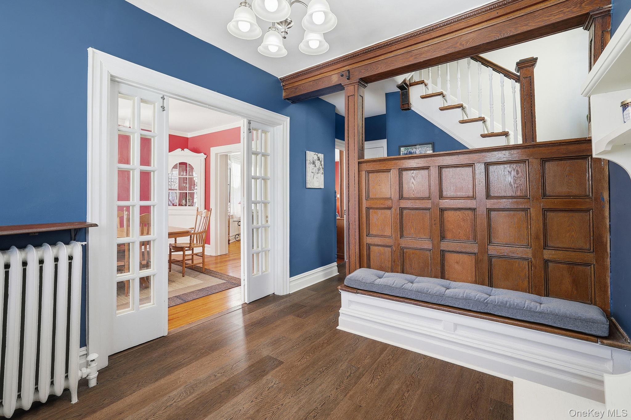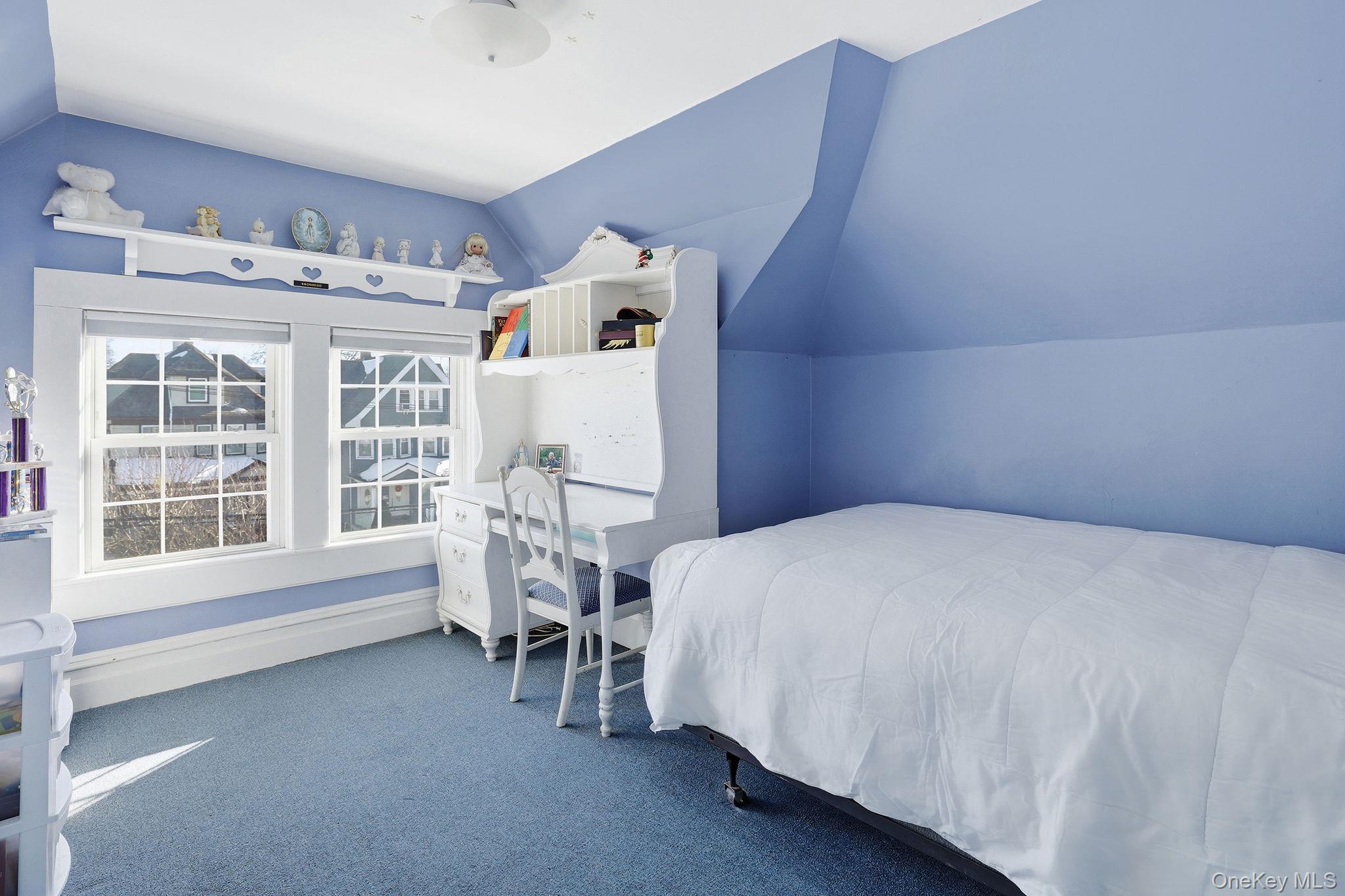 Classic Victorian charm awaits its new owner in this impeccably maintained New Rochelle gem. A welcoming wrap-around front porch sets the tone for this light-filled three-story home, where abundant windows bathe every room in natural sunlight. Enter through a spacious, welcoming foyer that leads to a living room with fireplace, formal dining room, and a nice-sized eat-in kitchen, perfect for everyday living and entertaining. The second floor enjoys a large landing featuring four versatile bedrooms, currently configured with one as a home office and another as a den, plus an updated hall bath. Ascend to the third floor to discover a private bedroom retreat with an extraordinarily large full bath and finished space—ideal for a home office, studio, or guest suite. The lower level offers an additional finished 315 sq. ft. , new wainscoting, and a large laundry room with sizable storage space. An expansive back cedar deck overlooks a flat, usable yard and is accessible via kitchen sliders or living room French doors. This home is perfect for seamless indoor & outdoor gatherings. Located close to the vibrant restaurants and shops of downtown New Rochelle and less than a mile to the train for a quick commute to NYC. With low taxes and timeless Victorian character, this New Rochelle beauty is a must-see!