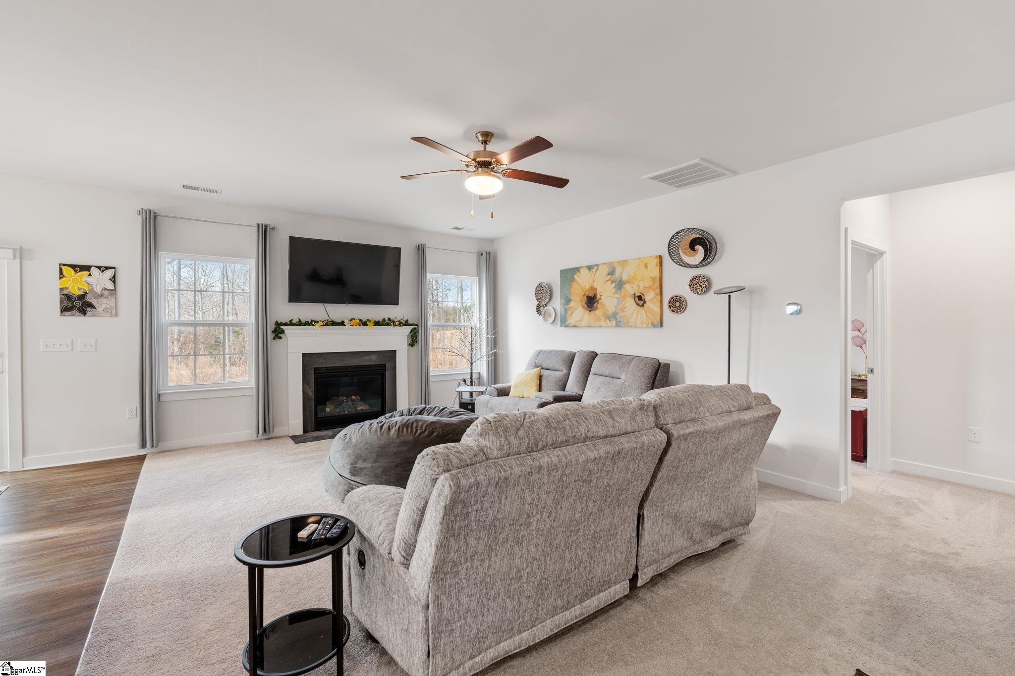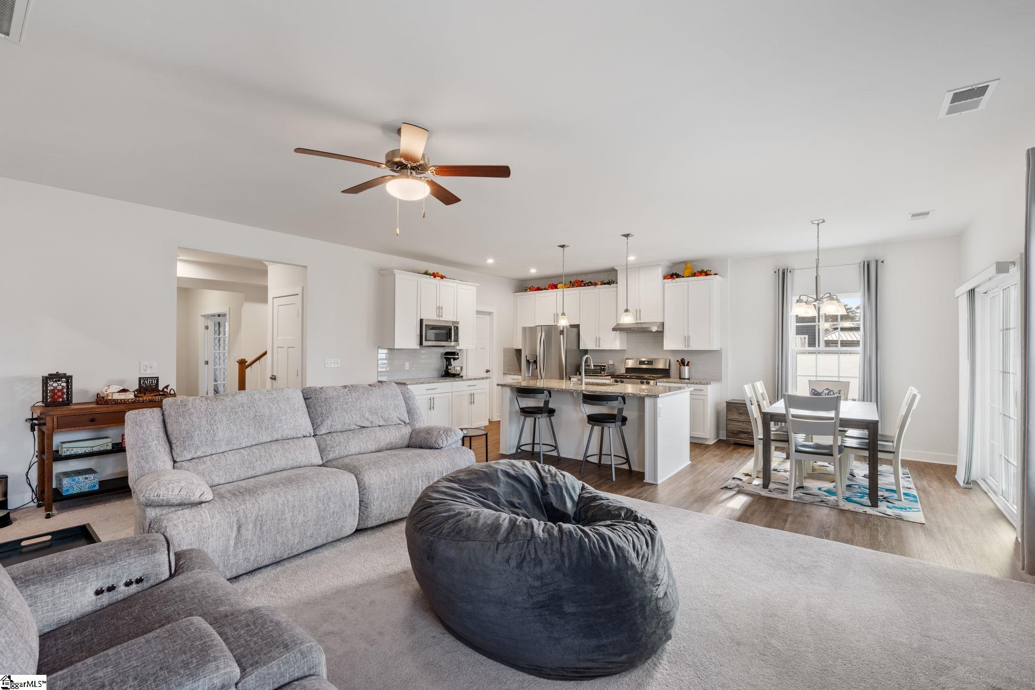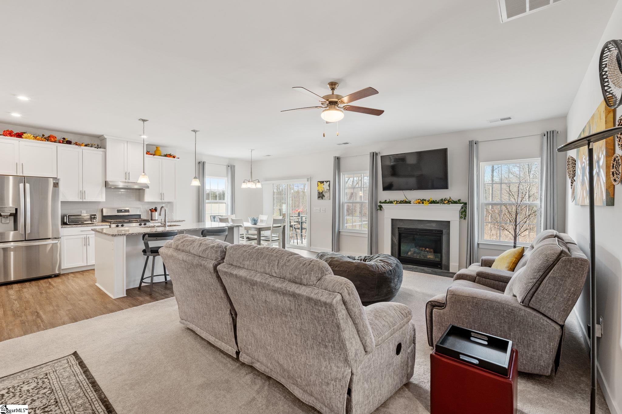 This beautifully maintained, like-new home offers over 2, 300 square feet of modern comfort and flexible living space. The main level features an open-concept design with a spacious kitchen overlooking the living room with fireplace, plus a private primary suite for ultimate convenience. A dedicated office or flex room on the main floor provides the perfect work-from-home setup, or could easily be converted into a 4th Bedroom. Upstairs, you’ll find a loft and generously sized secondary bedrooms. Outdoor living is just as inviting with a welcoming front porch and a screened-in back patio ideal for relaxing evenings. Located in sought-after Spartanburg District 6 and less than 10 minutes from shopping and dining — this home blends comfort, convenience, and style.