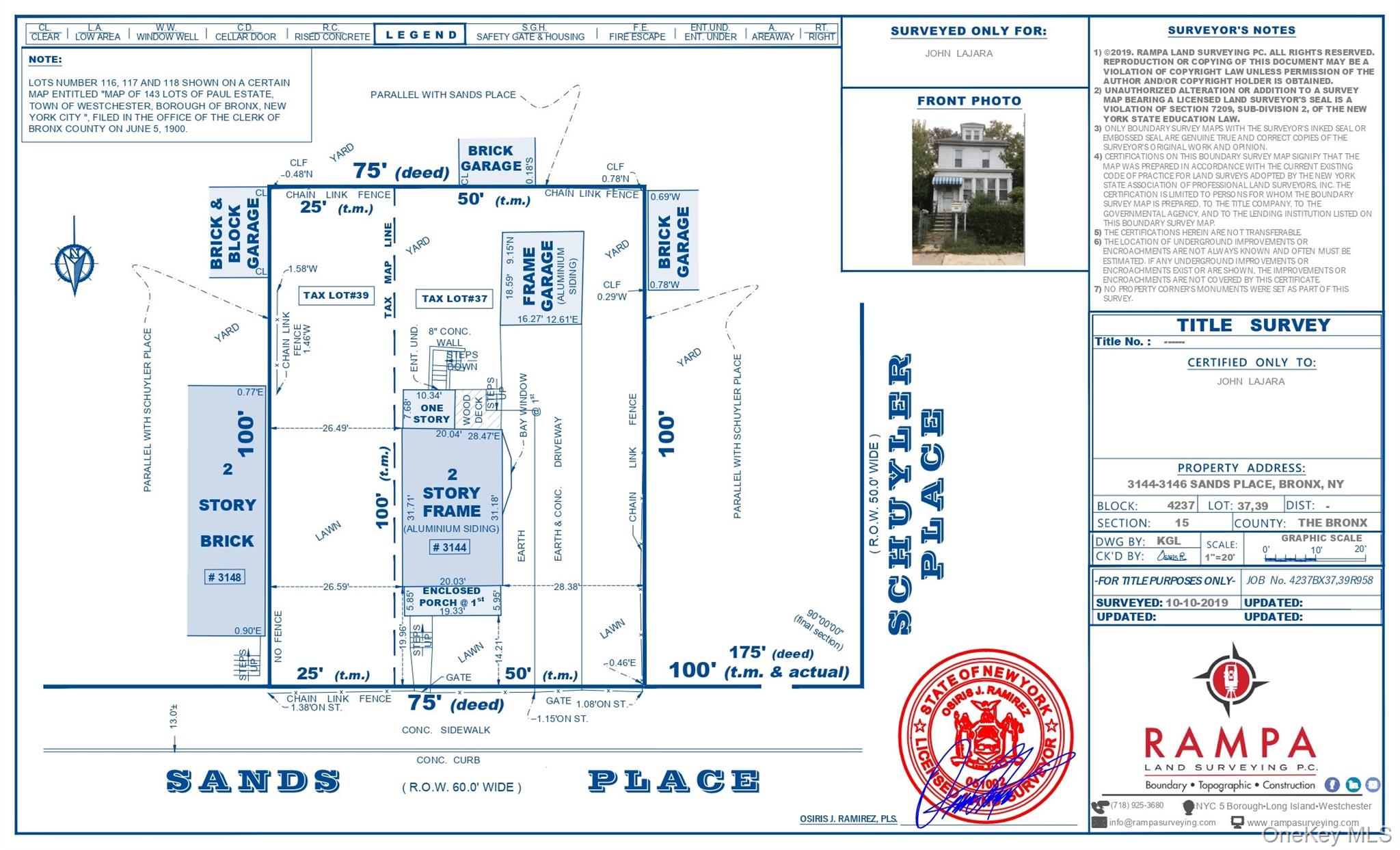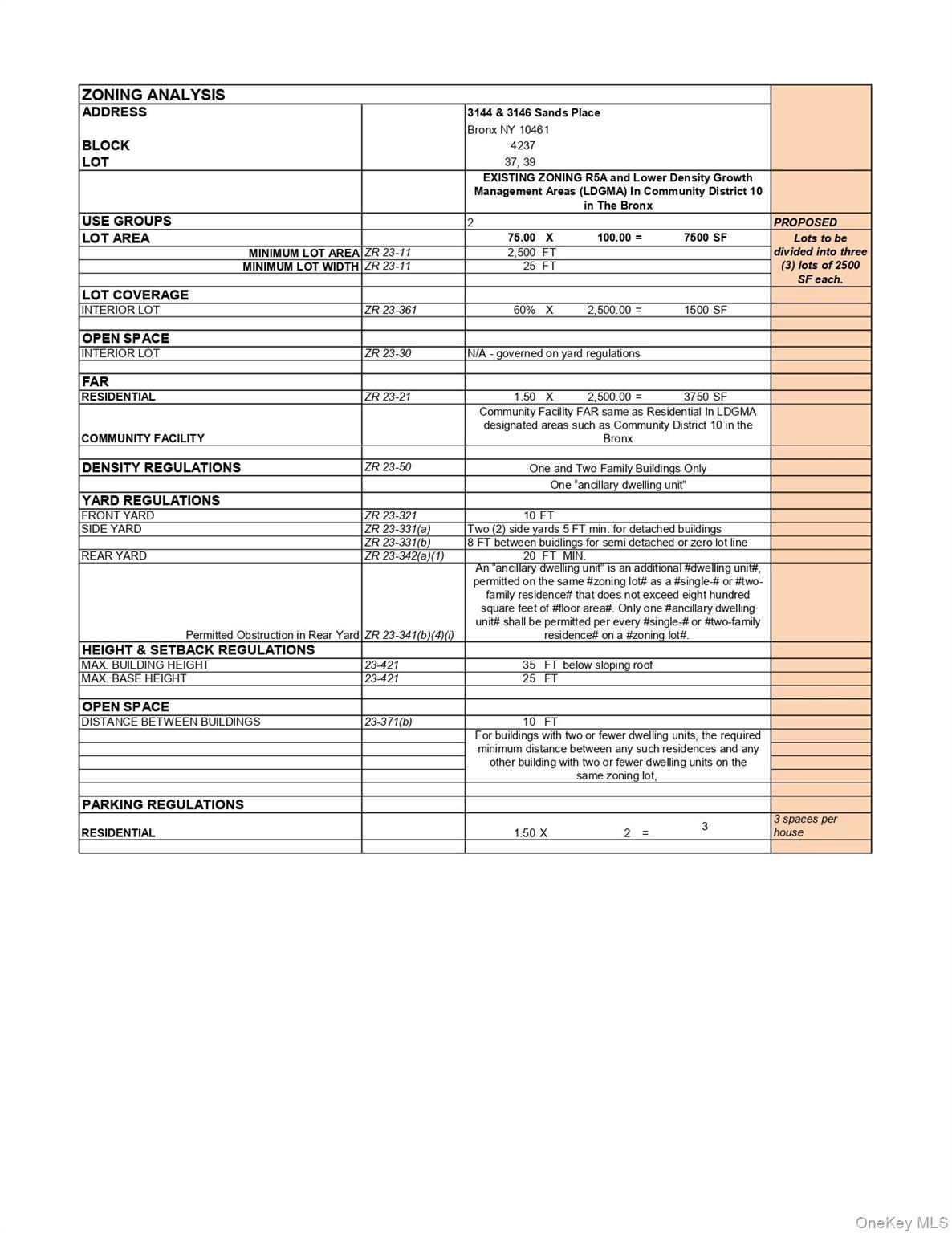 Here’s a rare development deal in a prime Pelham Bay location. 3144 Sands Place (50x100 lot) is being sold together with the adjacent 3146 Sands Place (25x100 vacant lot) as a package deal for $999, 999, offering a combined 75x100 (7, 500 SF) lot with multiple development potential. After architectural zoning analysis, there are options for builders looking to maximize the site. Option 1 includes separating the property into three 25x100 lots and constructing three 15-foot-wide homes at approximately 1, 500 SF each, designed with duplex layouts and rear ADUs, allowing for a potential total of 6 to 9 units depending on final configuration. Option 2 includes renovating the existing house on the 50x100 lot, converting the garage into an approximately 800 SF 2-bedroom ADU with kitchen and bath, and building an additional 1, 500 SF home with a rear ADU, creating a potential total of 6 units (2 two-family homes and 2 one-family ADUs). Fencing and demolition approvals are already in place, and schematic drawings for Option 1 are included in the photos to showcase the proposed design concept. Just a short walk to the 6 train on Westchester Avenue, close to local shops, restaurants, schools, and minutes to I-95, Hutchinson River Parkway, and Pelham Bay Park; making this a highly convenient location that will continue to attract strong tenant demand.