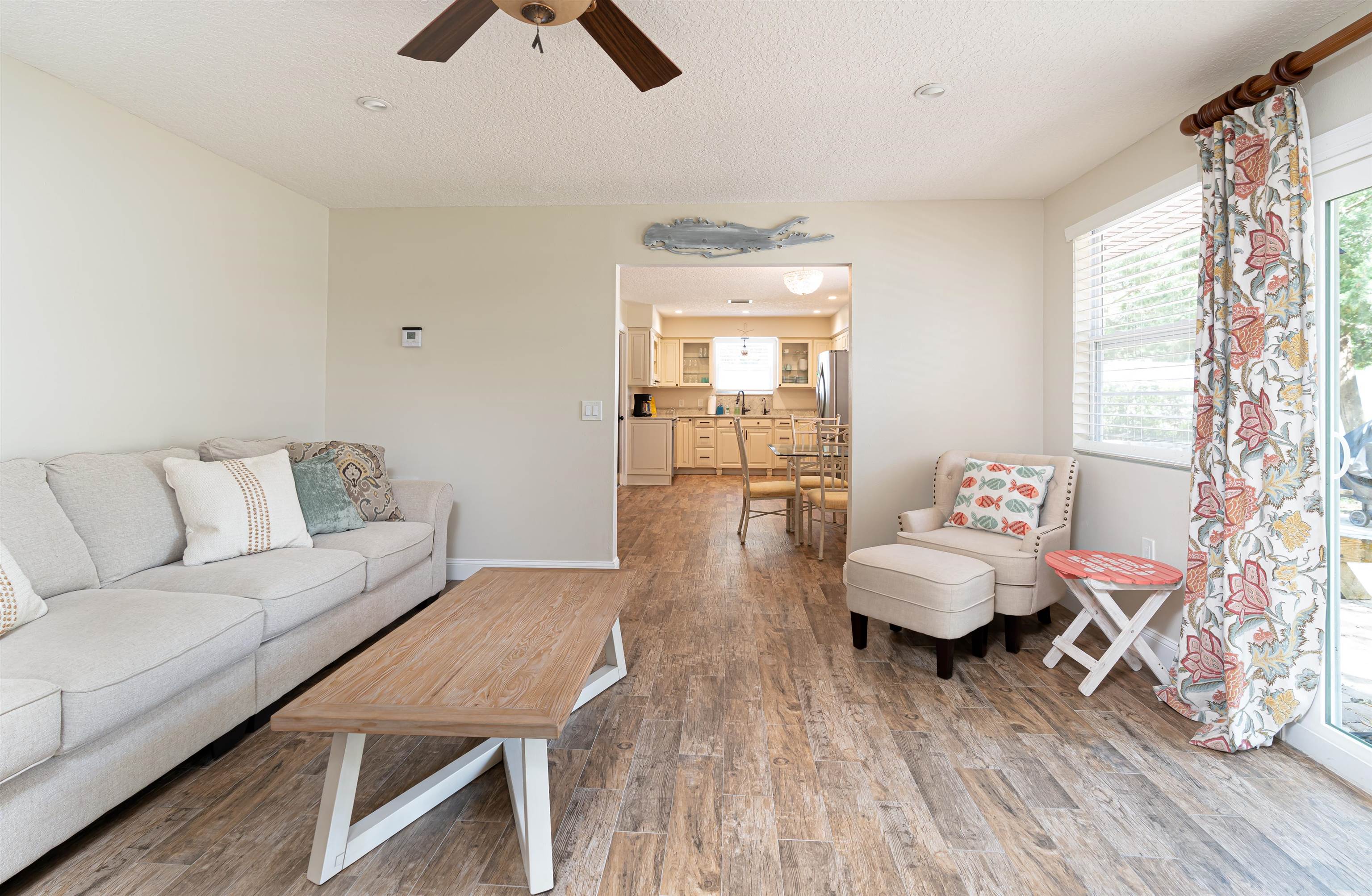 Charming 3 bedroom, 2 bathroom single story retreat on an oversized lot in Vilano Beach offering a prime location near the beach and intracoastal! Discover effortless coastal living in this beautifully updated home, perfectly positioned on a spacious, oversized lot framed by majestic large oaks that provide shade and timeless curb appeal. This move in ready gem offers modern updates throughout, open living spaces, and a comfortable layout ideal for relaxing or entertaining. Step outside on the expansive brick paver patio to enjoy your fully fenced yard- with plenty of room for outdoor activities, gardening or simply soaking up the Florida sunshine. Large paver driveway with room to park your boat! Location is everything here: Enjoy a quick walk to the beach for morning strolls or sunrise views, or to the Intracoastal Waterway for that quintessential sunset waterfront vibe. Restaurants, and local conveniences are just a short stroll or drive away, making every day errands a breeze. Only a quick 10 minute drive to the heart of historic downtown St Augustine- America's oldest city- where you can explore charming cobblestone streets, world-class dining, boutique shops, and iconic landmarks. This home is an easy 5 minute walk away from public beach access at the end of the street, where you can walk for miles on the beach and marvel at the dolphins riding waves, pelicans flying overhead, or the thrill of a shark tooth hunt on the white sands of the Atlantic Ocean. This stretch of beach is an area of Vilano Beach that is less crowded, due to limited public parking in the area, where you will find mostly neighbors who live nearby walking down the street for beach access or driving their golf carts and waving hello. This rare combination of updated single-level living, generous lot size, mature oaks, and unbeatable walk to beach access with easy proximity to both ocean and historic charm is the opportunity you've been waiting for to begin living the good life today! Ideal for year- round living, vacation home, or savvy investment in one of Florida's most desirable coastal communities. Contact us today to schedule your private showing- your slice of St Augustine paradise awaits!