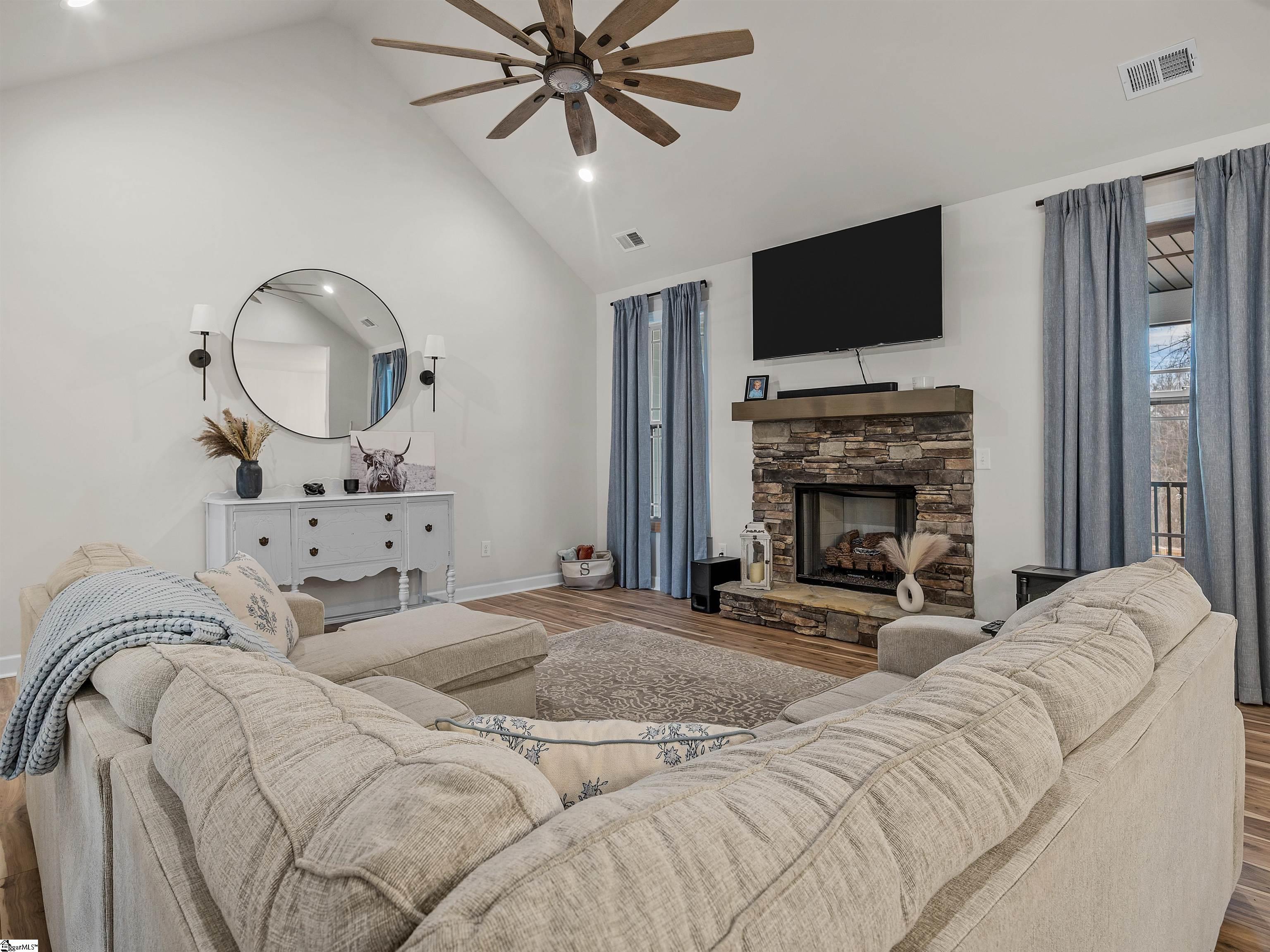 Welcome to this spacious 4-bedroom, 2. 5-bath traditional home located on nearly an acre of land. The open floor plan offers plenty of natural light and is perfect for everyday living and entertaining. The main living area features a cozy gas log fireplace and opens to the kitchen with quartz countertops, a beautiful backsplash, and ample workspace. A separate office provides a quiet area for working from home. The primary suite includes a walk-in closet and a garden tub, creating a comfortable retreat. Additional bedrooms are well-sized, and the bonus room offers flexible space for a playroom, media room, or hobby area. Enjoy outdoor living on the screened-in back porch with mountain views, or relax on the front porch with space for rocking chairs. The backyard also features a plunge pool, perfect for warm days. The basement adds extra living space, ideal for a gym, game room, or multi-generational use. With scenic views, a large lot, and versatile spaces, this home offers something for everyone.