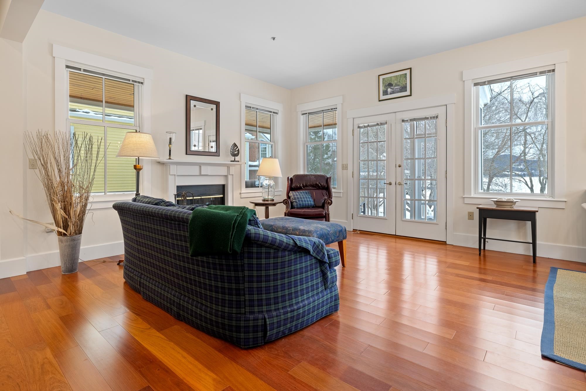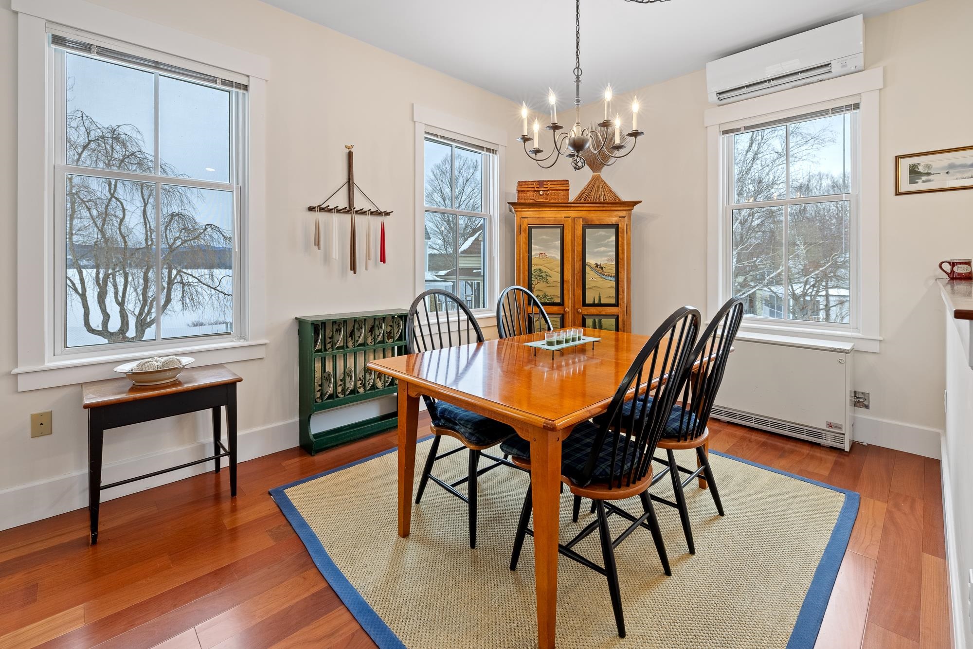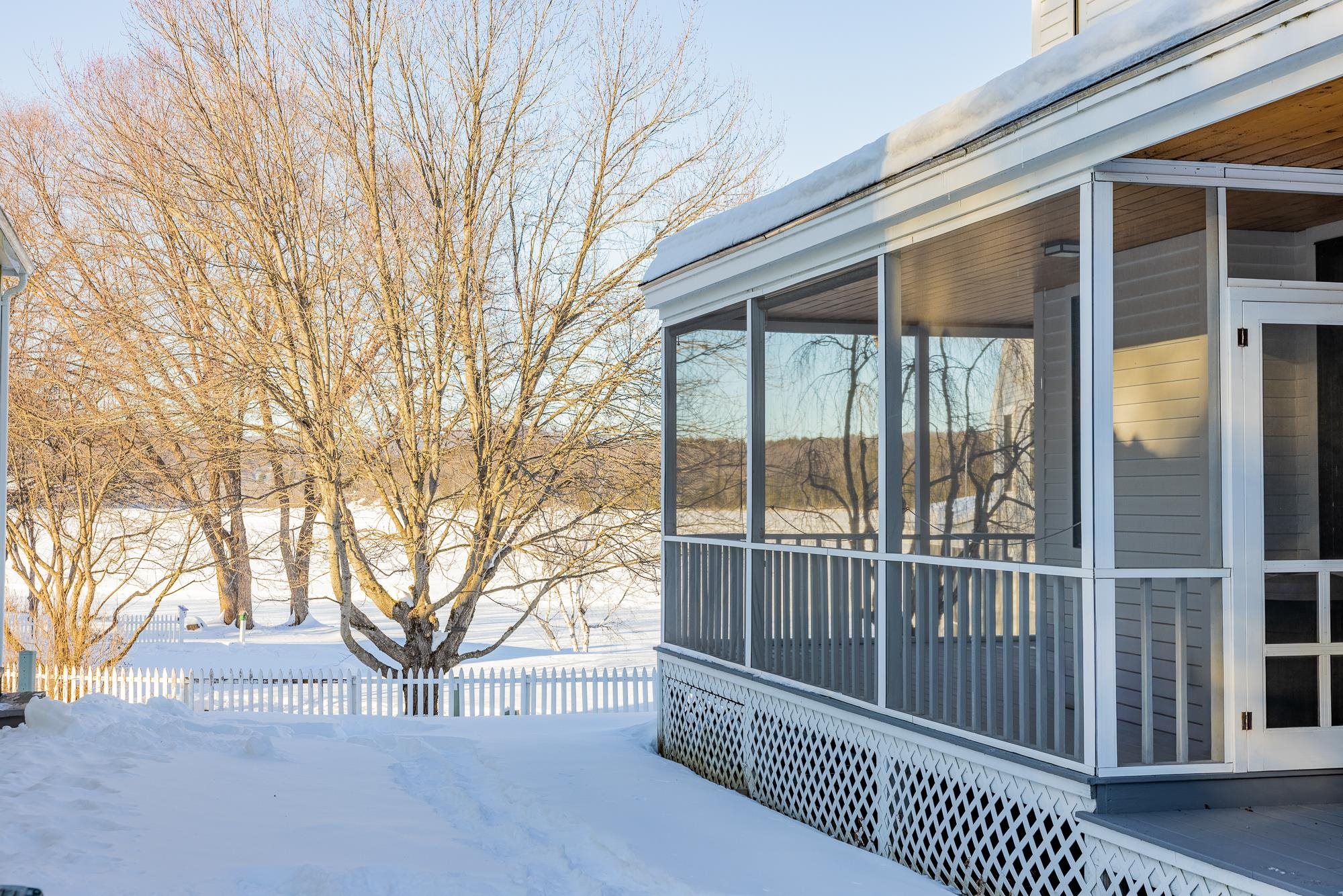 Lake and Mountains! Enjoy the best of both in this delightful contemporary Cape nestled in the Historic Shaker Village community on the edge of Mascoma Lake. This well-designed, tastefully appointed cottage delights the senses with beautiful water and mountain views, cool lake breezes, vibrant summer gardens, and the enchanting call of the loons — with easy access to local skiing, hiking, and skating for year-round enjoyment. The bright, open-concept main level flows seamlessly from the updated kitchen featuring granite countertops and Hubbardton Forge lighting into the inviting dining and living areas. French doors open to a serene wrap-around screened porch, perfect for morning coffee or evening relaxation. Step off the porch and connect to walking paths leading to one of two shared beaches and community docks. The first floor also includes a flexible third bedroom, home office or TV room, and a convenient full bath, and a tiled mudroom entry ideal for four-season living. Upstairs, you’ll find a spacious primary bedroom suite with a sitting room, along with a second comfortable bedroom. The fully finished lower level offers a generous recreation room, an additional bath, and abundant storage. Whether you’re looking for a full-time residence or a weekend escape, this special property places lake and mountain activities right outside your door — all just a short drive to Dartmouth Health Medical Center and Dartmouth College.