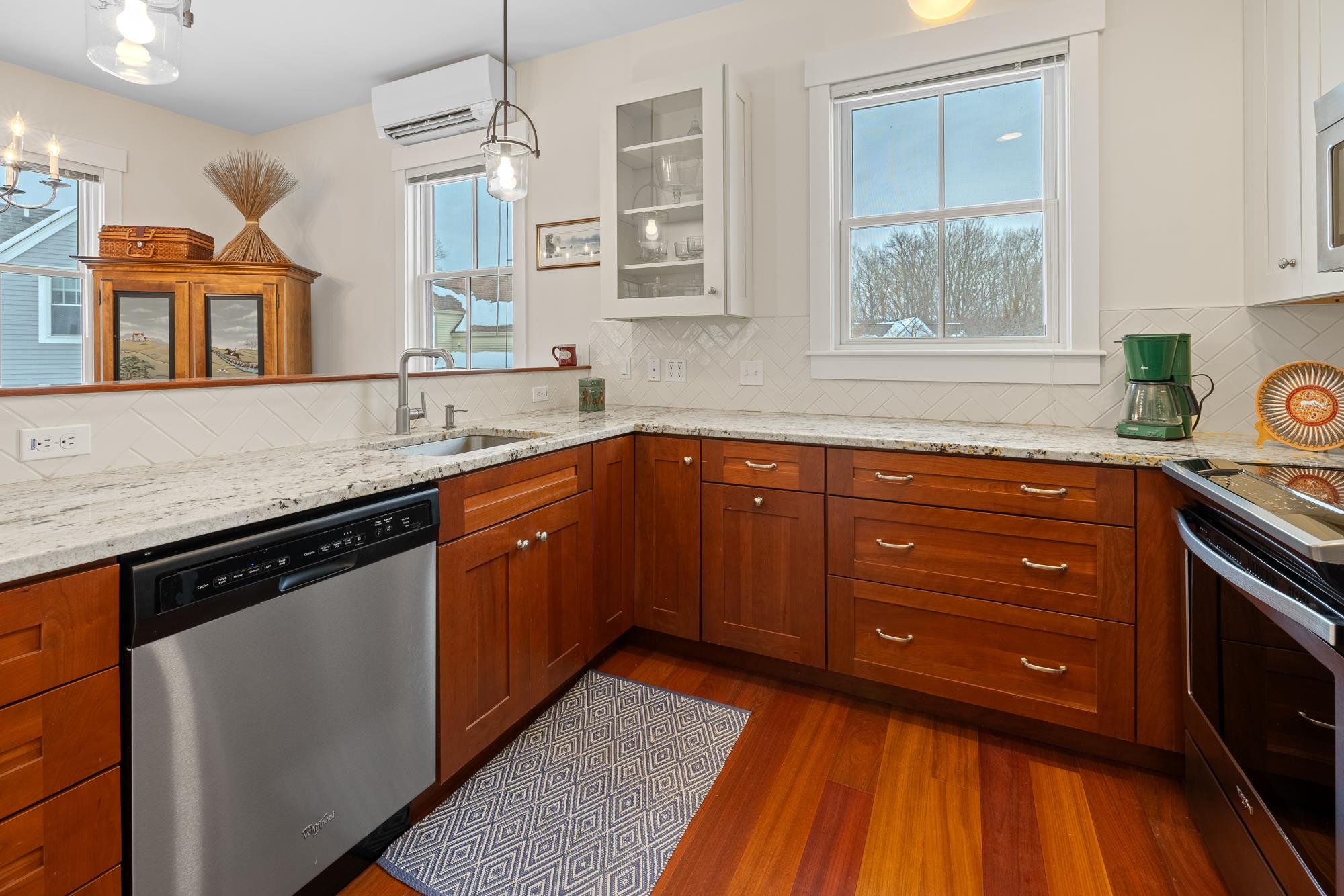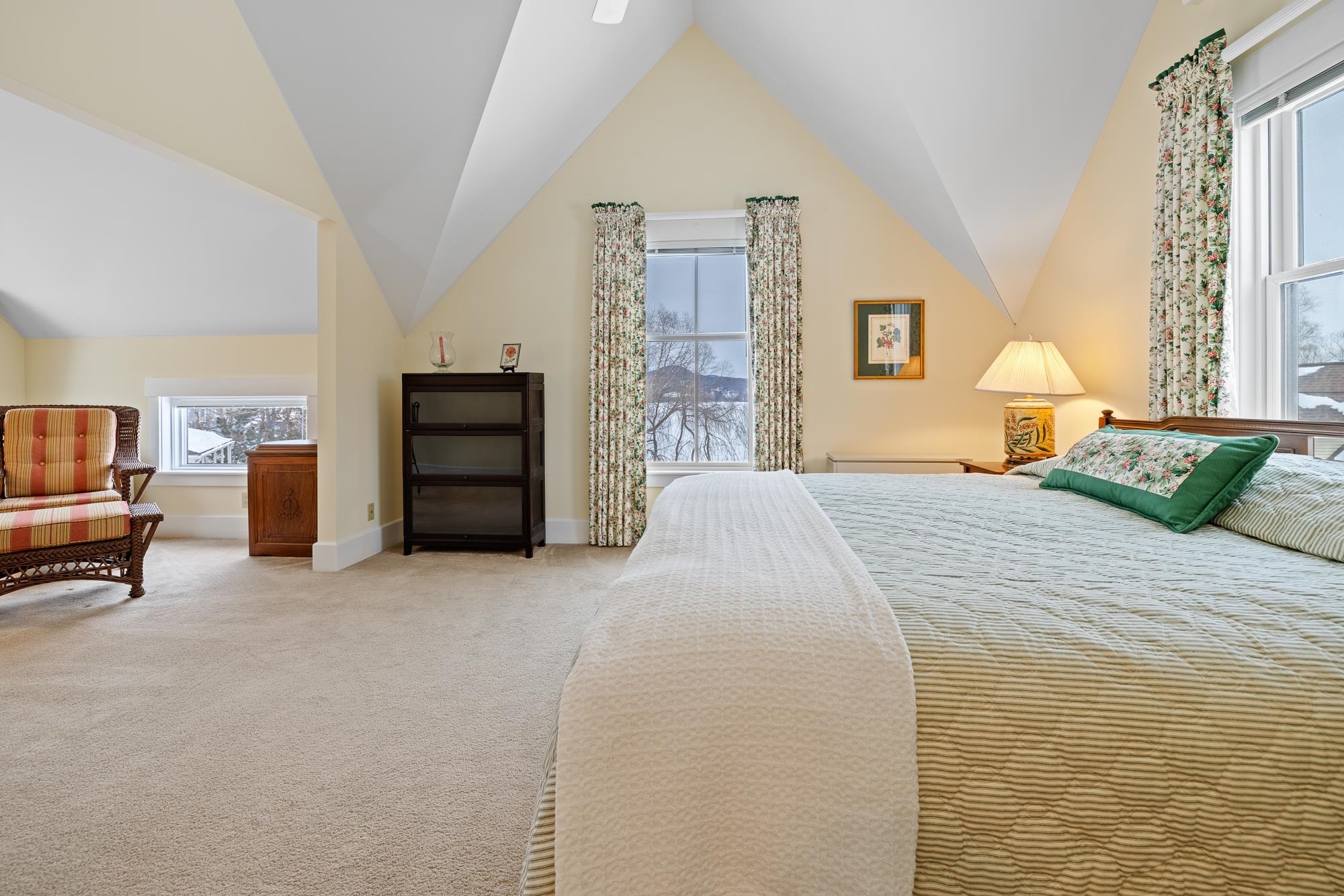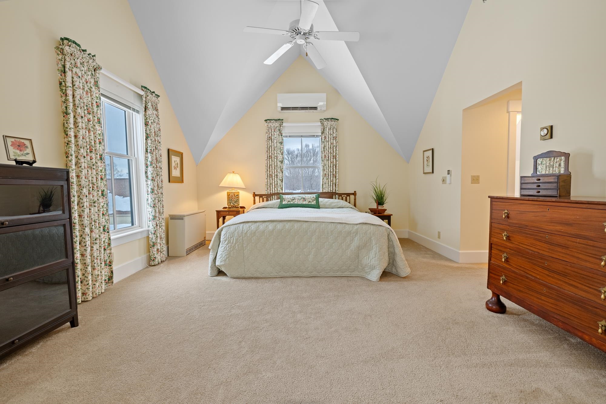 Lake and Mountains! Enjoy the best of both in this delightful contemporary Cape nestled in the Historic Shaker Village community on the edge of Mascoma Lake. This well-designed, tastefully appointed cottage delights the senses with beautiful water and mountain views, cool lake breezes, vibrant summer gardens, and the enchanting call of the loons — with easy access to local skiing, hiking, and skating for year-round enjoyment. The bright, open-concept main level flows seamlessly from the updated kitchen featuring granite countertops and Hubbardton Forge lighting into the inviting dining and living areas. French doors open to a serene wrap-around screened porch, perfect for morning coffee or evening relaxation. Step off the porch and connect to walking paths leading to one of two shared beaches and community docks. The first floor also includes a flexible third bedroom, home office or TV room, and a convenient full bath, and a tiled mudroom entry ideal for four-season living. Upstairs, you’ll find a spacious primary bedroom suite with a sitting room, along with a second comfortable bedroom. The fully finished lower level offers a generous recreation room, an additional bath, and abundant storage. Whether you’re looking for a full-time residence or a weekend escape, this special property places lake and mountain activities right outside your door — all just a short drive to Dartmouth Health Medical Center and Dartmouth College.