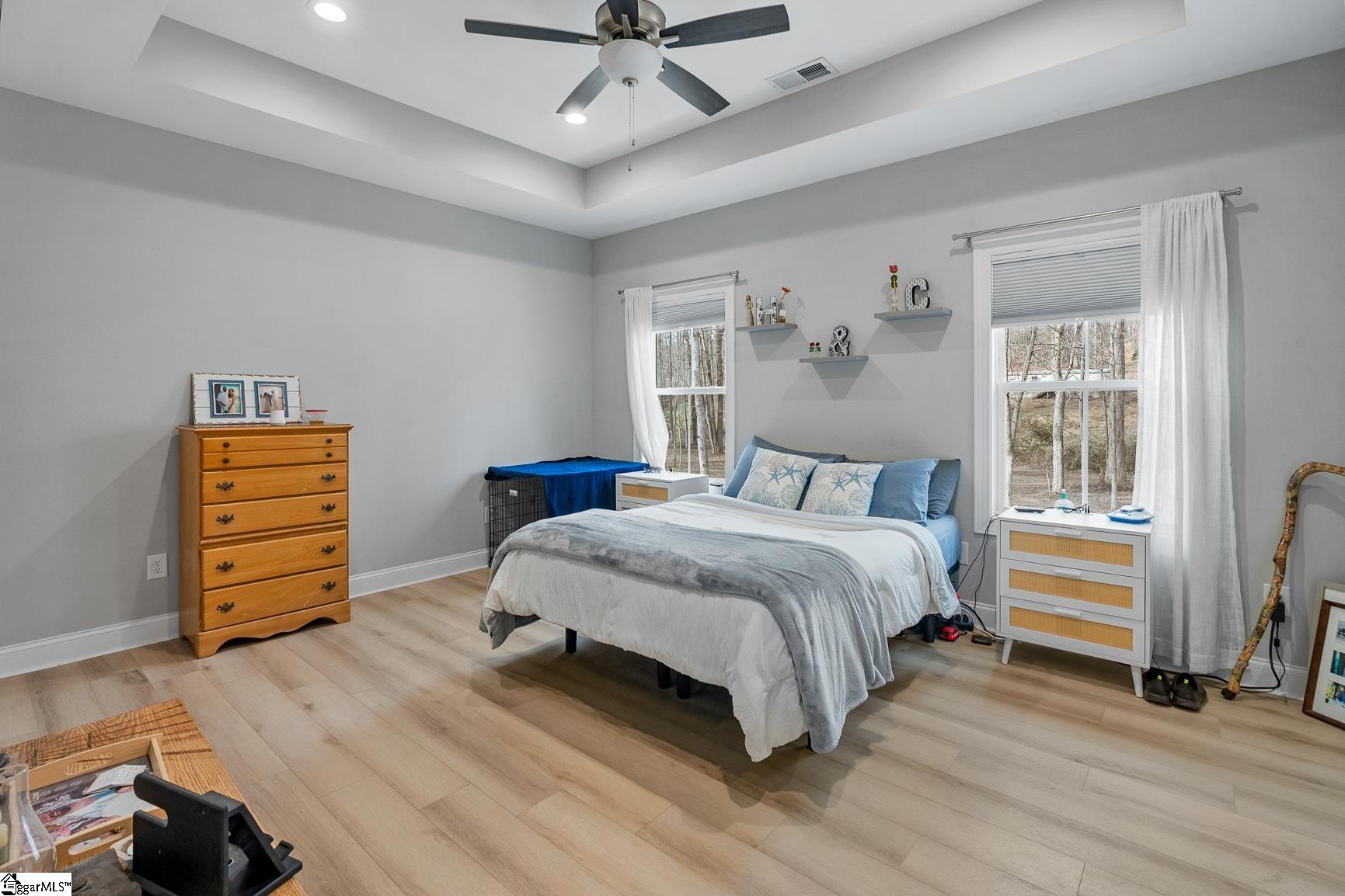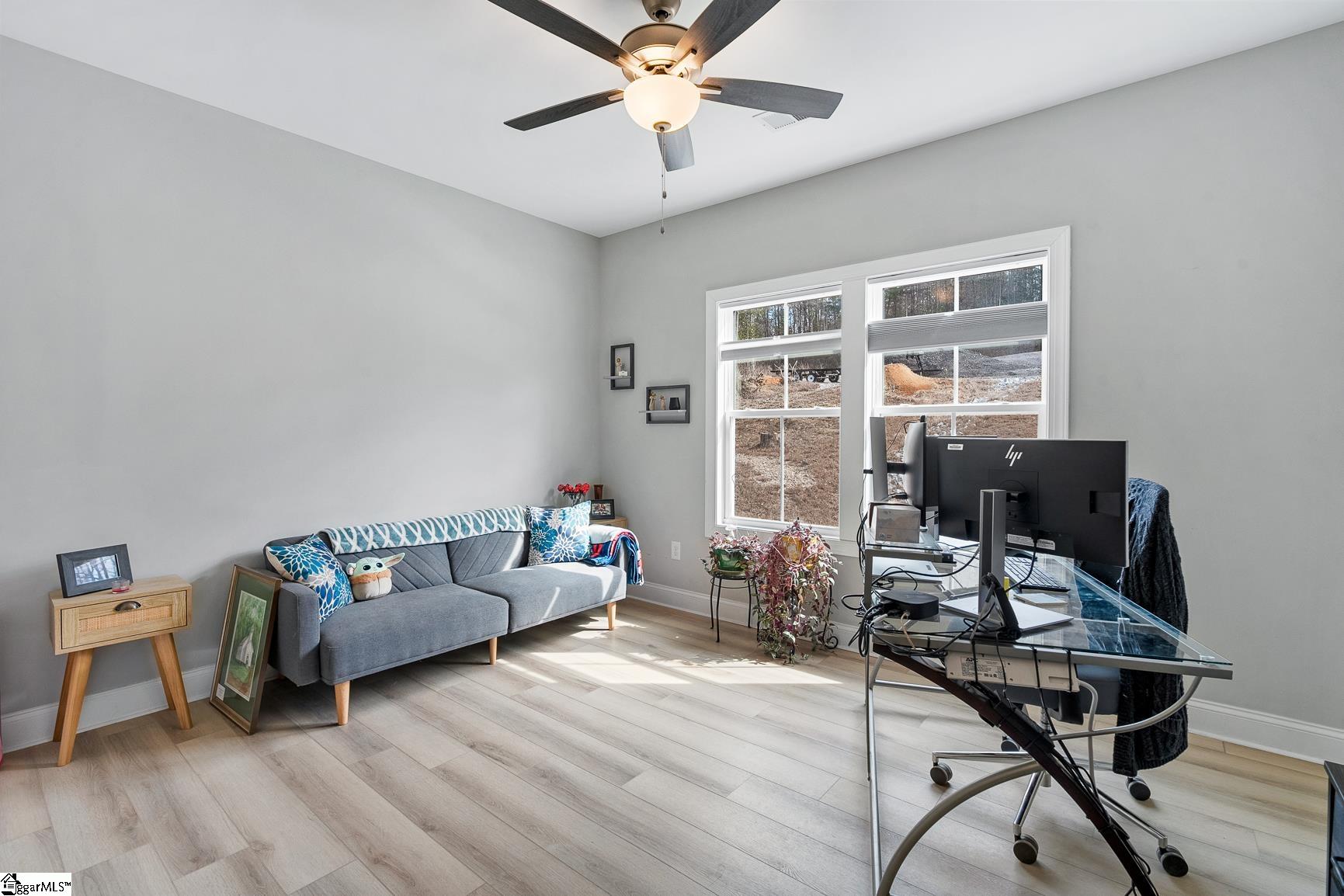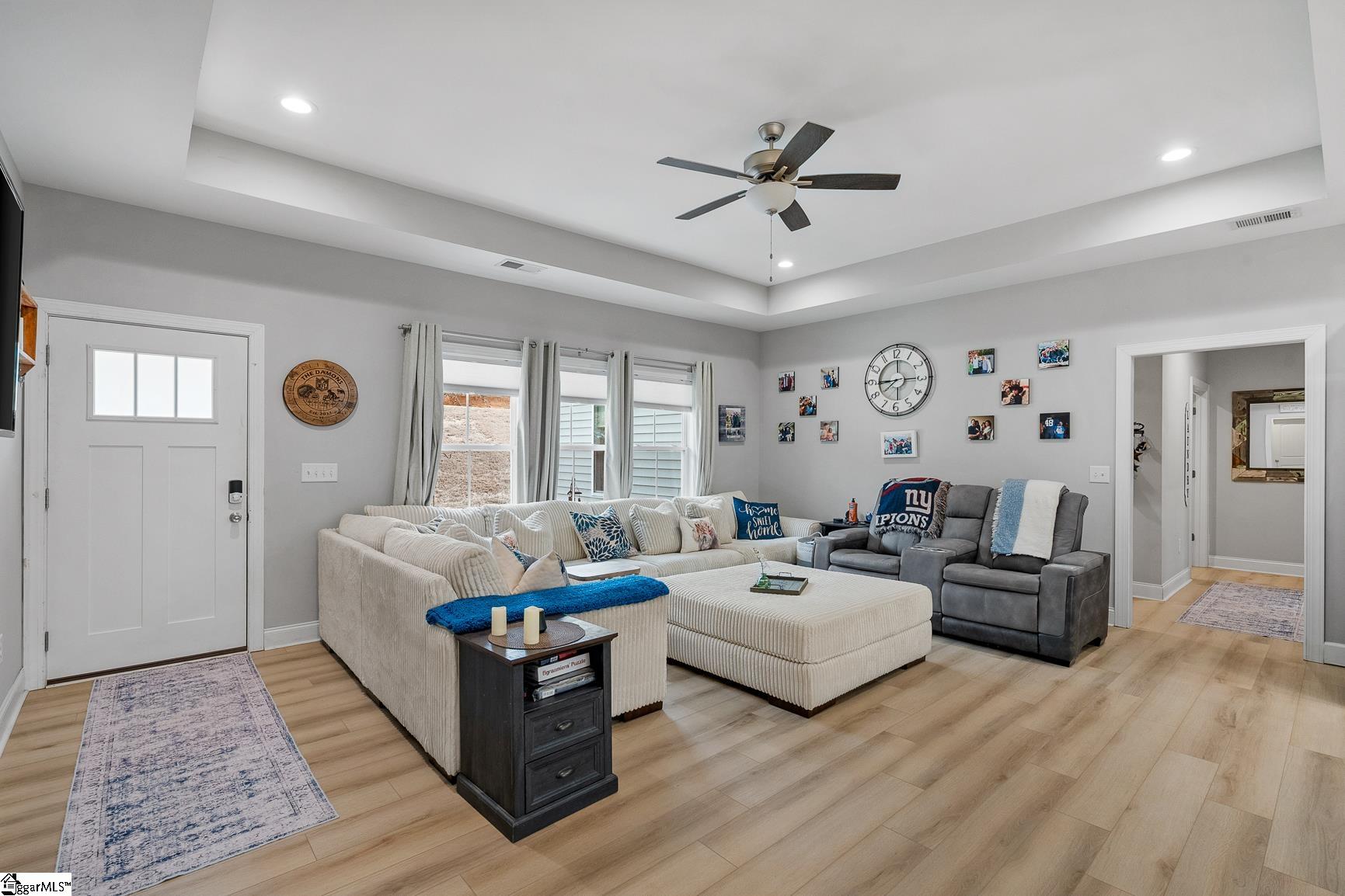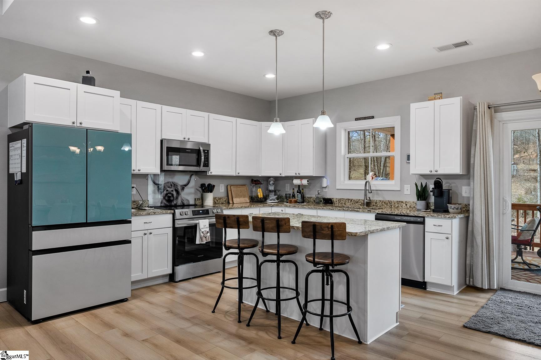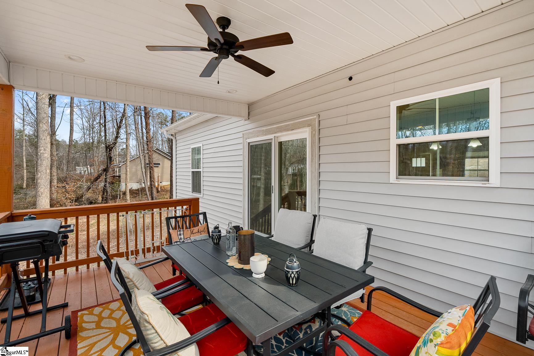 Built in 2024, this beautifully crafted one-level ranch offers approximately 1, 700 square feet of modern living on nearly 2 private acres along the scenic Cherokee Foothills corridor — with no HOA and short-term rentals allowed. Inside, a bright, open-concept layout features tray ceilings and recessed lighting that create an airy, expansive feel. Durable luxury vinyl plank flooring runs throughout the main living areas. The kitchen displays granite countertops, white cabinetry, stainless steel appliances, a large island with bar seating, and a window over the sink overlooking the backyard. The spacious living room offers generous natural light and a tray ceiling, creating a warm and inviting gathering space. This home features a split-bedroom floor plan with the primary suite including a double vanity in the en-suite bath, while two additional bedrooms are ideal for guests, a home office, or hobbies. Outdoor living is equally impressive. Enjoy morning coffee on the covered deck surrounded by mature trees, relax in the hot tub on the lower patio, and explore the expansive yard bordered by wooded privacy. A gentle creek winds along the back of the property, adding to the natural beauty and offering a tranquil backdrop with the soothing sound of flowing water. In addition to the attached two car garage, the property also features additional concrete for parking, a detached two-car carport with a metal roof, and a dedicated workshop with electricity — perfect for storage, projects, or outdoor equipment. Located in the Walhalla School District, the home offers close proximity to the natural beauty of Lake Jocassee at Devils Fork State Park and the hiking and recreation at Table Rock State Park. Come see this beautiful home today.