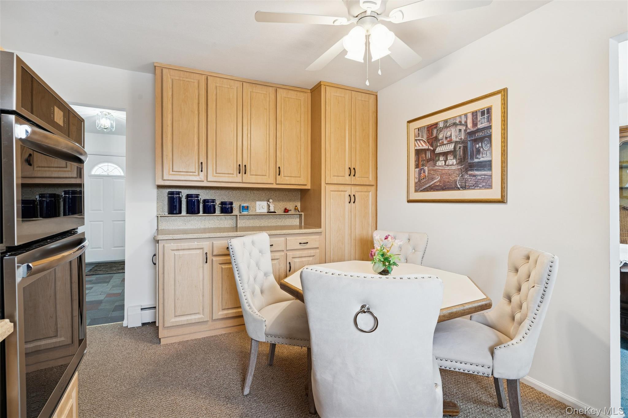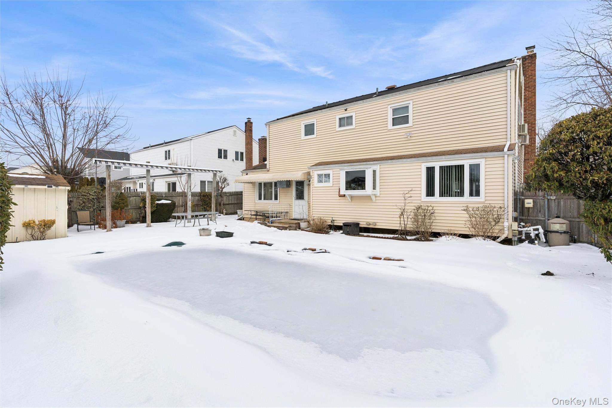 There is GAS ON THE STREET FOR GAS CONVERSION Offering a perfect blend of timeless charm and modern updates, this residence provides comfortable living spaces, generous storage, and excellent entertaining flow. Step in from a portico to a welcoming entrance foyer that leads to a sun-drenched living room with hardwood floors (preserved beneath carpeting) and a seamless connection to the formal dining room — ideal for hosting gatherings. The eat-in kitchen is thoughtfully designed with: * Corian countertops * Some Stainless steel appliances * Electric cooktop * Oven/microwave combo * Dishwasher & refrigerator * Instant Hot Water dispenser * Extra built-ins and pantry storage Just off the kitchen, the inviting den/family room features a wood-burning brick fireplace, built-in storage, washer dryer closet, and direct access to the yard and garage — creating the perfect space for cozy evenings or indoor-outdoor entertaining. A beautifully updated half bath completes the first level. Upstairs, the primary suite offers a private full bath, walk-in closet, and an additional mirrored closet. Three additional bedrooms provide ample closet space, ceiling fans, and hardwood flooring (exposed in select rooms). Additional highlights include: * Hardwood floors throughout (under carpeting where applicable) * Washer/Dryer (young) * Entertainment cabinetry * Walk in closet * Full unfinished attic with pull-down stairs * Alarm system - you connect * Basement - storage and utilities semi finished * Backyard Oasis - In ground pool patio roll out awning * Pool motor and liner are new Professional Tax grievance company feel this home is being over accessed and taxes may be able to come down $3, 200 approximately