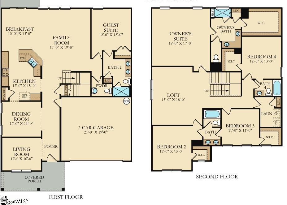 The Grisham floorplan at Shadow Stone is a spacious two-story home featuring 5 bedrooms, 4. 5 bathrooms, and a two-car garage. The main level includes an open family room, a modern kitchen with a breakfast area, and a guest suite with its own full bath. Upstairs, a loft provides versatile space, while the owner’s suite and additional bedrooms offer comfort and privacy. With its thoughtful layout and ample space, the Grisham is perfect for families seeking both style and functionality.