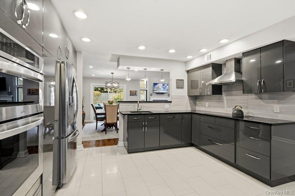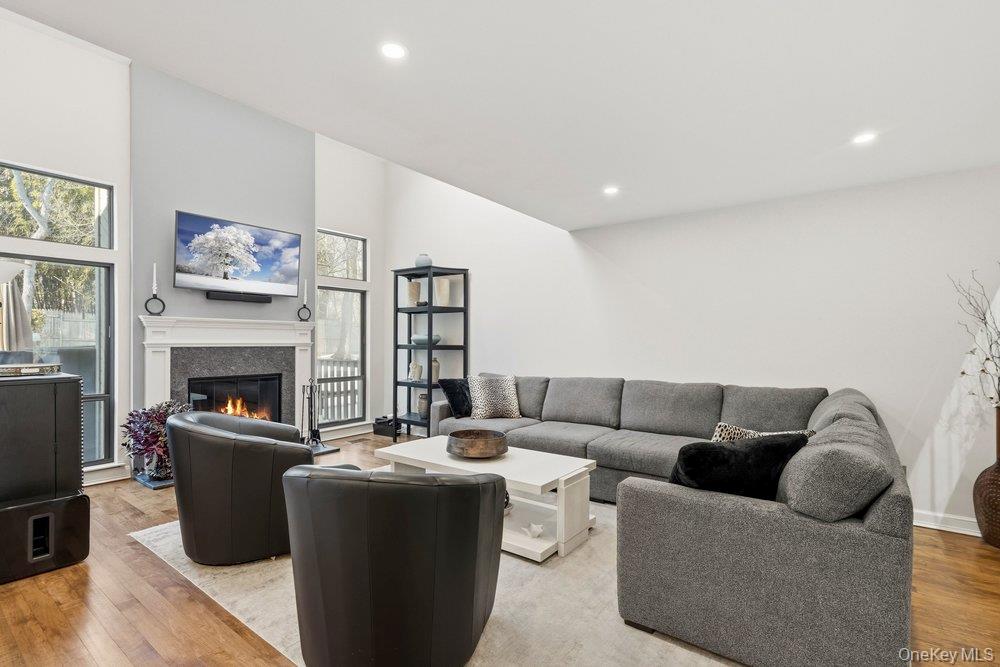 Rare opportunity in the prestigious Hamlet gated community, ideally located at the back of the development backing the greenbelt. This updated Exp. Biscayne offers 3 bedrooms, 2. 5 baths, wood floors in the main living areas, and a bright open layout. The renovated kitchen with sleek cabinetry and L-shaped counter seating flows into the formal dining room and dramatic cathedral-ceiling living room with fireplace overlooking the private backyard. Flexible sitting area or home office, plus renovated powder room. Spacious primary suite with large closet and private bath. Two-car garage with oversized driveway. Resort-style amenities include clubhouse, pool, tennis, and more, all in the award-winning Jericho School District. Move-in ready and one of the most private locations in the community.