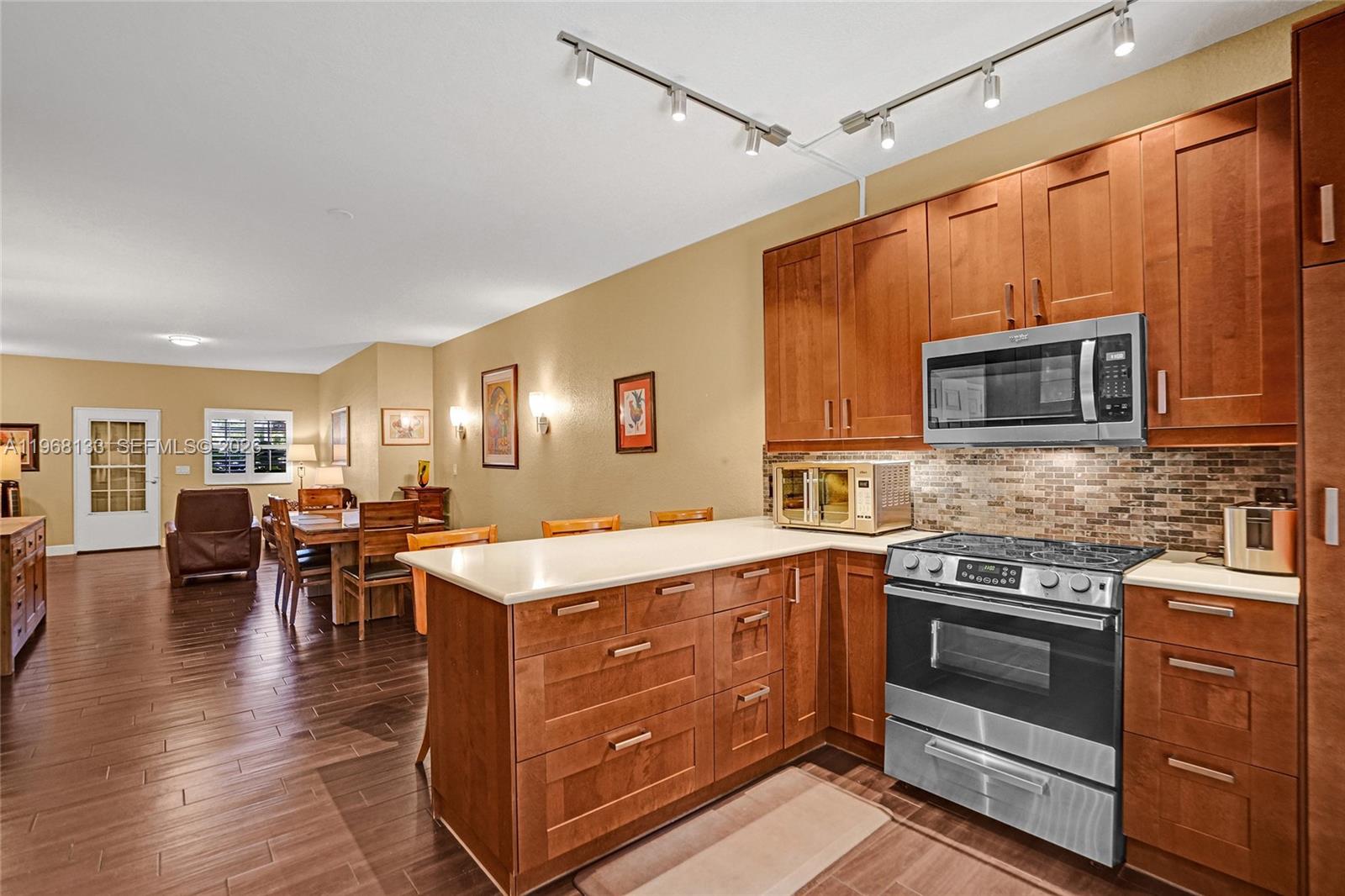 Rarely available unit in this boutique complex is a must see. This completely remodeled 2/2 unit presents like townhome living. Direct unit access, parking in front, and the best feature; a large outside patio to enjoy outdoor entertaining and grilling. The updated kitchen features an open concept with granite and countertop dining. Both the primary and secondary bedrooms feature large walk-in closets and updated baths. The unit is immaculate and being sold turn key furnished. Great for those second home buyers. Just move right in. The complex is a gated hidden gem in the central Hollywood area in one of the most convenient locations in the tri county area. Literally minutes to access I-95, 595, Turnpike, Fort Lauderdale International, and Tri-Rail. For shopping you have Dania Point, Oakwood Plaza, Target, Publix and Walmart all within a two mile radius. Straight shot east on Hollywood Blvd to Downtown Circle and the famed Hollywood Beach Boardwalk. Artwork excluded from sale.