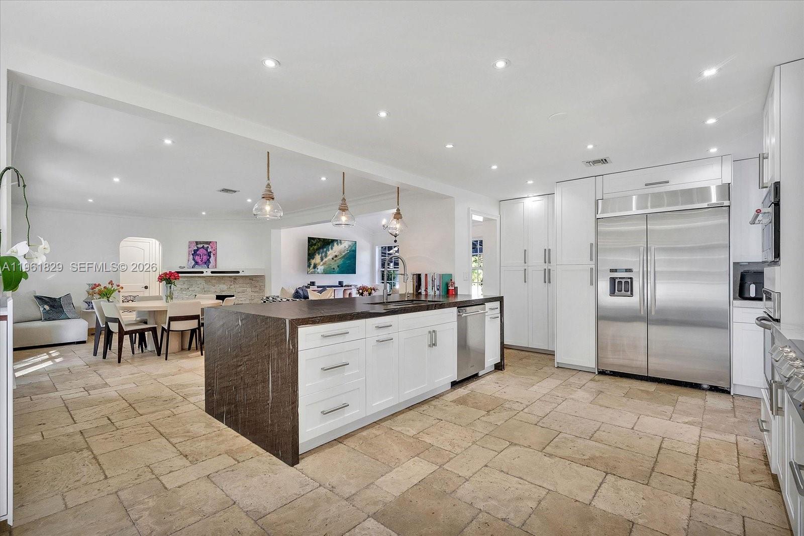 Set in one of Coral Gables’ most coveted neighborhoods, this 3, 140 total sq ft private residential retreat is just a short stroll to Sunset Place’s shops, restaurants, and entertainment, as well as top-rated schools. Enjoy the rare convenience of being able to leave the car at home while still returning to complete privacy. The property features a four-bedroom, three-bath main residence complemented by a separate one-bedroom, one-bath guest house—ideal for visitors, extended family, or flexible workspace. Generous living and dining areas centered around a cozy fireplace are filled with natural light and flow seamlessly into a gourmet kitchen with an expansive waterfall island designed for gathering and everyday comfort. What truly distinguishes this home is its remarkable sense of privacy. Mature tropical landscaping envelops the lush lot, creating a serene, sheltered environment rarely found steps away from premier dining and shopping. The main house and guest house are thoughtfully positioned around a sparkling pool and courtyard, enhancing the estate-like feel while maximizing indoor-outdoor living. A rare opportunity to own a spacious, private sanctuary in the heart of Coral Gables.