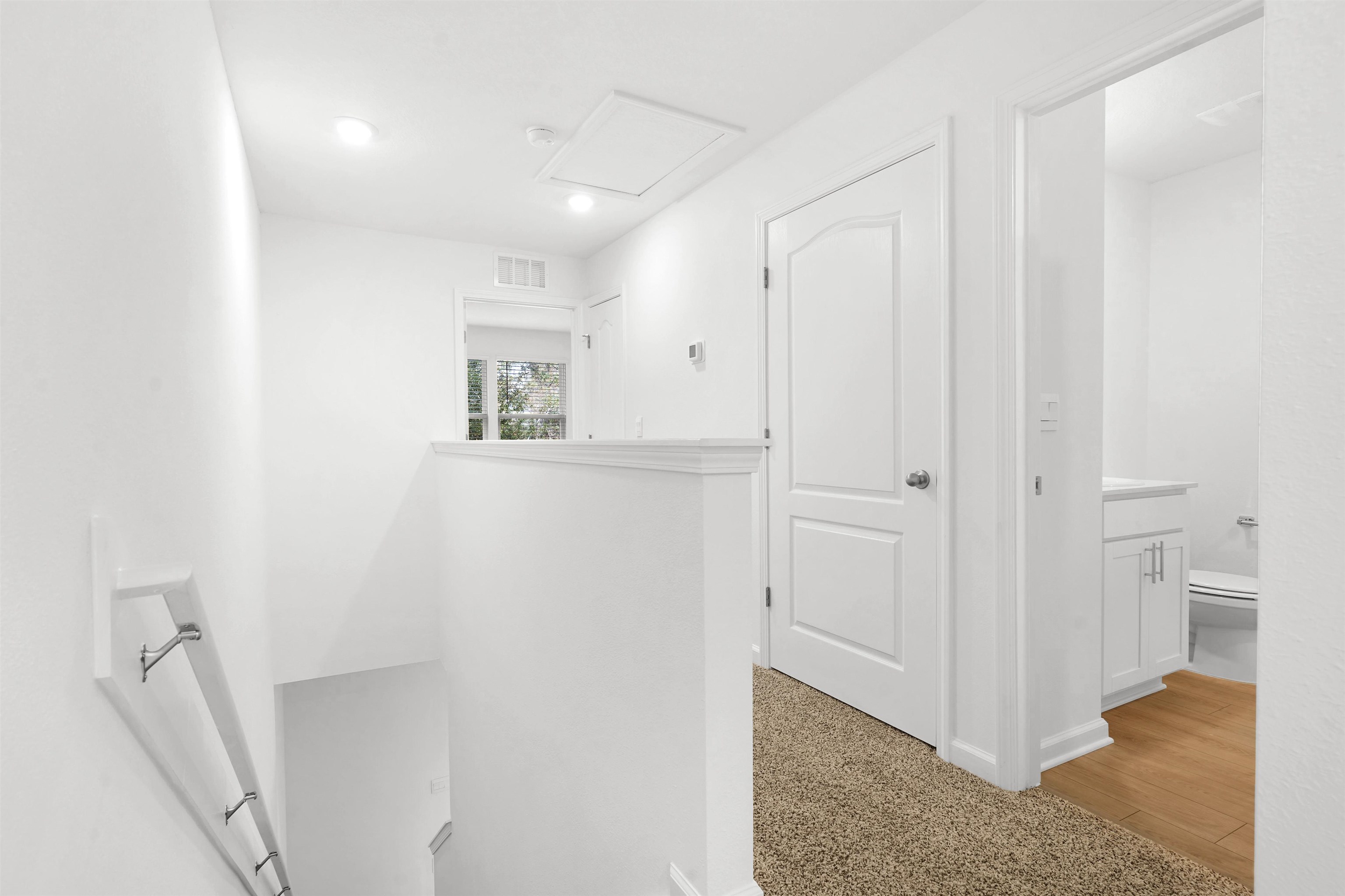Welcome home to 135 Palmetto Ridge Rd, where brand new construction meets smart design and everyday functionality in the heart of Stokes Landing. This thoughtfully designed townhome offers a seamless open living concept on the first floor, where the kitchen, dining, and living areas blend perfectly together to create a bright and inviting space ideal for both entertaining and daily living. The main living area flows effortlessly into your screened in back lanai, creating an extension of the home and offering comfortable outdoor space to relax, unwind, or host guests. A convenient half bath downstairs adds to the practical layout. Upstairs, you will find three spacious bedrooms and two full bathrooms, providing flexibility for guests, a home office, or growing families. This home comes fully equipped with valuable upgrades including all cabinet hardware installed, all appliances included with washer and dryer, bathroom accessories in place, and a custom shelf above the washer and dryer for added storage and organization. Enjoy the ease of low maintenance living with lawn care included, along with a reserved parking space designated for your home. Located just minutes from historic Downtown St. Augustine, Stokes Landing offers the perfect blend of charming city living and peaceful privacy. With quick access to US 1 and I 95, commuting to Jacksonville and surrounding areas is simple and convenient. Families will also appreciate being zoned for St. Johns County schools, the highest rated school district in Florida. If you are looking for a move-in ready, brand new home that delivers on location, functionality, and value, 135 Palmetto Ridge Rd is ready to welcome you. Schedule your private tour today.