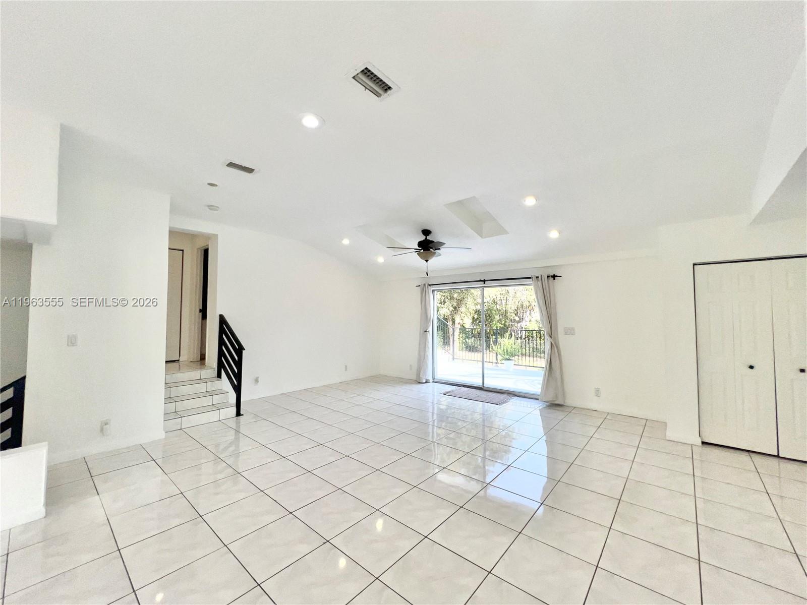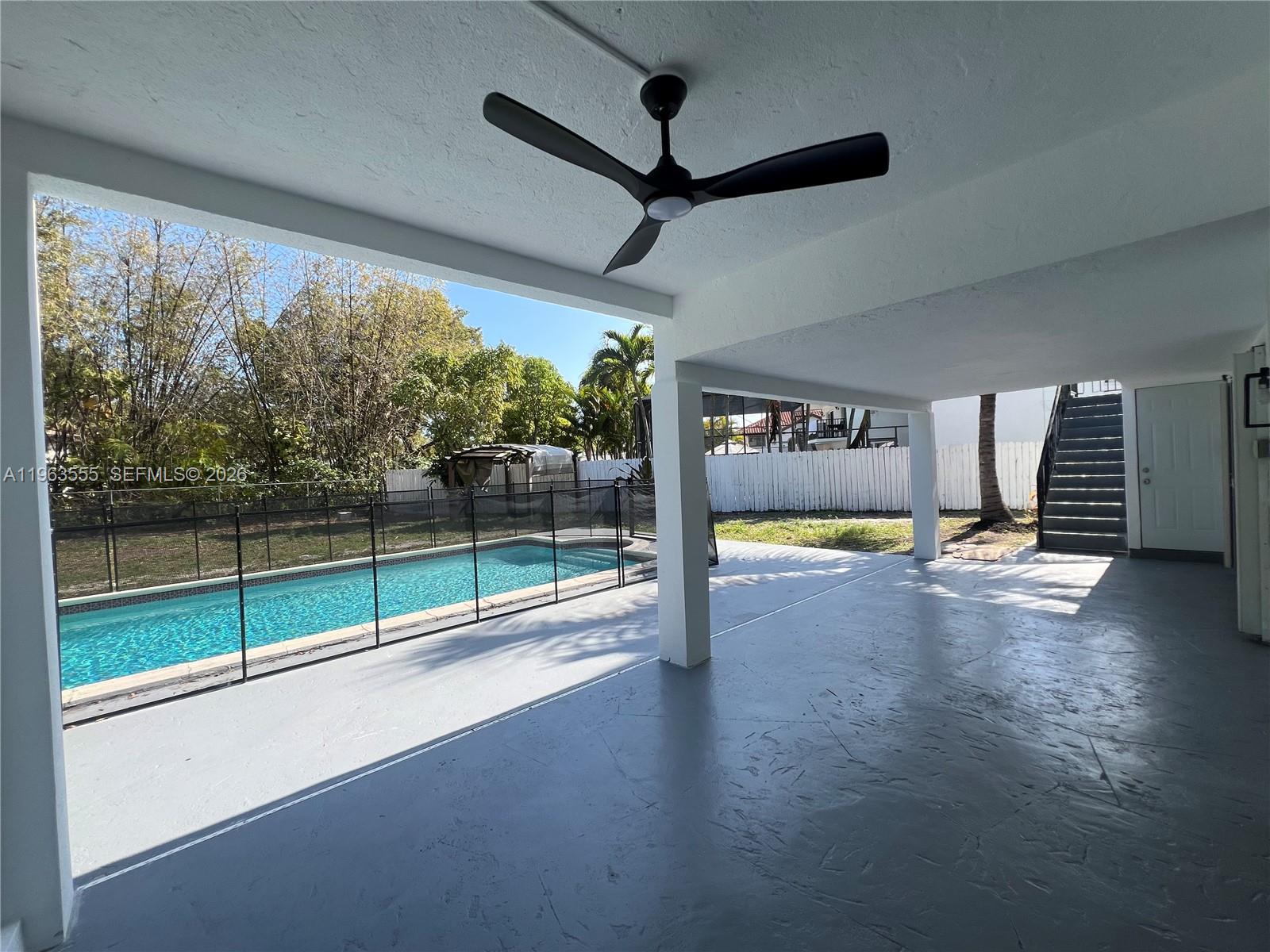 The upper-level features three spacious bedrooms and two full bathrooms, along with formal dining, a family room, , laundry room, and an oversized balcony overlooking the pool perfect for relaxing or entertaining, with ample space for outdoor seating and barbecue.