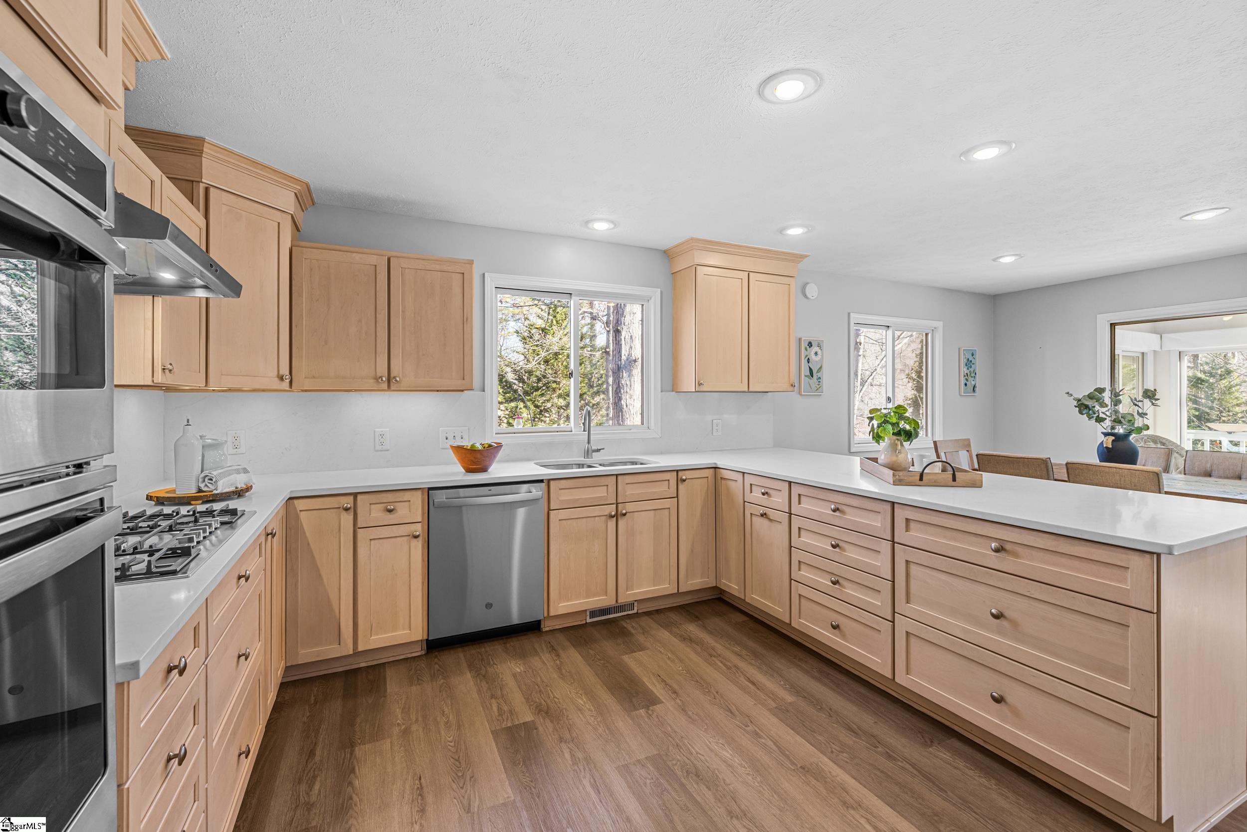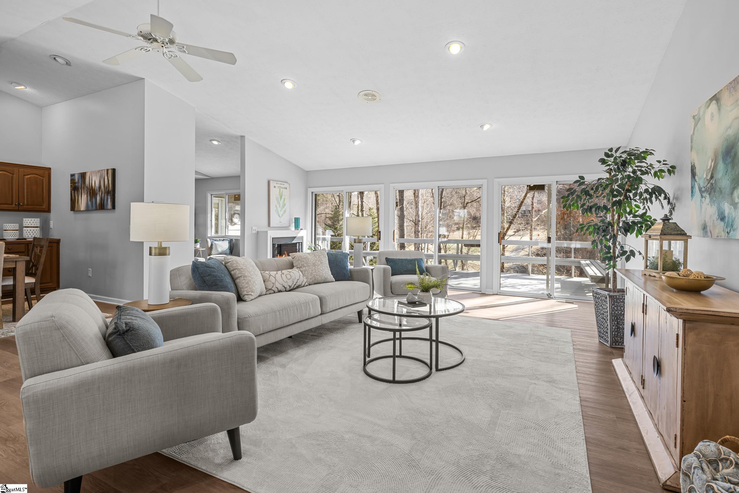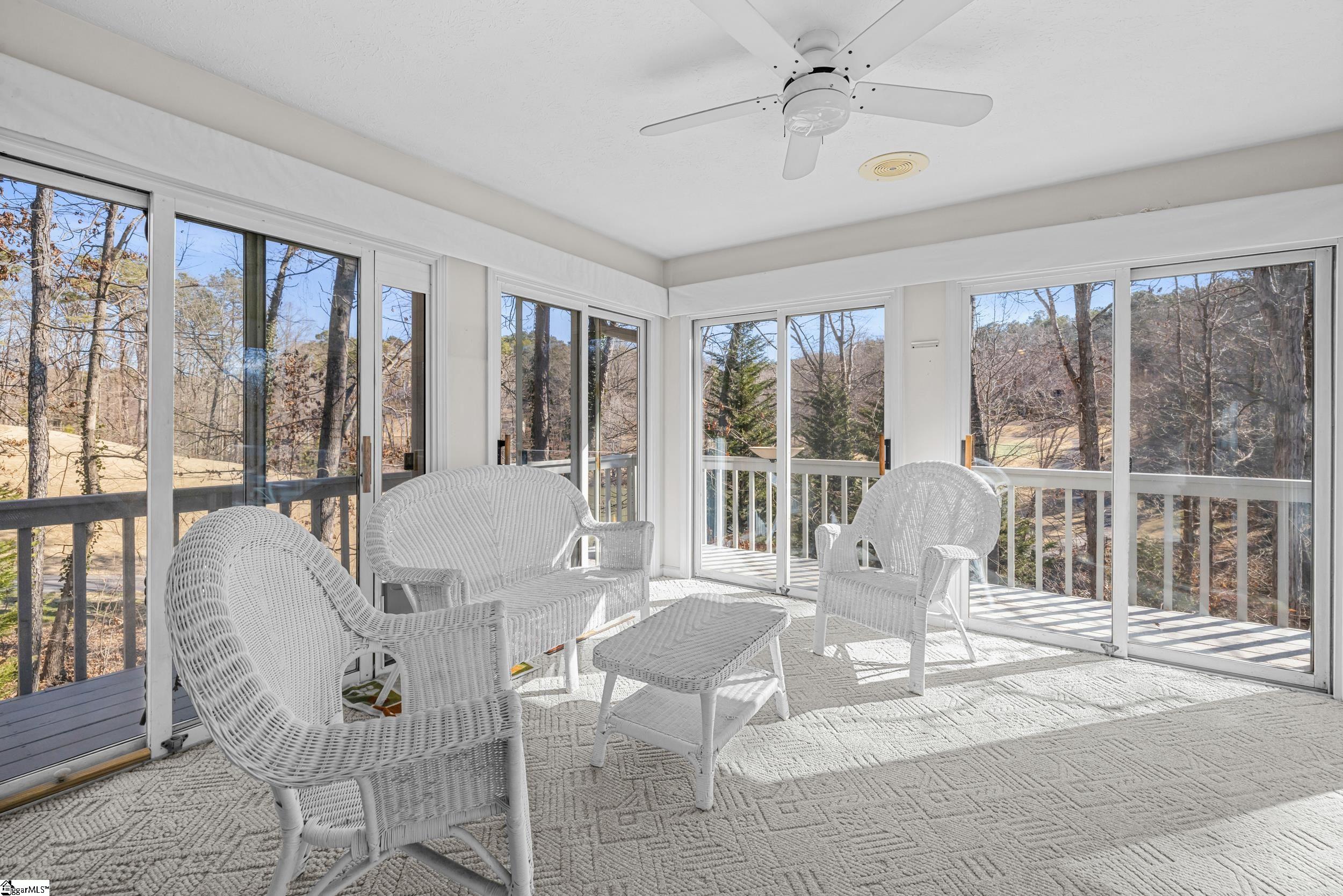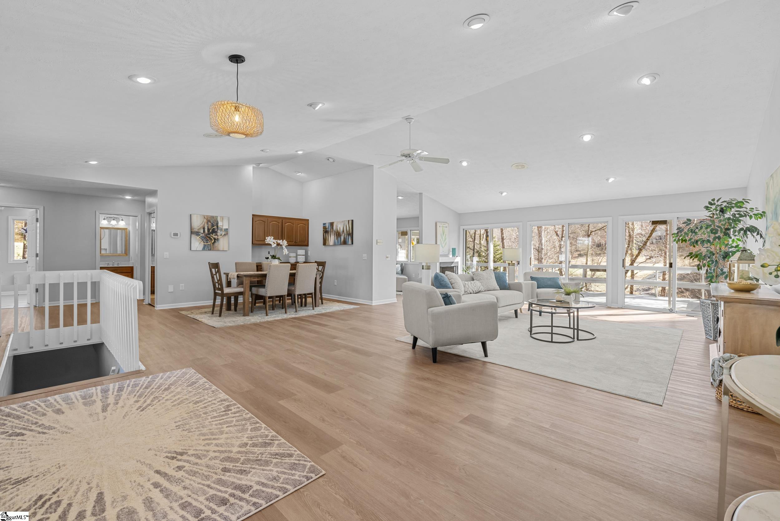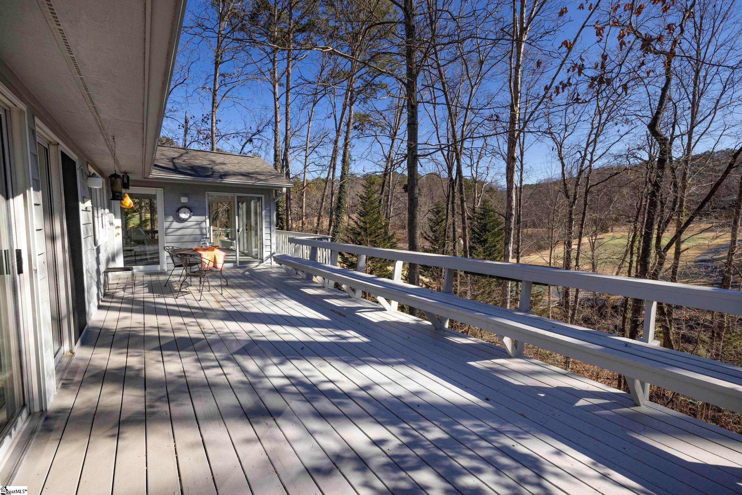 An extraordinary pairing of golf course views and waterfront living on Lake Keowee within the amenity-rich gates of Keowee Key. Step inside to natural light pouring through expansive windows overlooking the golf course. Vaulted ceilings and a fireplace highlight the open living and dining spaces, designed for comfort and connection. The remodeled kitchen features quartz countertops, a gas cooktop with hood, stainless steel appliances, soft-close cabinetry, and a generous pantry. The updated primary suite offers dual vanities, a walk-in shower, walk-in closet, and additional linen storage. A laundry room and powder room complete the main level. The terrace level includes three bedrooms and a spacious recreation room, providing flexibility for guests or extended family. Expansive upper and lower decks stretch the length of the home, complemented by a screened porch and outdoor shower for easy lake days. From every outdoor living space, you’ll enjoy peaceful golf course views accompanied by the gentle sound of the course’s water feature—an unexpectedly calming backdrop. Immediate lake access allows you to enjoy the season without delay. The gently sloping shoreline leads to a private 10x20 platform dock, ready for boating, paddling, or an evening cruise. Residents of Keowee Key enjoy an 18-hole course designed by George Cobb, lighted tennis and pickleball courts, a fitness center with indoor pool, marinas, walking trails, dog park, dining, and an active social calendar. Golf. Waterfront. Immediate access. A rare opportunity in one of the area’s most established lake communities.