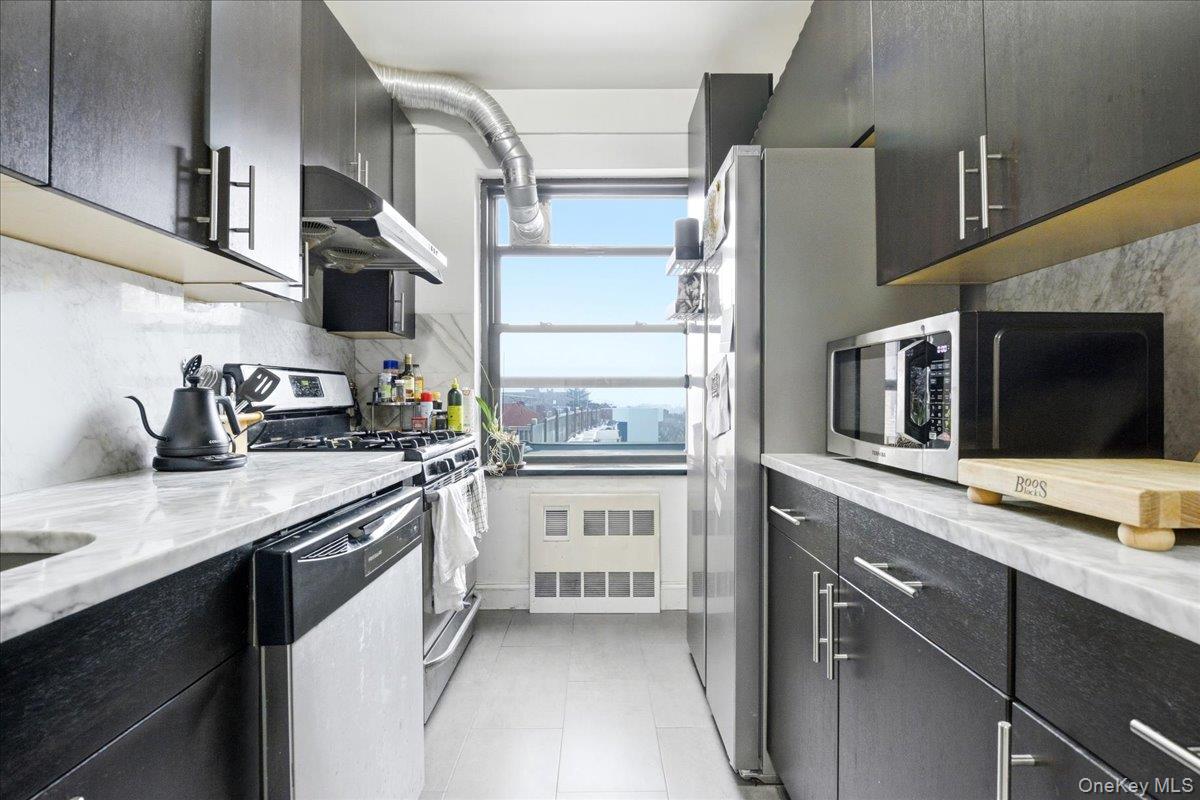 Welcome to this beautifully renovated two-bedroom home at Anita Terrace, Apartment 3AA. A spacious entry foyer with two large double closets offers excellent storage and a welcoming first impression. The layout opens seamlessly into a designated dining area and expansive living room, where oversized windows flood the space with natural light—ideal for both everyday living and entertaining. The updated, windowed kitchen features sleek cabinetry, marble-style countertops, stainless steel appliances, and ample storage, blending modern style with everyday functionality. Hardwood floors and high ceilings throughout enhance the bright, airy feel of the home. Both bedrooms are generously sized and can comfortably accommodate full or queen-size furnishings, offering flexibility for a primary bedroom, nursery, guest room, or home office. The renovated bathroom is finished with neutral stone tile, a modern vanity, and timeless details, making this residence truly move-in ready. Anita Terrace is a vibrant, pet-friendly, financially healthy, full-service 24 hr doorman co-op located in the heart of Rego Park. Residents enjoy the newly designed private playground, manicured gardens and seating areas, a resident/members-only fitness center, indoor/outdoor parking - monthly parking options on site. Recent upgrades: New Roof, Elevator, Garage, Gym, New wall and fence around the complex. Annual membership to the Anita Terrace private fitness center is available for $180/year for individuals and $300/year for a group membership. All UTILITIES are in included! Trader Joe’s, Rego Park Famous Pizza, Diner Bar, the 108th Street shops, Foodtown Grocery, Costco, The Forest Hills Stadium, Queens Center Mall all a short distance from Anita Terrace. The local R & M trains, express QM10 and QM40 bus to Manhattan are within a few short blocks. The LIRR station is accessible in downtown Forest Hills, so you can be off to the Long Island beaches in no time!