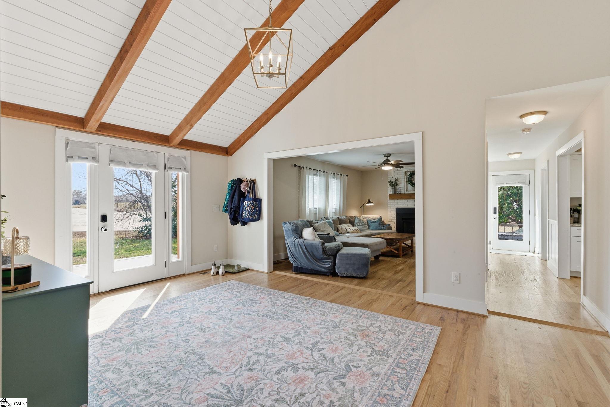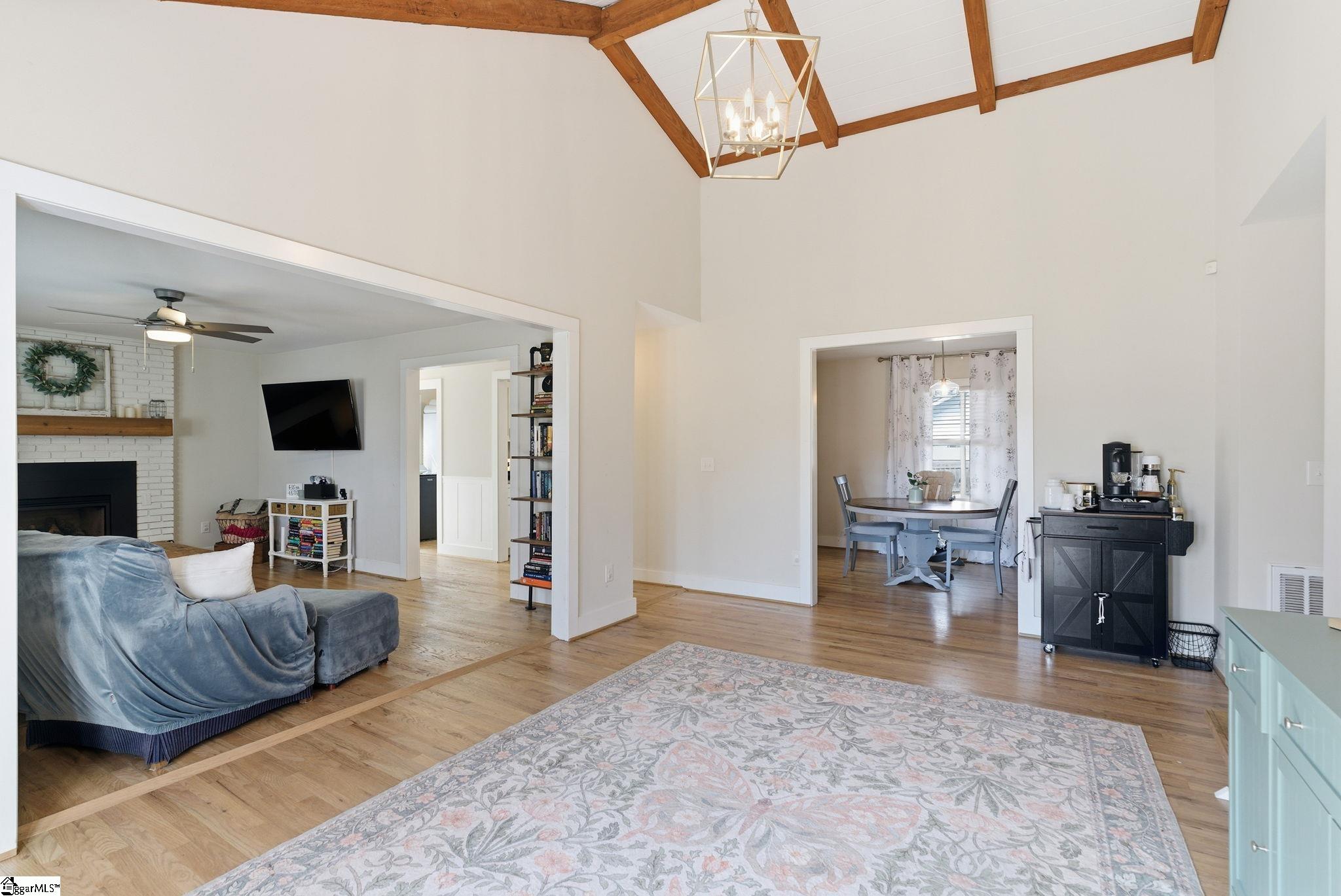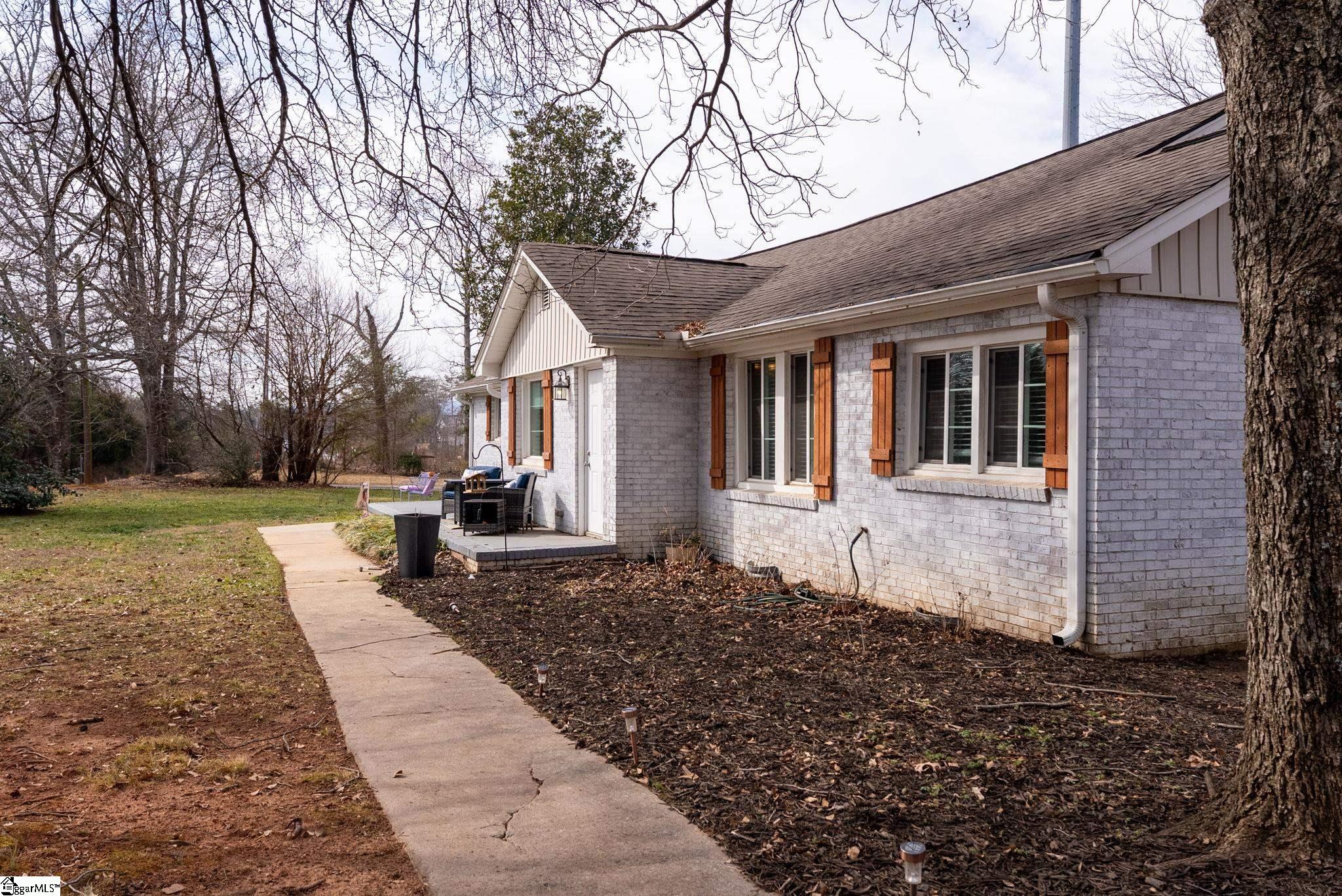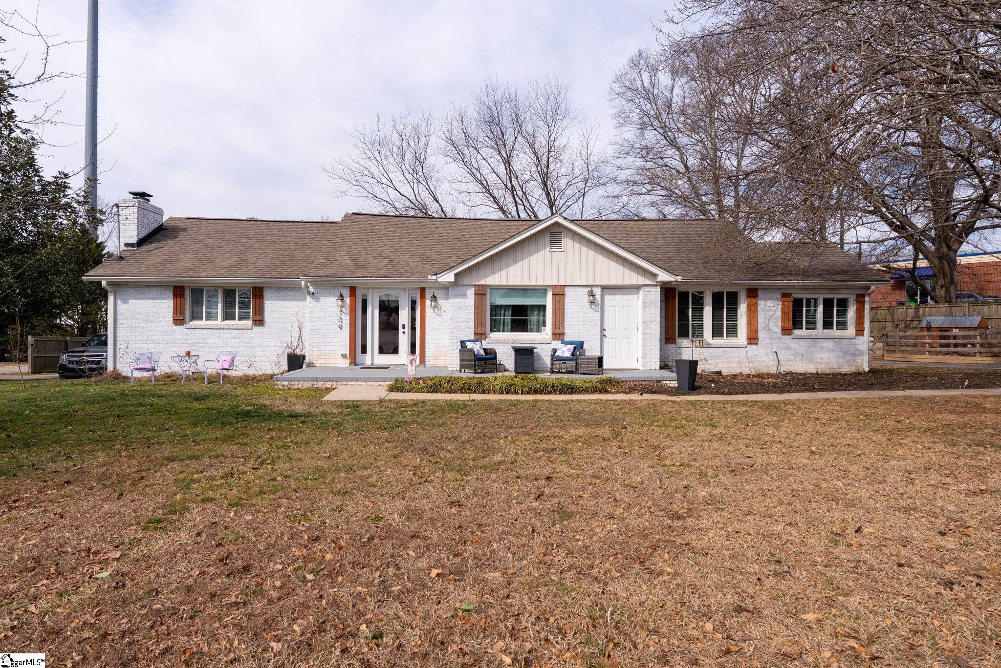 Welcome to 709 Old Rutherford Rd. , a hidden gem in Taylors that offers a unique blend of rural tranquility and city convenience. From the moment you arrive, this one-story brick residence captivates with a soaring two-story foyer, where artisanal custom cedar beams serve as a stunning introduction to the home's high-end finishes. The expansive living room is bathed in natural light and features rich hardwood floors and a cozy gas fireplace with a classic wood mantle. Nearby, the separate dining room creates an elegant atmosphere for gatherings. The kitchen is fully equipped with granite countertops, stainless steel appliances, and abundant cabinetry. For modern ease, the home includes a walk-in laundry room and a dedicated guest half-bath. The large primary suite includes a walk-in closet and a spacious full bath featuring double sinks, while two additional bedrooms share a well-appointed second bathroom. Major heavy lifting has already been done for you, as the roof, HVAC, electrical, and plumbing systems have all been recently updated, ensuring a move-in-ready experience. Set on a sprawling . 45-acre lot with a circular driveway and extra parking pad, the outdoor space is a homesteader’s paradise. The property is unzoned with no HOA, offering limitless potential for your vision. The grounds include three blueberry bushes, two apple trees, and a fenced yard perfect for chickens or goats—and the chicken coop conveys! Complete with an outbuilding for extra storage, this home offers the peace of the countryside just 10 minutes from Lake Robinson and less than 20 minutes from the bustling downtown hubs of Greenville, Greer, and Travelers Rest.