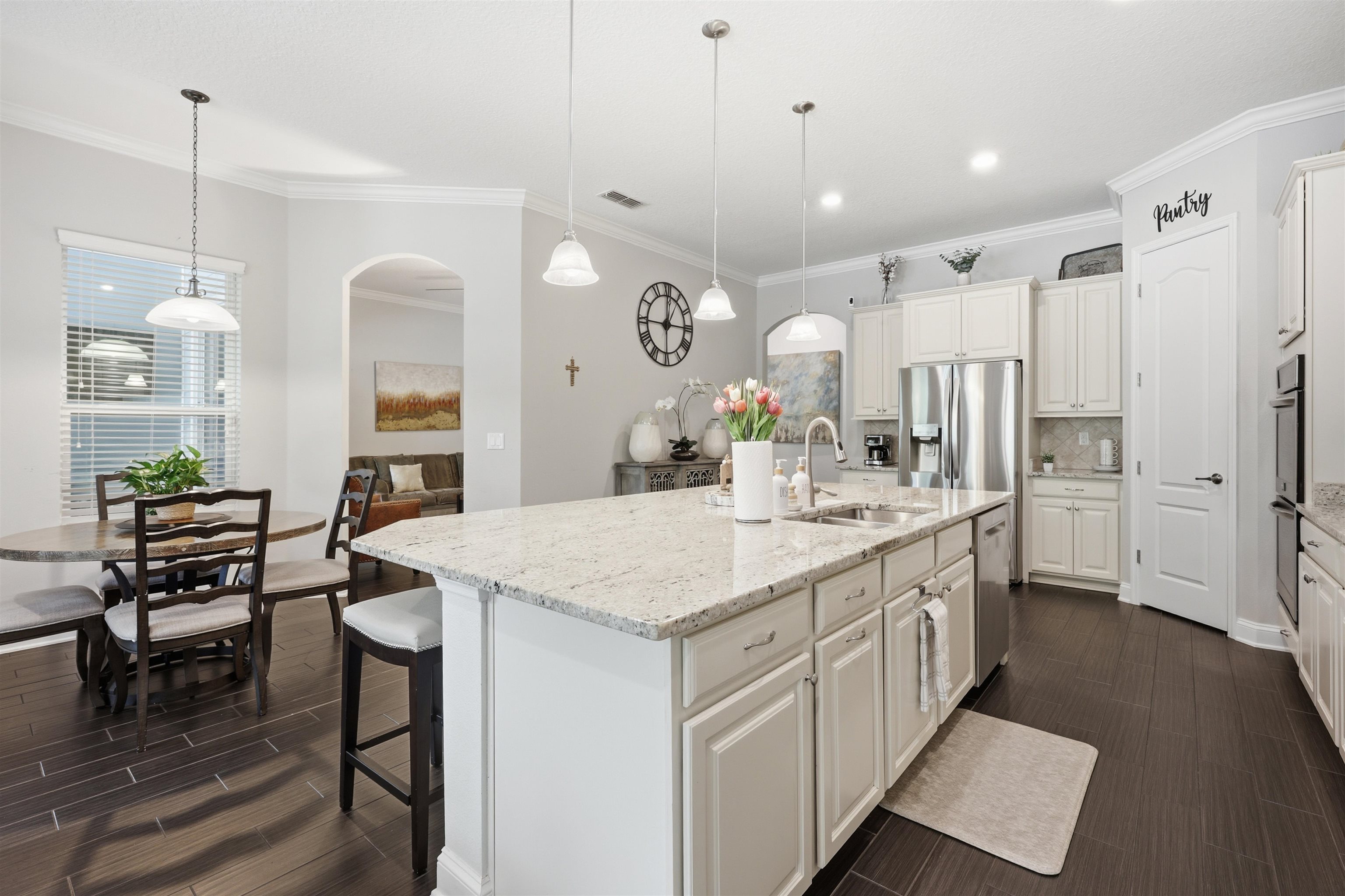 Welcome to refined lakefront living in sought-after Palencia! Located on a quiet cul-de-sac, this stunning 5-bedroom, 4 full-bath home offers space, comfort, and true Florida lifestyle. The open-concept floor plan is filled with natural light and features expansive living areas perfect for entertaining and everyday living. The beautifully designed kitchen flows seamlessly into the main spaces, creating a warm and inviting atmosphere. Step outside to your private backyard oasis featuring a heated pool overlooking serene lake views—ideal for year-round enjoyment and unforgettable sunsets. The spacious owner’s suite provides a peaceful retreat, while four additional bedrooms and four full baths offer flexibility for guests, multi-generational living, or home office needs. Enjoy Palencia’s resort-style amenities including pools, fitness center, tennis courts, parks, and scenic trails, all just minutes from historic St. Augustine, shopping, dining, and top-rated schools. Welcome to exclusive lakefront living in the prestigious community of Palencia. Ideally situated on a quiet cul-de-sac, this stunning 5-bedroom, 4 full-bath residence offers the perfect blend of elegance, space, and true Florida lifestyle. As you enter, you’re greeted by an open-concept design filled with natural light, soaring ceilings, and expansive living areas ideal for both everyday living and entertaining. The modern, well-appointed kitchen flows seamlessly into the main living spaces, creating a warm yet sophisticated atmosphere. The true showpiece of this home is the spectacular outdoor oasis featuring a beautiful heated pool with spa/jacuzzi overlooking tranquil lake views. Designed for year-round enjoyment, this private retreat is perfect for relaxing evenings, unforgettable sunsets, and hosting gatherings with family and friends. The combination of water, privacy, and scenery creates an exceptional backyard experience. The spacious owner’s suite provides a peaceful and luxurious retreat, while four additional bedrooms and four full bathrooms offer flexibility for guests, multi-generational living, or a home office setup. Residents of Palencia enjoy resort-style amenities including community pools, fitness center, tennis courts, parks, and scenic walking trails, all just minutes from historic St. Augustine, top-rated schools, shopping, and dining. A rare opportunity to own a 5-bedroom lakefront pool home with spa in one of Northeast Florida’s most desirable communities. Schedule your private showing today — this exceptional property truly has it all.