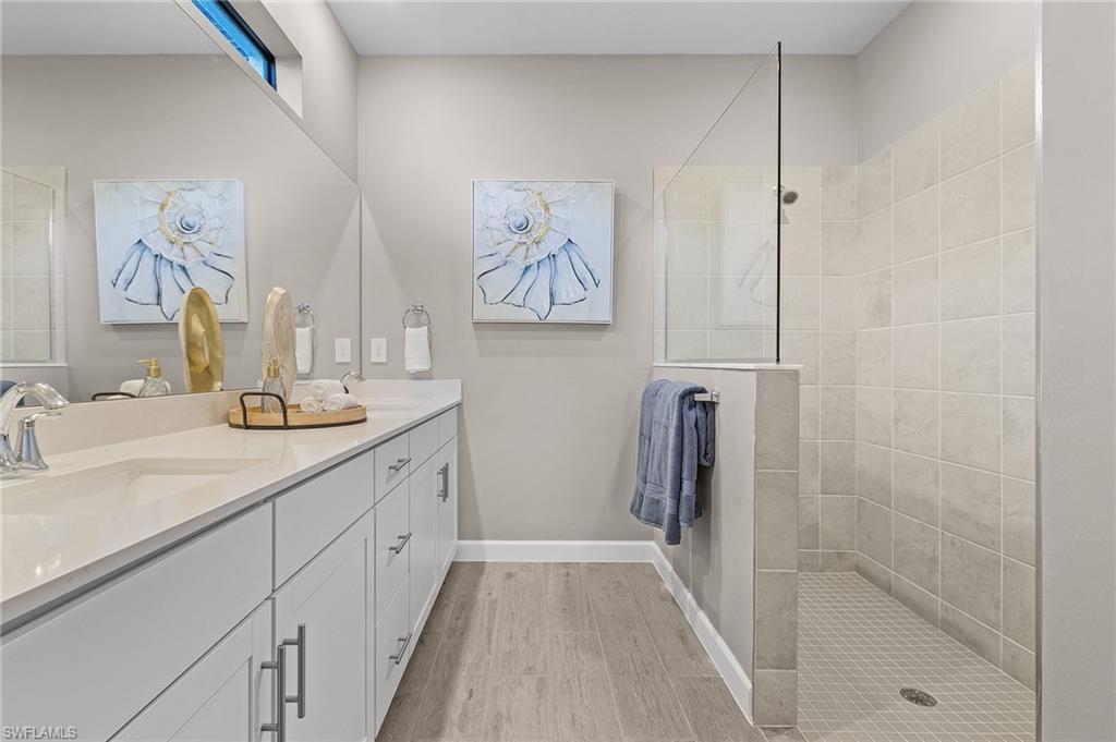 This 4 bedroom, 3 bath Lennar Trevi model offers a stylish, upgraded living experience in one of Estero's most desirable communities. Unlike standard builder homes, this property features thoughtful upgrades throughout, including quartz countertops, custom wall details, stainless steel appliances, impact windows/doors, and 8x36 tile flooring (no carpet). The open-concept layout flows seamlessly to a covered lanai, with a spacious primary suite, walk-in closet, and en-suite bath for added comfort. A two-car garage provides extra storage and convenience.