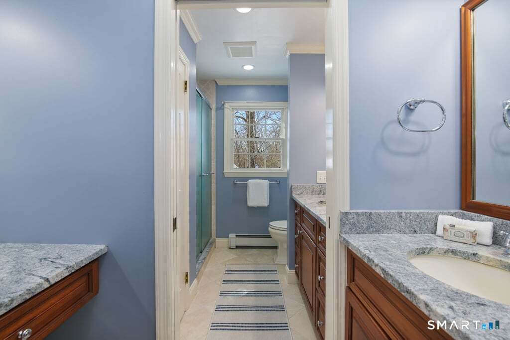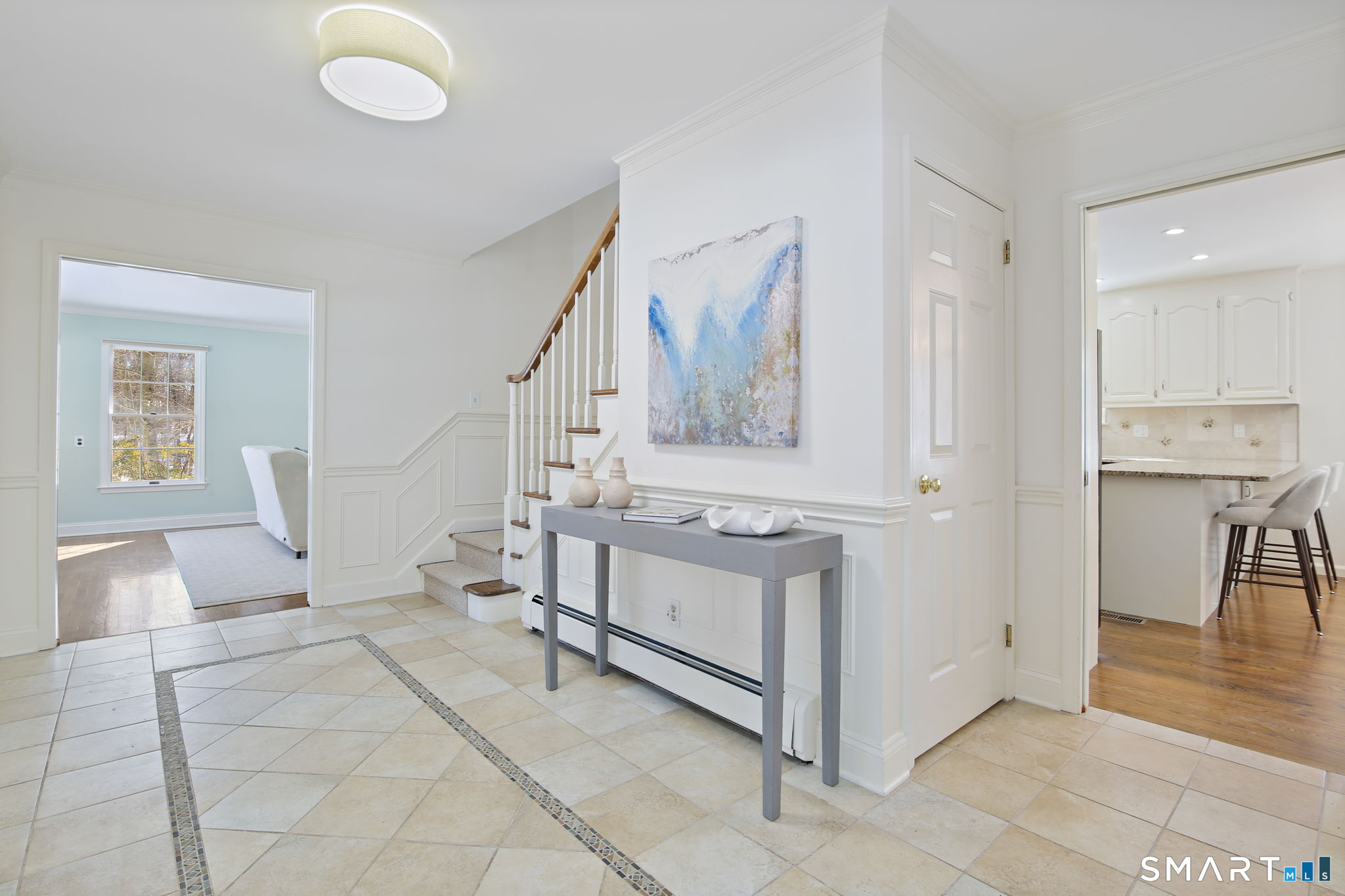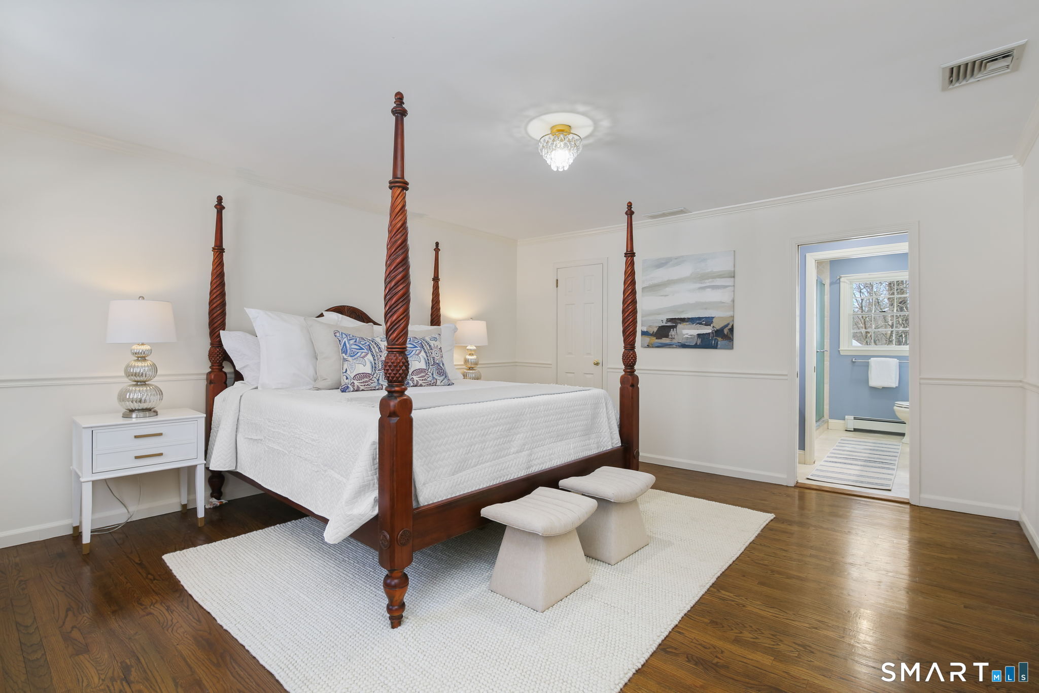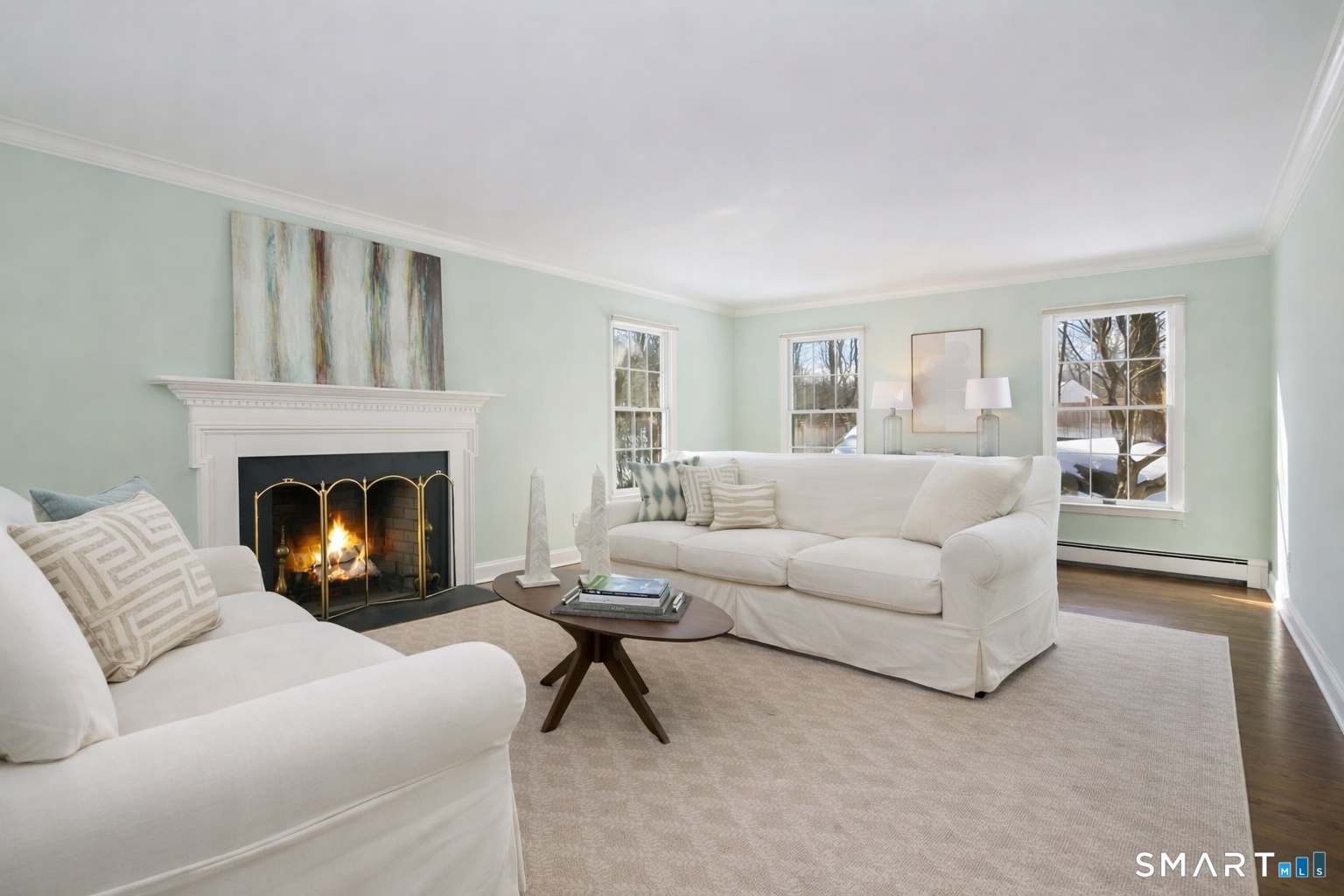 Ideally situated in southern Wilton near the New Canaan border, this beautifully appointed four-bedroom, 2. 5-bath Colonial with a heated gunite pool pairs a private setting with easy access to surrounding amenities. Set on 2. 6 acres along one of Wilton's most scenic roads, the property provides a peaceful and inviting setting. Sun-filled and thoughtfully designed, the main level offers an easy flow for everyday living and entertaining. A spacious 30-foot eat-in kitchen opens to the backyard and flagstone patio, creating seamless indoor-outdoor living. The vaulted great room features exposed wood beams, a fireplace, and custom built-ins, and opens through French doors to a charming wood-paneled sunroom with sliding windows and doors, and a herringbone tile floor. Additional highlights include a formal dining room with detailed wood paneling and bay window, a living room with a wood-burning fireplace, and a private upper level retreat over the garage with new carpeting. Outside, enjoy a private in-ground pool and a stone patio ideal for entertaining. An unfinished basement with high ceilings offers excellent expansion potential. Freshly painted with recent updates, newer mechanicals, and a generator, this home offers the very best of Wilton living. Refrigerator in basement to remain