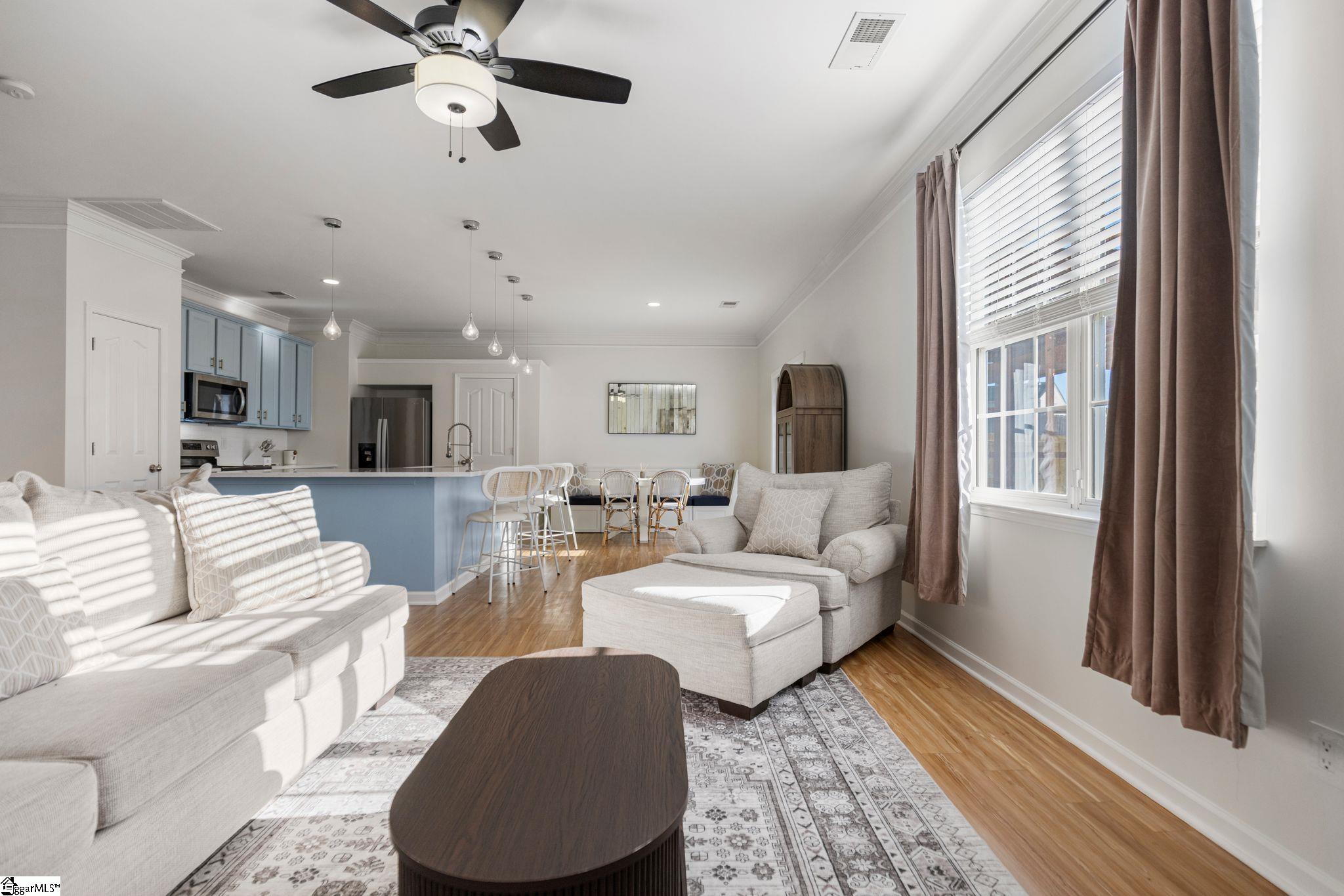 Beautifully updated and truly move-in ready, this Simpsonville home offers the upgrades buyers want without the renovation headaches. Major improvements completed since August 2025 include a brand-new water heater, newly installed privacy fence, and over 800 square feet of fresh sod, adding both functionality and immediate curb appeal. Inside, the entire home has been freshly painted from ceilings to trim, creating a clean, cohesive feel throughout. Two full bathrooms have been fully remodeled with brand new vanities, custom mirrors, new flooring, updated lighting, plumbing fixtures, hardware, near-silent fans, and refinished tubs and showers. The half bath has also been refreshed with new fixtures and paint. The kitchen has been tastefully updated with repainted cabinetry, repairs, and new hardware, while the laundry room has been completely remodeled with new flooring, shelving, custom paint, and modern lighting. Additional interior improvements include all new push-style outlets and switches, new door hardware throughout, custom accent wall loft paint, a new bedroom light and fan, plus professionally stretched and cleaned carpet. Key systems have been addressed for added confidence, including a recently serviced HVAC system and the newly installed water heater. The exterior has been fully refreshed with professional pressure washing of the home, driveway, and sidewalks, freshly painted exterior doors, new shutter paint, accent trim paint, pergola repairs and stain, and all-new landscaping with fresh bushes and mulch. Located in the desirable Simpsonville area just minutes from downtown Simpsonville and Fountain Inn, this home offers convenient access to shopping, dining, and everyday essentials while maintaining a quiet neighborhood setting. Well-maintained, thoughtfully updated, and ready for its next owner — this is a smart move in today’s market.