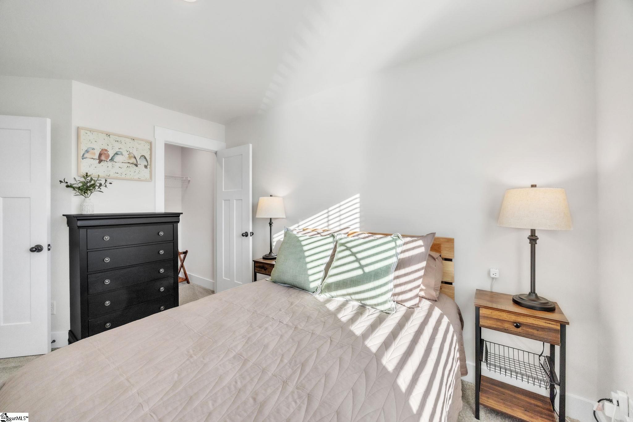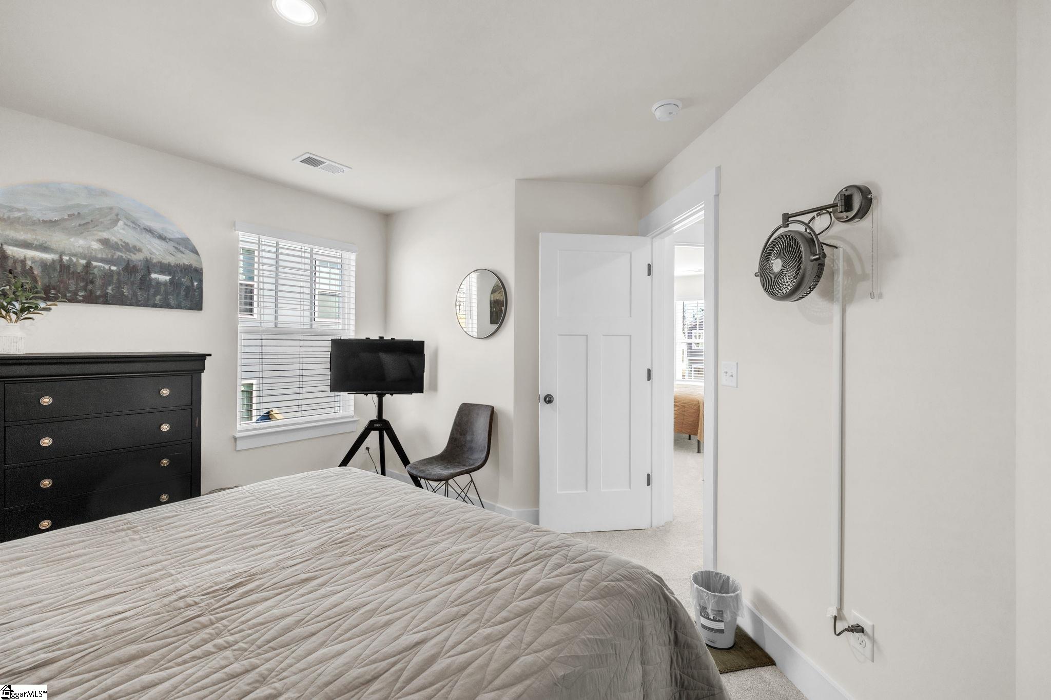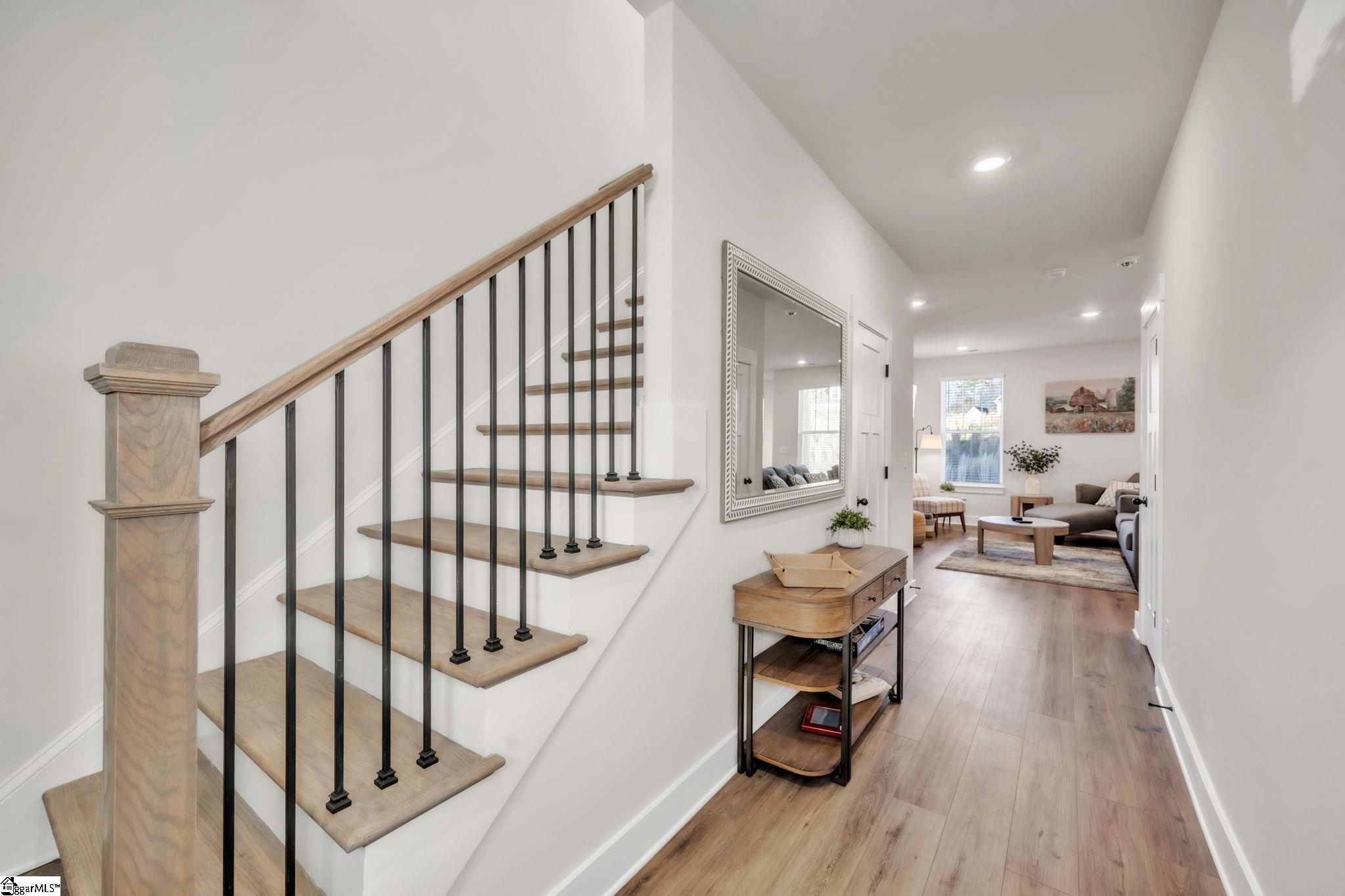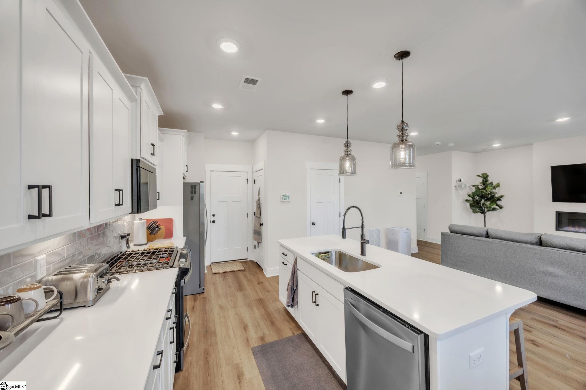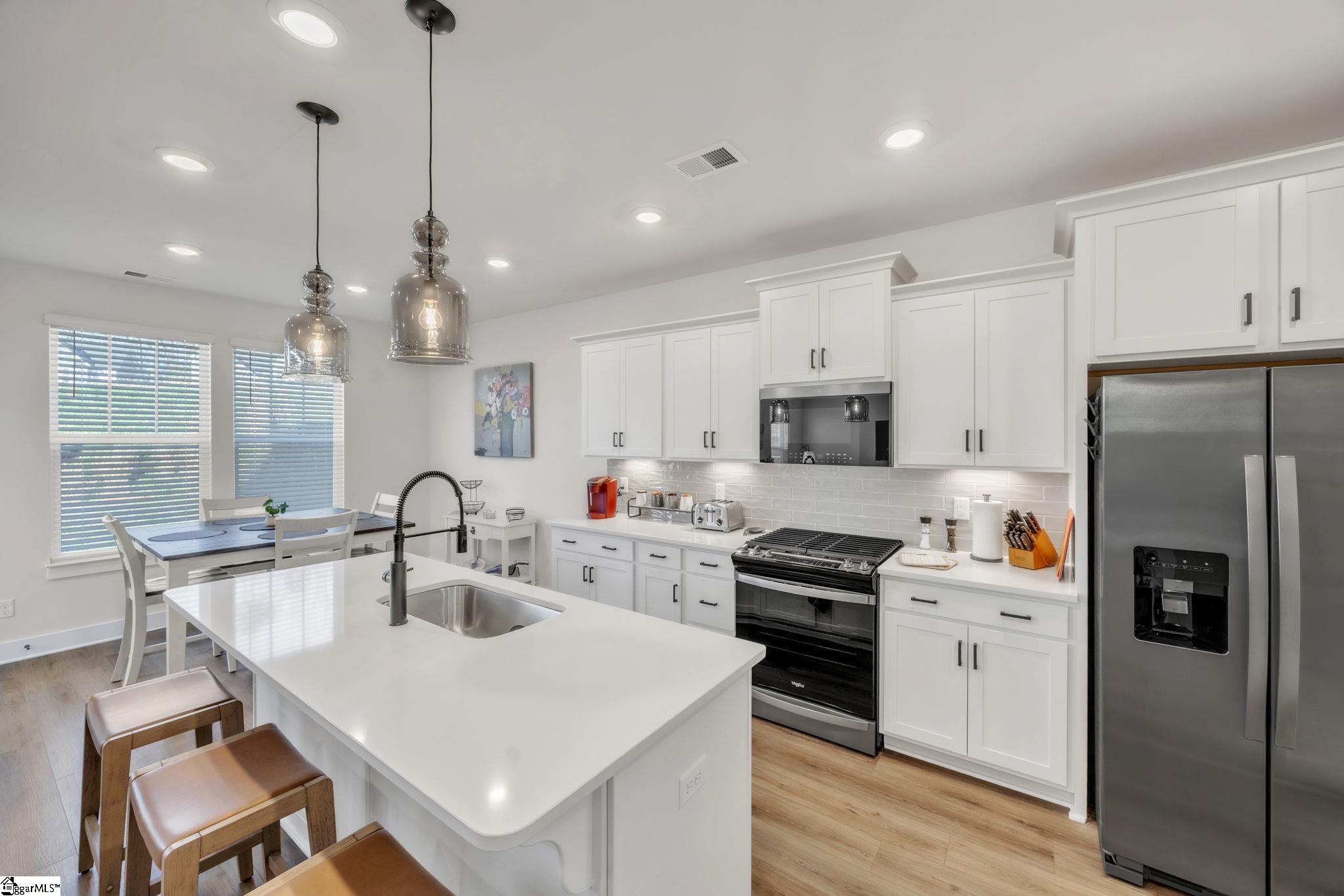 Looking for a newer home in Upstate South Carolina near BMW and the Inland Port? This 3-bedroom, 2. 5-bath home in Moore, SC was built in 2024 and combines modern finishes, open-concept living, and a quiet cul-de-sac setting in the Pleasant Falls community. The main level features an open-concept layout with durable luxury vinyl plank flooring, a powder room, two coat closets, and spacious living and dining areas that connect seamlessly with the kitchen. The kitchen includes white shaker cabinetry, quartz countertops, subway tile backsplash, stainless steel appliances, a walk-in pantry, and a large center island with seating and pendant lighting overlooking the great room. A contemporary fireplace creates a comfortable focal point with both flame ambiance and heater settings. Upstairs, the primary suite includes a Roman-style shower, private water closet, and a spacious walk-in closet. A versatile loft provides additional flexible space for a home office, playroom, or media area. Two additional bedrooms with walk-in closets, a full bath, linen storage, and convenient upstairs laundry complete the second floor. The home is wired with exterior cameras and a security system, and each bathroom includes makeup mirrors for added functionality. Outside, the shaded back patio is well suited for outdoor dining, and the backyard provides space to expand outdoor living. The extra-long driveway and two-car garage add everyday convenience, while durable Hardie siding enhances curb appeal. Located in Moore, South Carolina in Spartanburg County, Pleasant Falls provides convenient access to I-26 and I-85, making commuting to Spartanburg, Greenville, and major employers like BMW Manufacturing, Keurig Dr Pepper, and the Inland Port highly accessible. Buyers relocating to Upstate South Carolina or searching for homes for sale in Moore SC will appreciate the combination of newer construction, modern design, and a growing location.