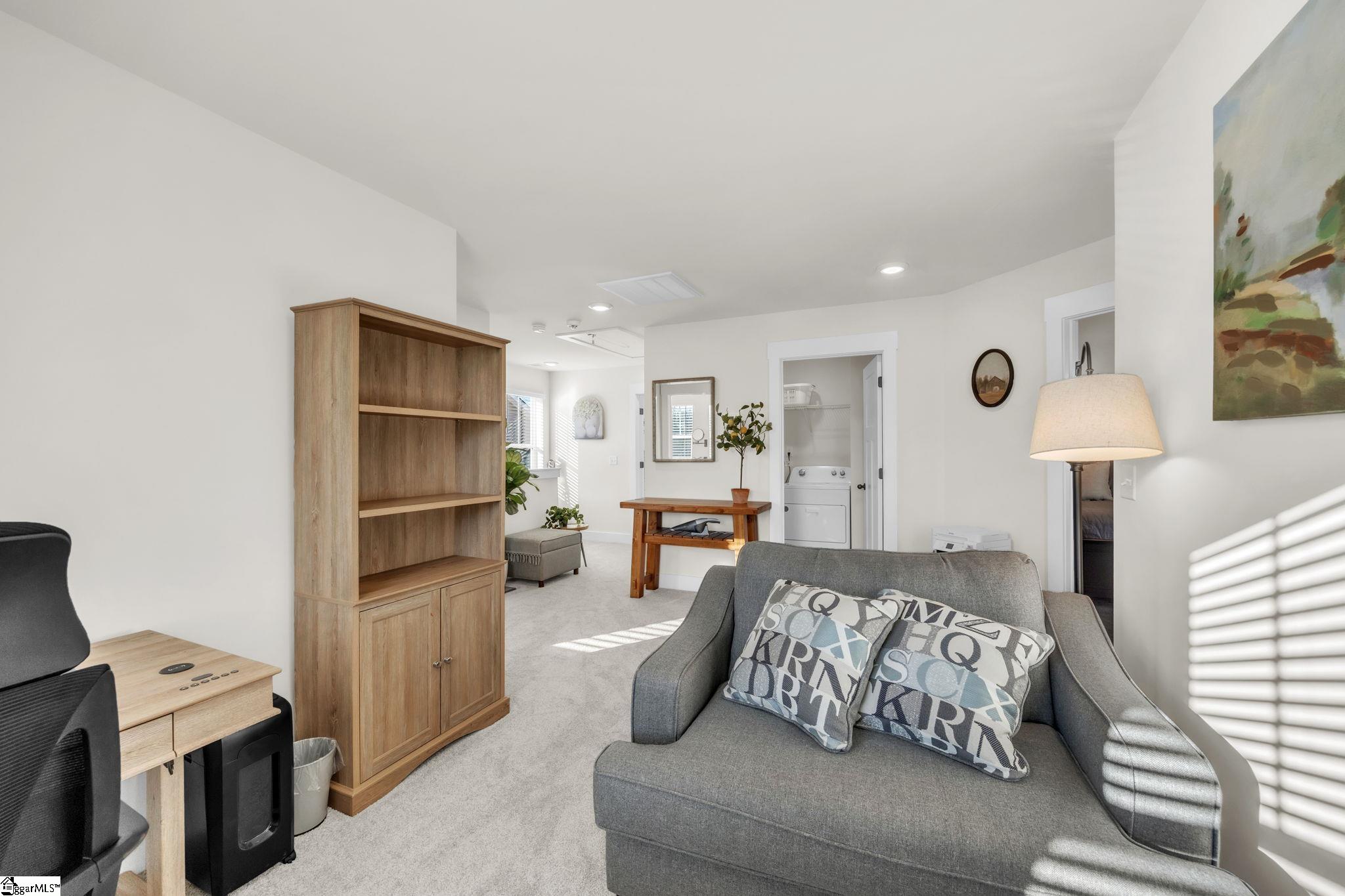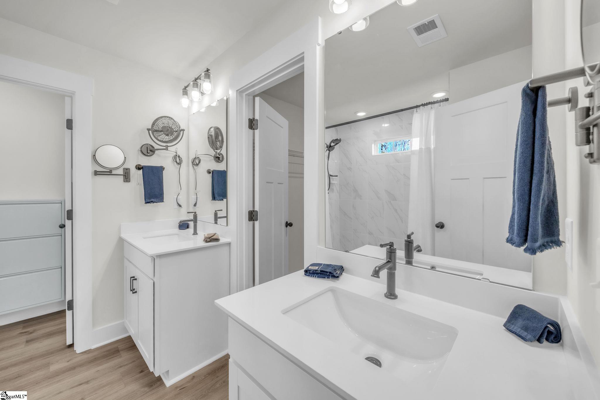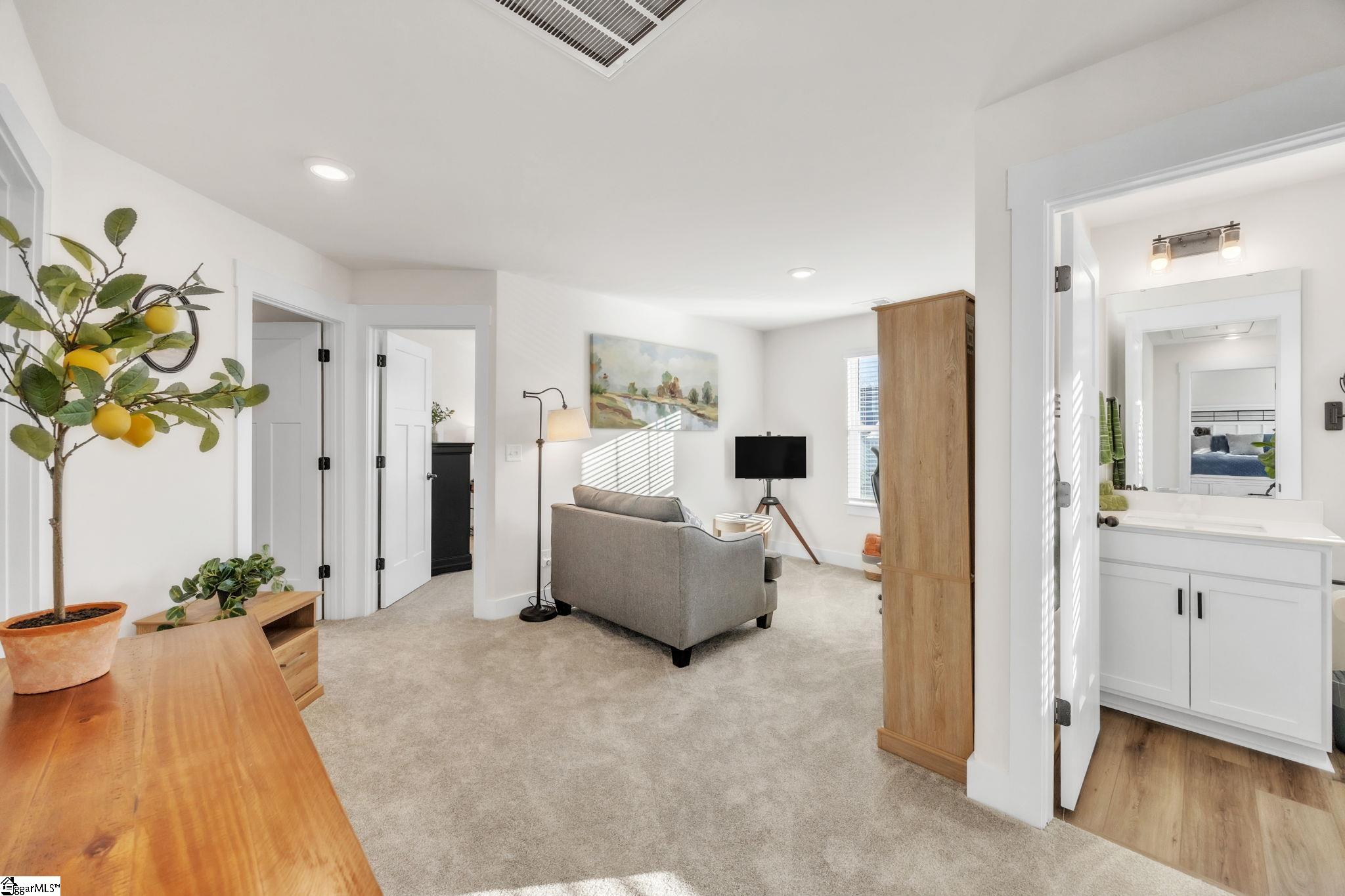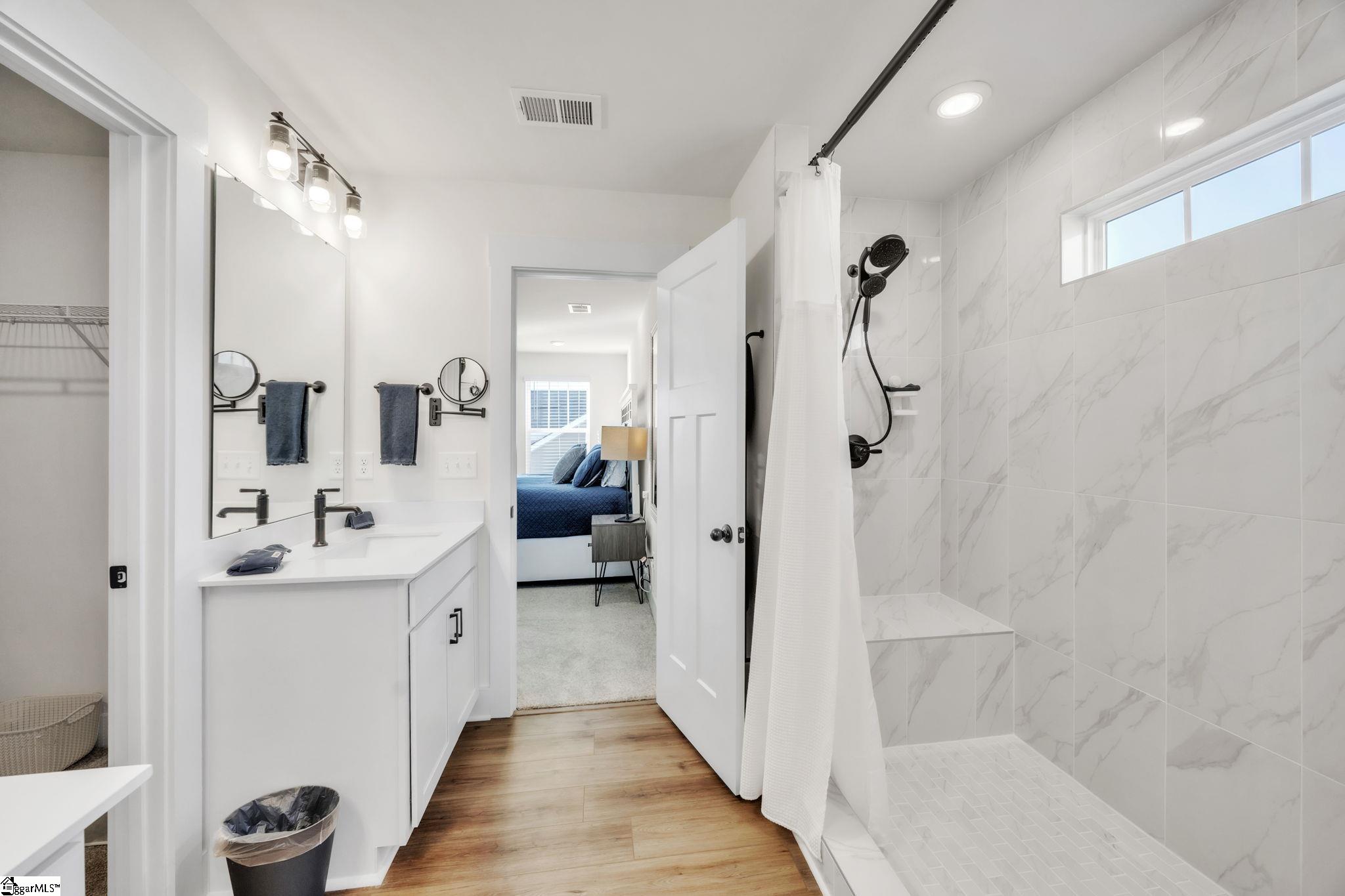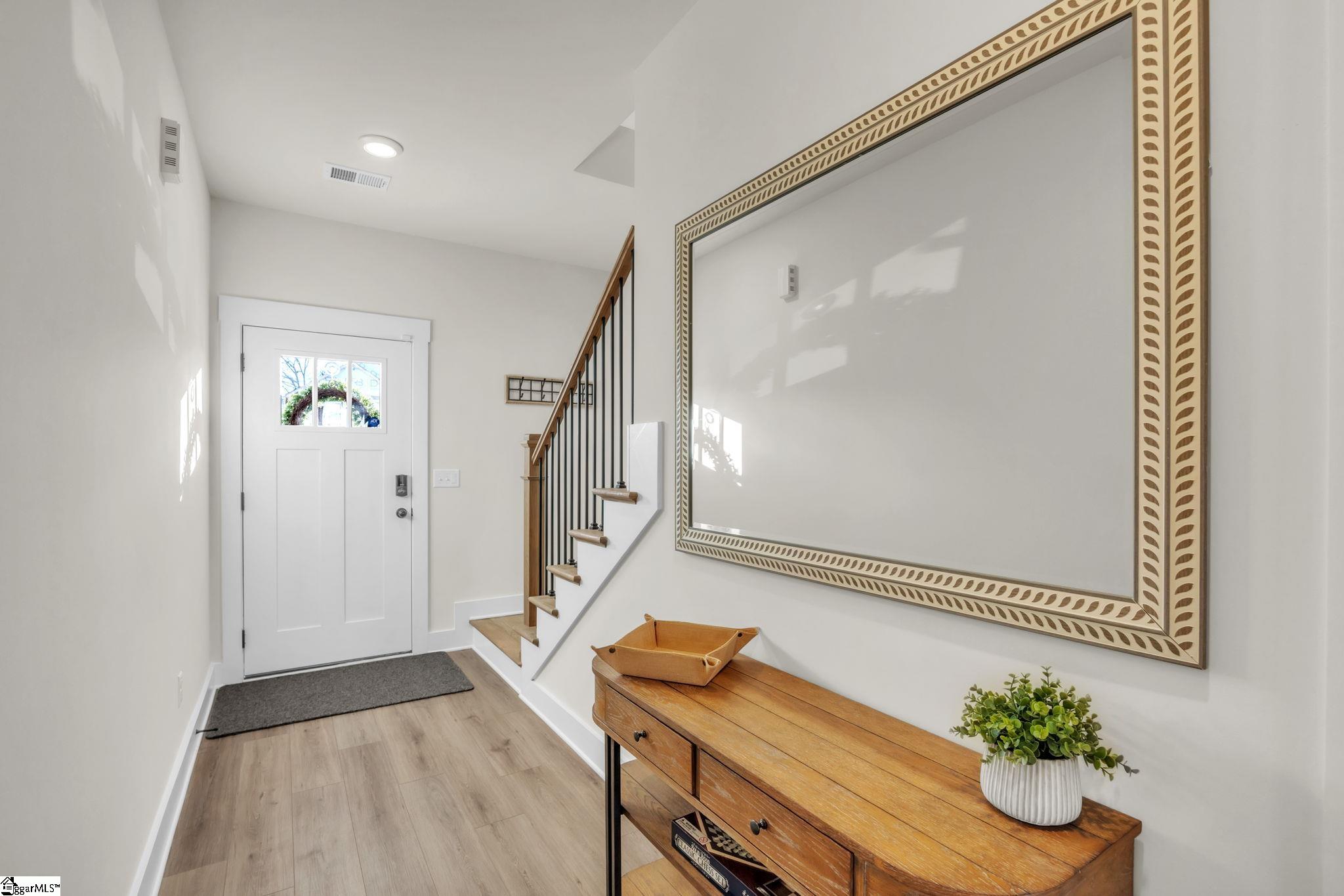 Looking for a newer home in Upstate South Carolina near BMW and the Inland Port? This 3-bedroom, 2. 5-bath home in Moore, SC was built in 2024 and combines modern finishes, open-concept living, and a quiet cul-de-sac setting in the Pleasant Falls community. The main level features an open-concept layout with durable luxury vinyl plank flooring, a powder room, two coat closets, and spacious living and dining areas that connect seamlessly with the kitchen. The kitchen includes white shaker cabinetry, quartz countertops, subway tile backsplash, stainless steel appliances, a walk-in pantry, and a large center island with seating and pendant lighting overlooking the great room. A contemporary fireplace creates a comfortable focal point with both flame ambiance and heater settings. Upstairs, the primary suite includes a Roman-style shower, private water closet, and a spacious walk-in closet. A versatile loft provides additional flexible space for a home office, playroom, or media area. Two additional bedrooms with walk-in closets, a full bath, linen storage, and convenient upstairs laundry complete the second floor. The home is wired with exterior cameras and a security system, and each bathroom includes makeup mirrors for added functionality. Outside, the shaded back patio is well suited for outdoor dining, and the backyard provides space to expand outdoor living. The extra-long driveway and two-car garage add everyday convenience, while durable Hardie siding enhances curb appeal. Located in Moore, South Carolina in Spartanburg County, Pleasant Falls provides convenient access to I-26 and I-85, making commuting to Spartanburg, Greenville, and major employers like BMW Manufacturing, Keurig Dr Pepper, and the Inland Port highly accessible. Buyers relocating to Upstate South Carolina or searching for homes for sale in Moore SC will appreciate the combination of newer construction, modern design, and a growing location.