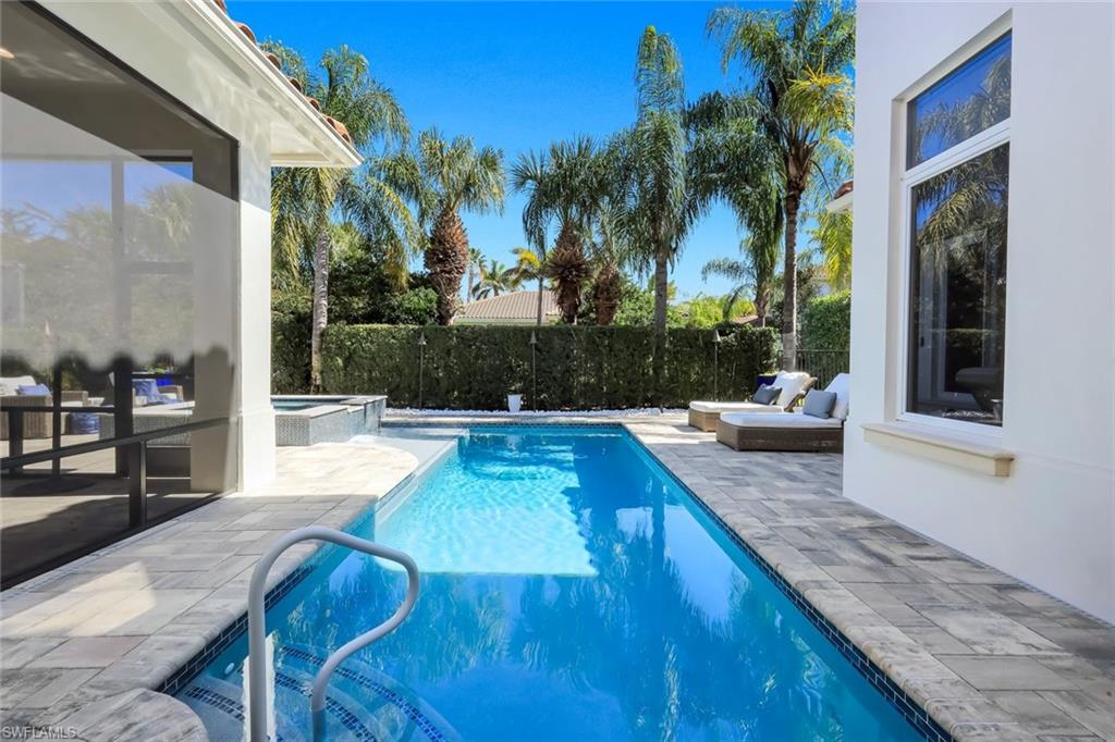 Outdoors, the private screened lanai serves as a true resort-style sanctuary. Enjoy tranquil sunrises and the soothing sound of a landscaped waterfall, all surrounding a newly refinished pool, spa, and pool deck—thoughtfully updated to create an elevated entertaining experience.