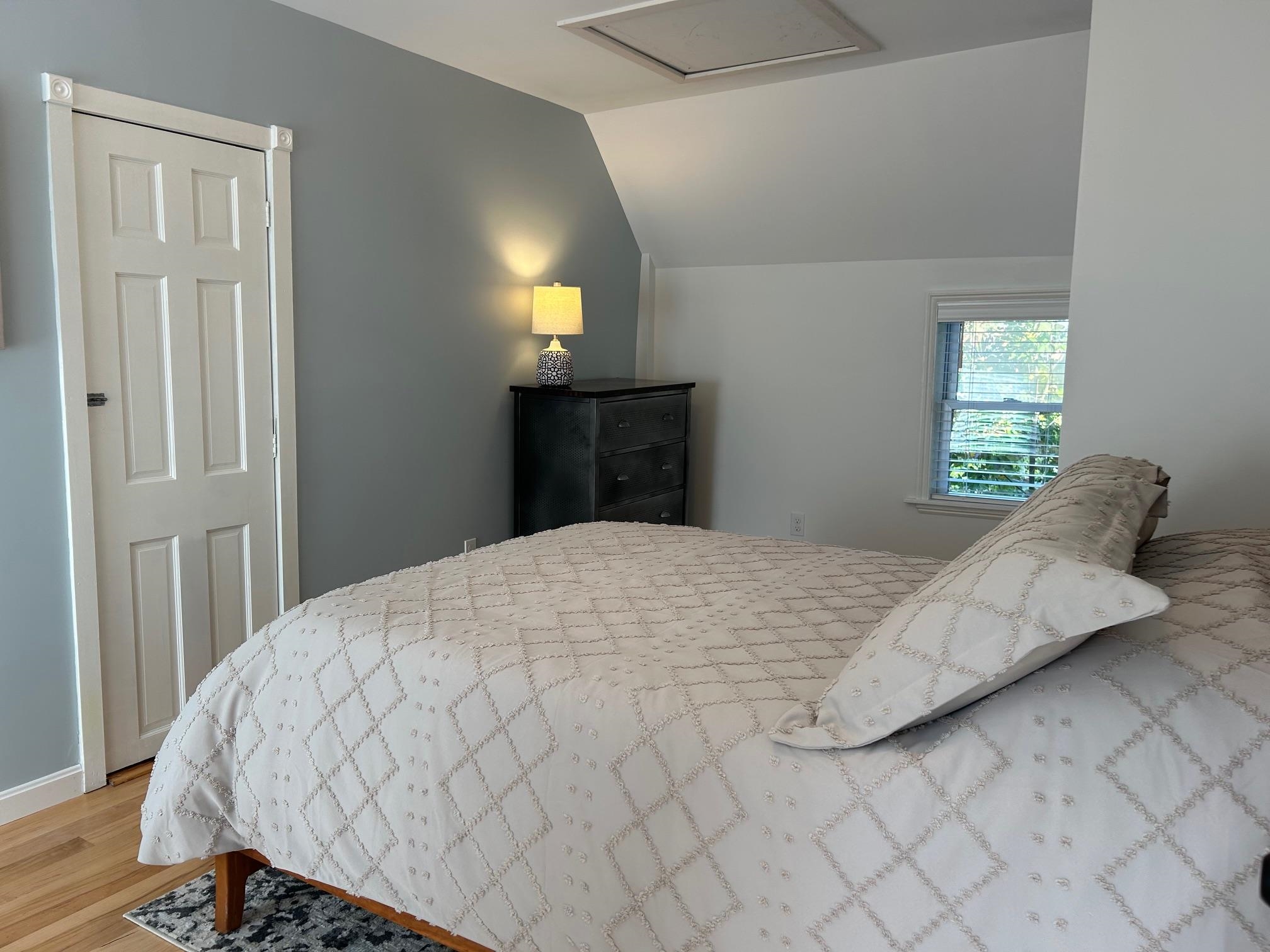 Downtown Dover renovated apartment with private entrance! This second-floor unit offers an open-concept kitchen and living area featuring quartz countertops and maple hardwood floors. Spacious primary bedroom includes a large walk-in closet and reading nook. Fully remodeled throughout with an efficient on-demand heat and hot water system. In-unit laundry. Private shared backyard. Off-street parking for two small cars plus additional street parking. Available furnished as shown. Tenant responsible for heat, electric, cable/Wi-Fi, and snow removal. Landlord covers water/sewer and lawn care. No pets, no smoking. One-year lease required. Credit, background, and income verification required. $49 Application Fee.