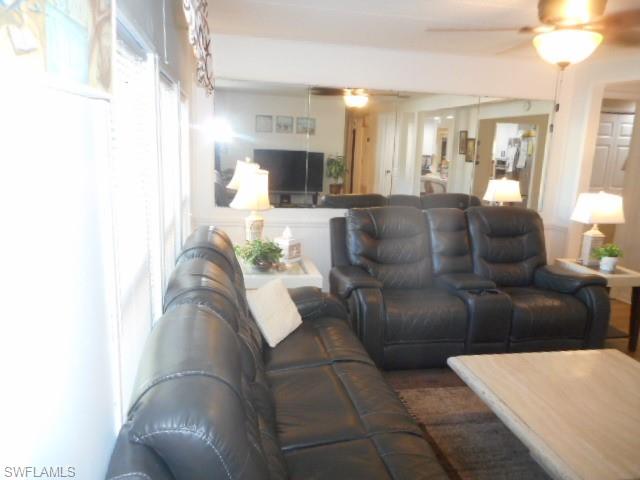 Experience the ultimate in coastal living and be apart of OBV's vibrant social scene. This 55 plus community is situated on the banks of the Caloosahatchee. Available until the end of December 2025. This manufactured home is located on a double lot; it's a 2-bedroom, 2-bathroom, 1, 750 sq ft property that offers unrivaled privacy and is tastefully furnished. Enjoy the charming fully enclosed lanai, a four season Florida room, and a cozy front yard outdoor porch perfect for relaxing amongst the palms. Recent upgrades include new flooring, a new kitchen, 2 newer bathrooms & a new central A/C unit for ultimate comfort. Plus, there's in house laundry, an office, a workshop and plenty of parking. This gated community features a clubhouse, fitness center, tennis & pickleball courts, and your steps away from an all new pool & hot tub area along banks of our deep-water marina. This 9 month rental is perfect for those seeking a tranquil retreat with access to premier amenities!