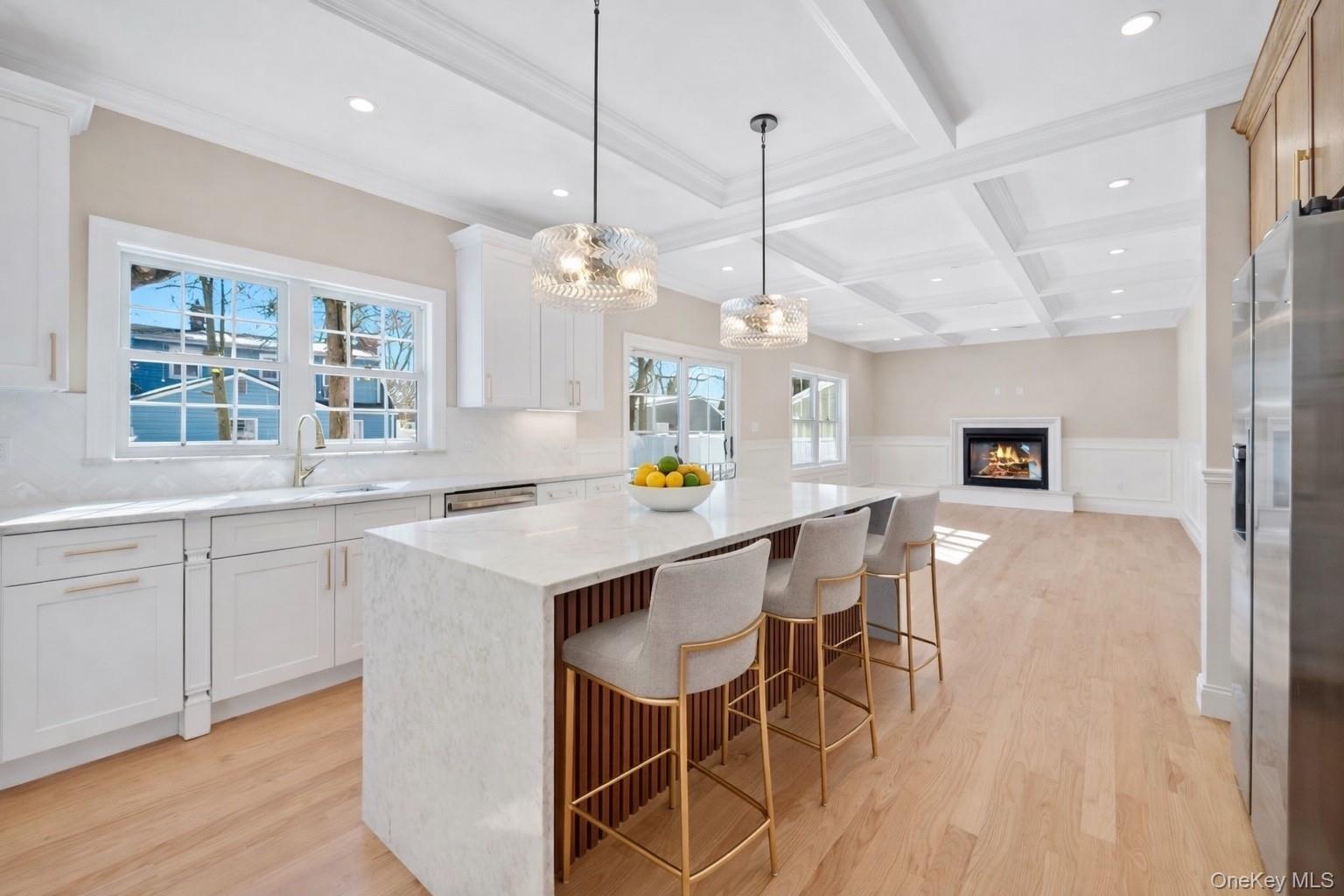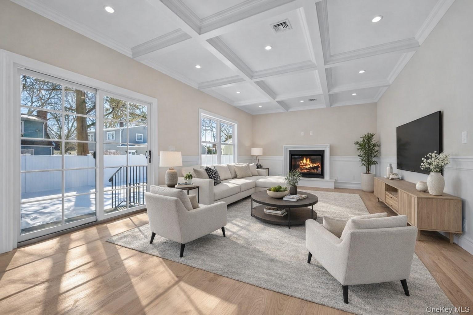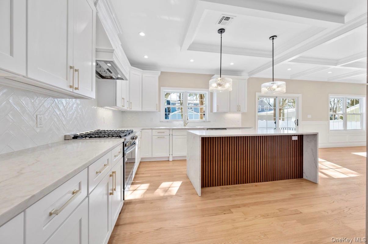 Welcome to this exceptional new construction nestled in the heart of Carle Place. This stunning 5-bedroom, 4-bath home offers over 4, 200 square feet of beautifully designed living space in one of Nassau County’s most desirable neighborhoods. Crafted with outstanding craftsmanship, this home features a dramatic custom staircase, coffered ceilings, extensive custom millwork, crown molding, oversized baseboards, and solid-core interior doors adorned with designer hardware. The chef’s kitchen is a culinary masterpiece, boasting custom cabinetry, quartz countertops, an oversized center island, premium appliances, and designer finishes. It seamlessly flows into a sun-filled family room with slider doors and a gas fireplace. The second level showcases elegant herringbone-pattern hardwood floors. Four spacious bedrooms await, including a luxurious primary suite with expansive walk-in closets and a spa-inspired bath. A fully finished basement provides additional space, perfect for a theater, gym, guest suite, or recreation area. Conveniently located near top-rated schools, the LIRR, shopping, and major parkways, this home offers the perfect blend of comfort, style, and convenience.