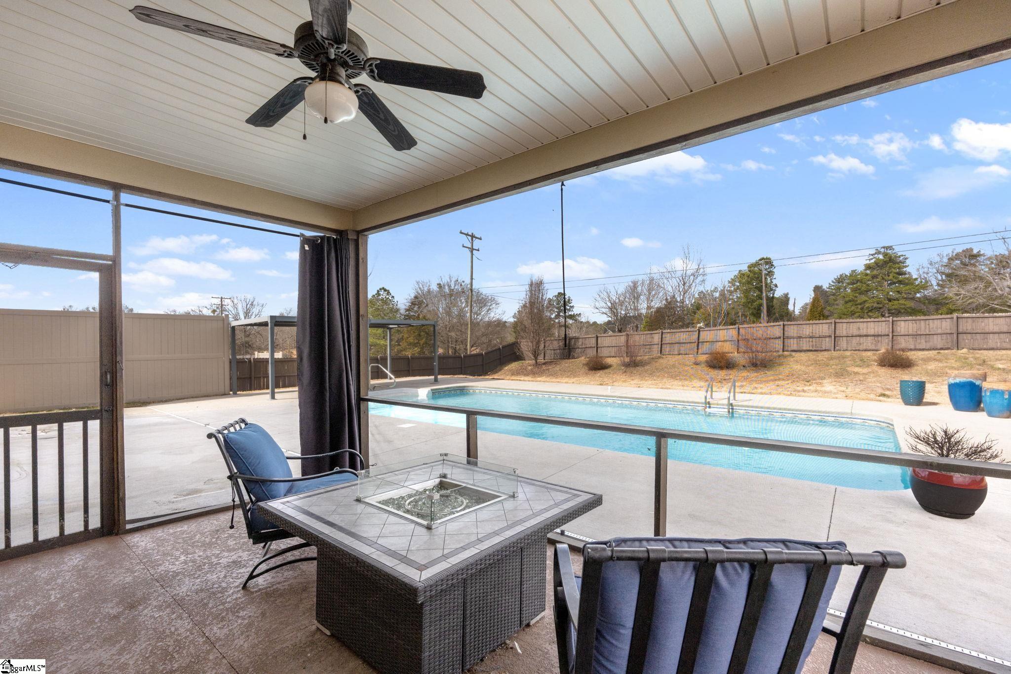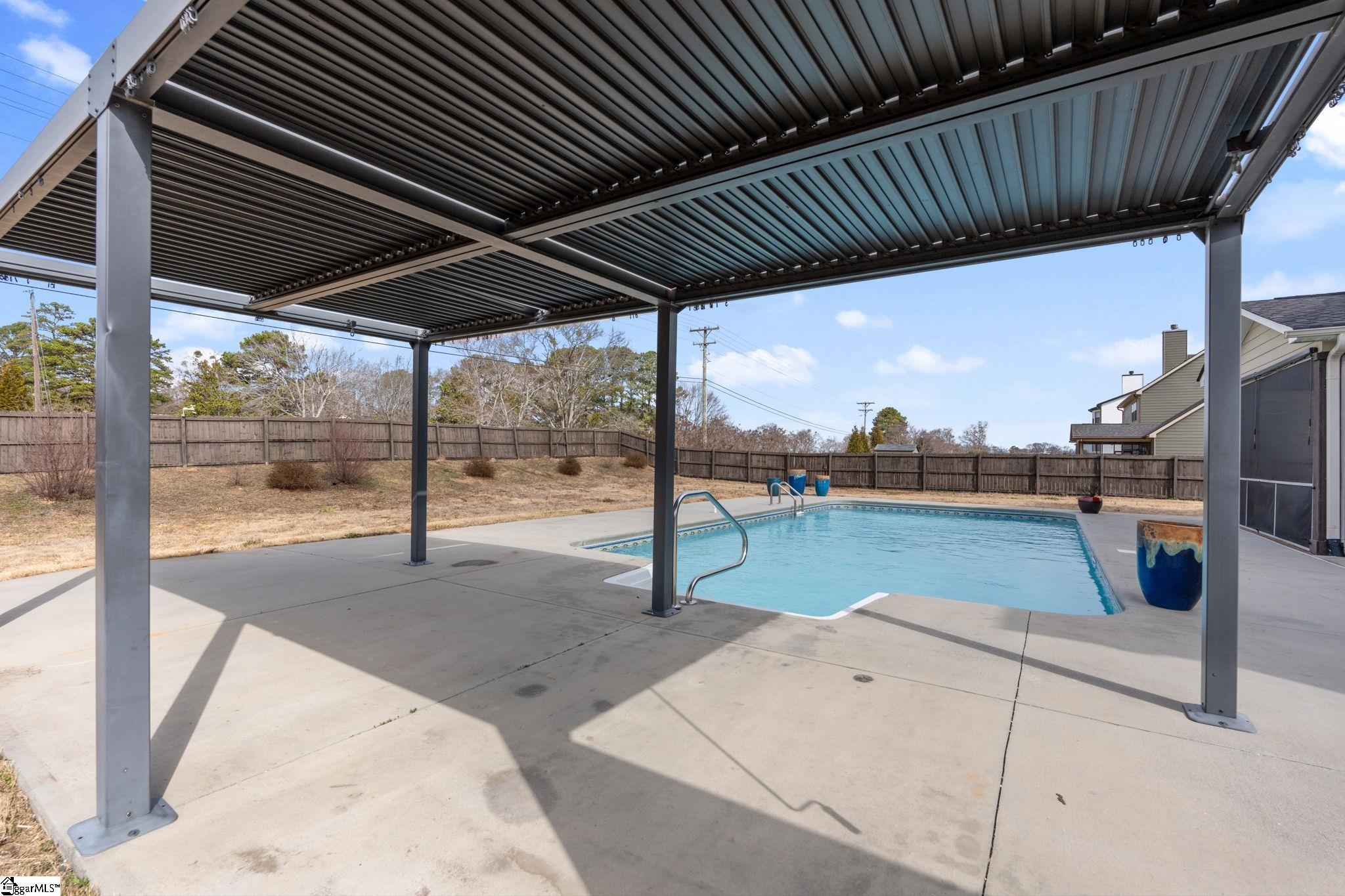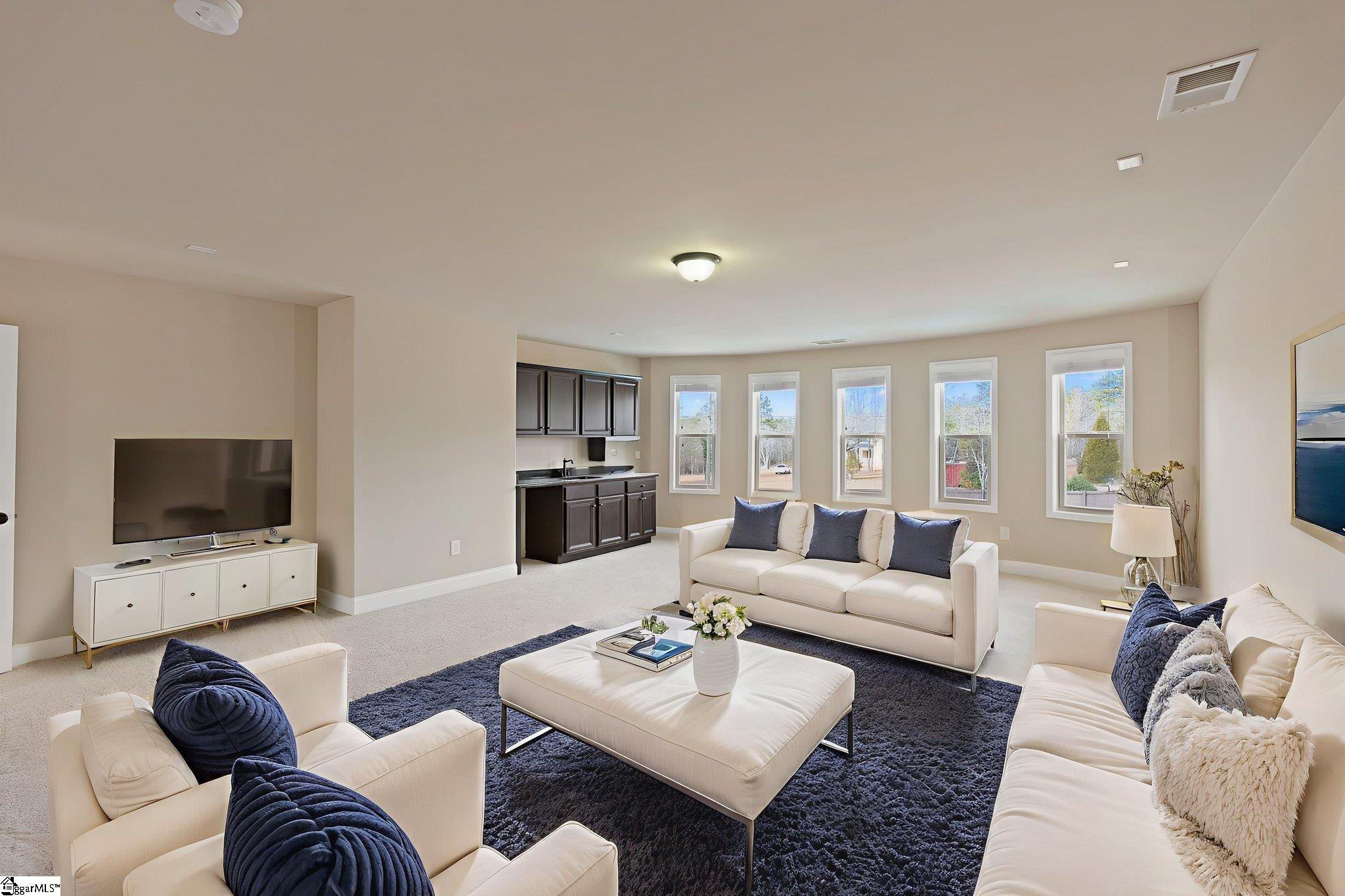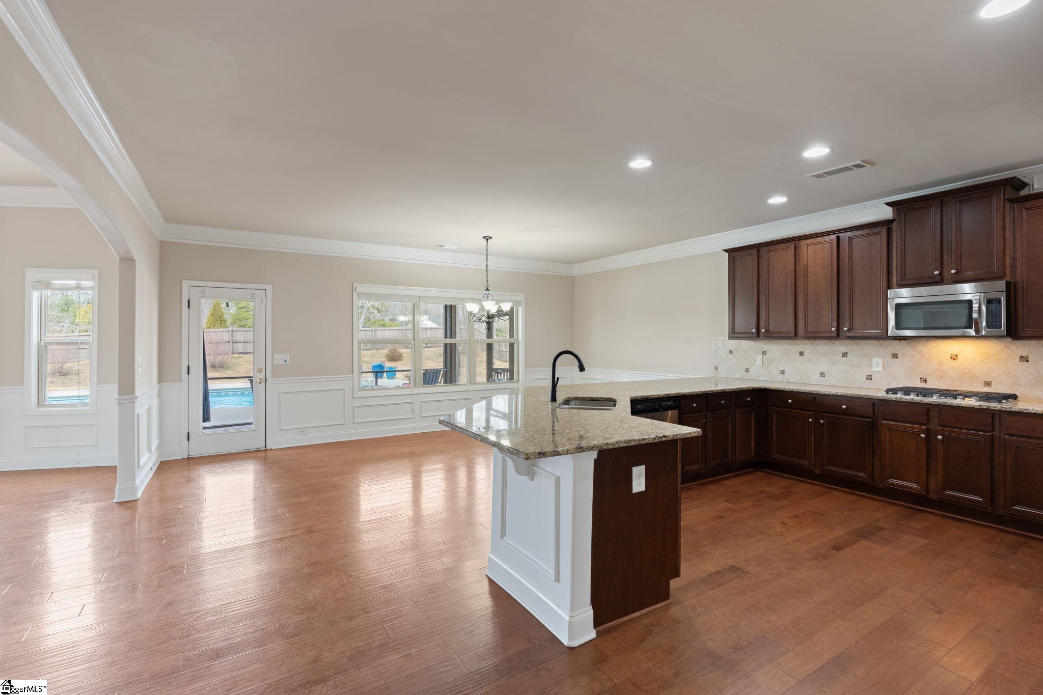 Move-in ready home in the heart of Simpsonville offering 4 bedrooms, 3 bathrooms, and just over 4, 000 square feet of bright, well-designed living space. New carpet and some interior/exterior painting throughout enhance the open and inviting layout. Professionally installed REME-HALO Air Purification System installed 3/20 in both units. A two-story foyer welcomes you into the main level, featuring a modern kitchen with high-quality appliances that convey with the home, ample cabinetry, a breakfast bar, and a natural gas cooktop. A formal dining area sits just off the kitchen, perfect for entertaining. The cozy living room includes a warm, wood-burning fireplace, and a main-level bedroom provides flexible use as a guest room, office, or playroom. Upstairs offers spacious bedrooms, including a luxurious primary suite with soaking tub, separate shower, and dual vanities. A sun-filled media room with a mini bar creates the perfect space for entertaining or relaxing. Enjoy outdoor living in the private backyard with a recently maintained pool and plenty of room to unwind. Located in a desirable neighborhood with excellent schools and just 6 minutes from charming downtown Simpsonville.