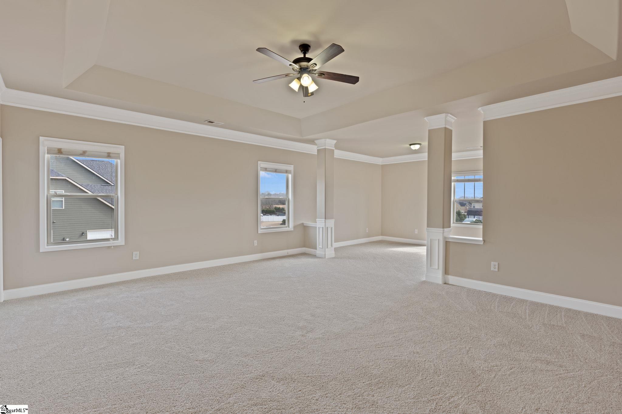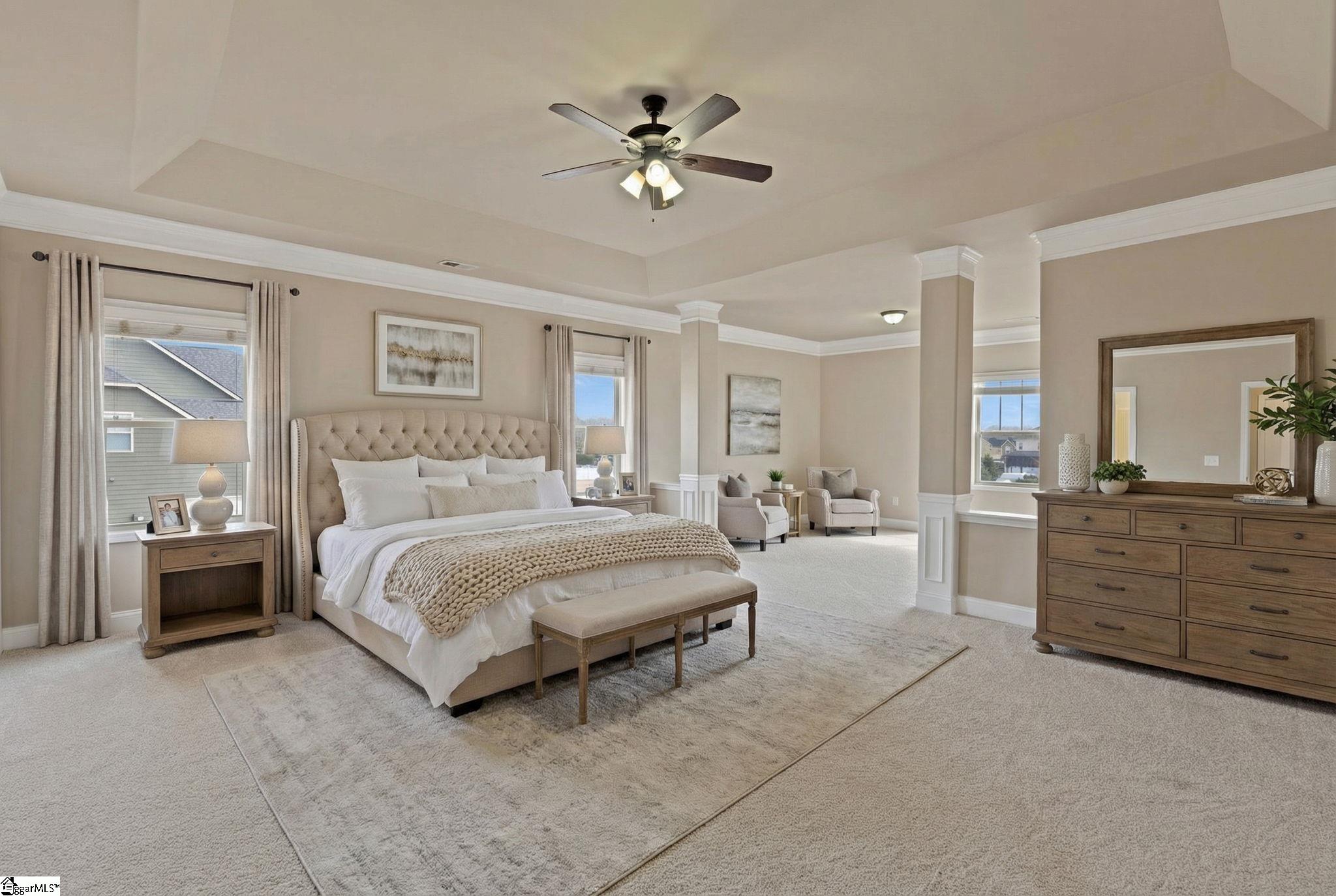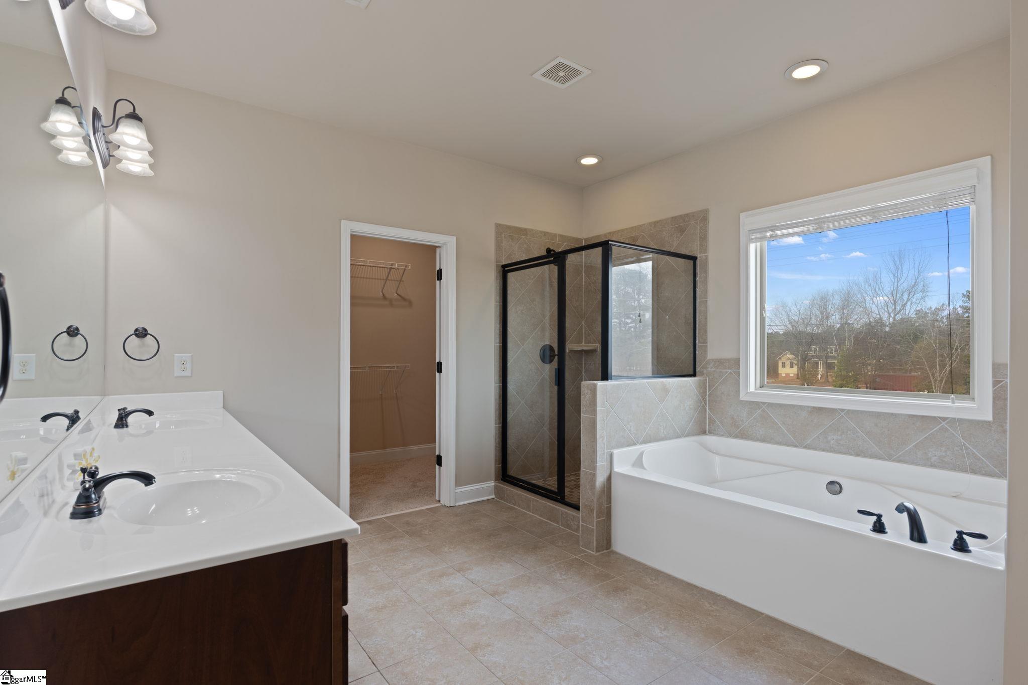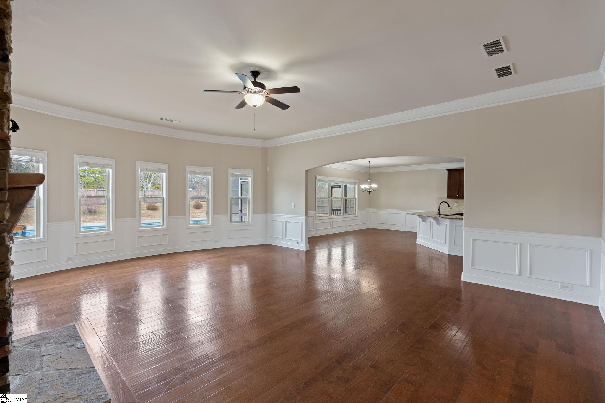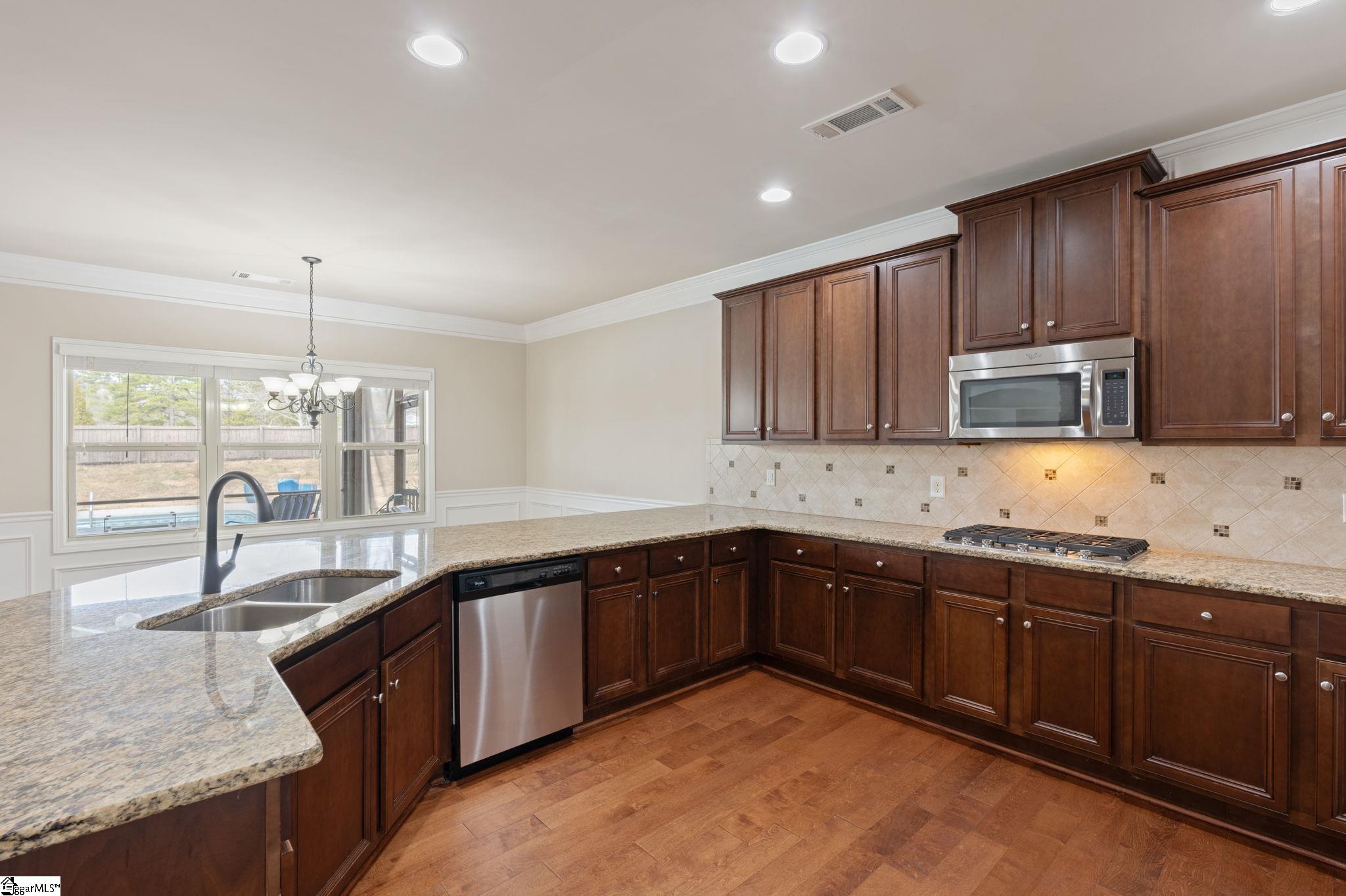 Move-in ready home in the heart of Simpsonville offering 4 bedrooms, 3 bathrooms, and just over 4, 000 square feet of bright, well-designed living space. New carpet and some interior/exterior painting throughout enhance the open and inviting layout. Professionally installed REME-HALO Air Purification System installed 3/20 in both units. A two-story foyer welcomes you into the main level, featuring a modern kitchen with high-quality appliances that convey with the home, ample cabinetry, a breakfast bar, and a natural gas cooktop. A formal dining area sits just off the kitchen, perfect for entertaining. The cozy living room includes a warm, wood-burning fireplace, and a main-level bedroom provides flexible use as a guest room, office, or playroom. Upstairs offers spacious bedrooms, including a luxurious primary suite with soaking tub, separate shower, and dual vanities. A sun-filled media room with a mini bar creates the perfect space for entertaining or relaxing. Enjoy outdoor living in the private backyard with a recently maintained pool and plenty of room to unwind. Located in a desirable neighborhood with excellent schools and just 6 minutes from charming downtown Simpsonville.