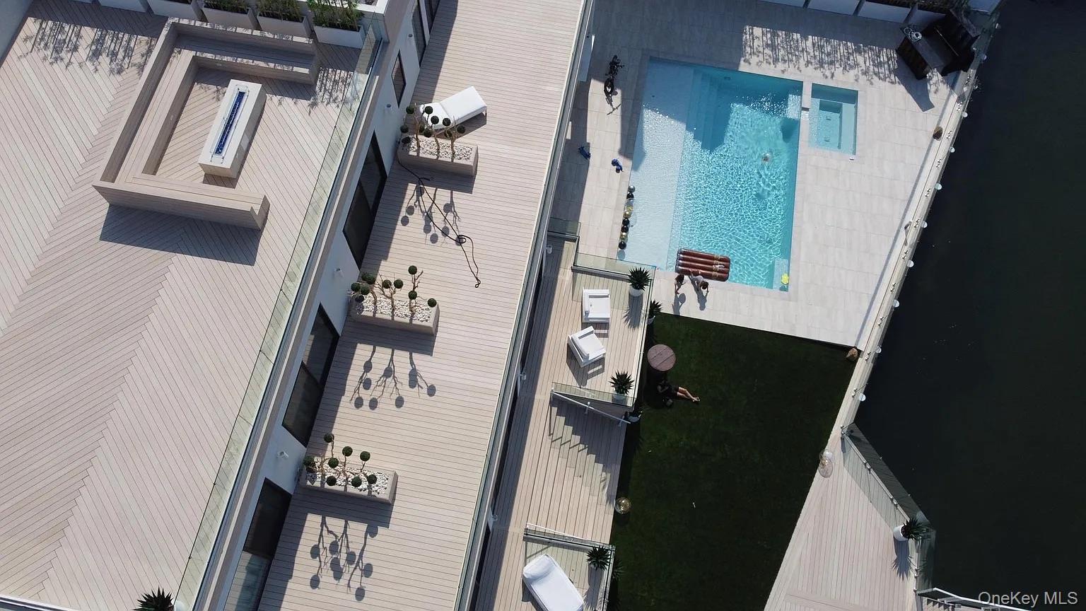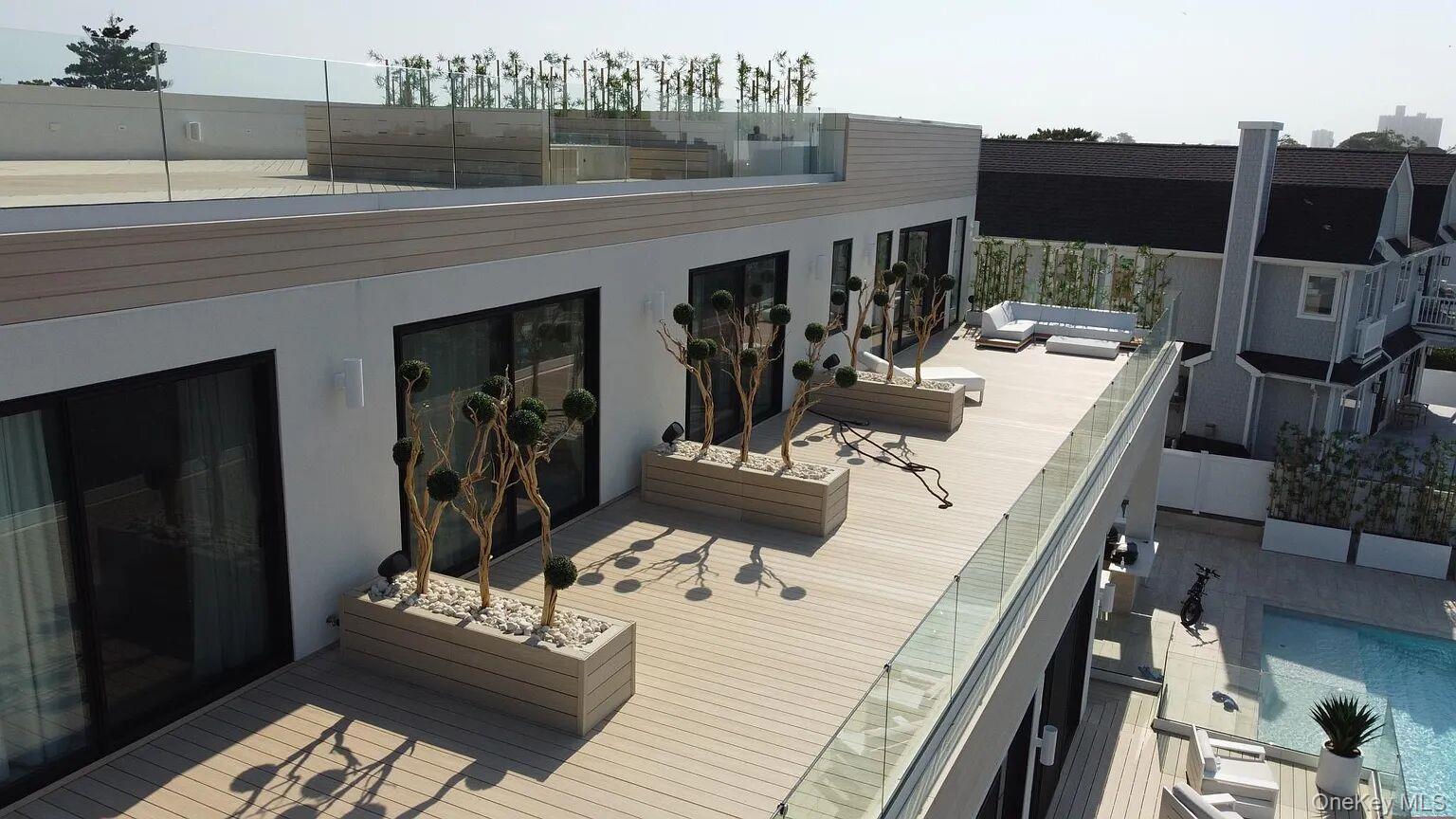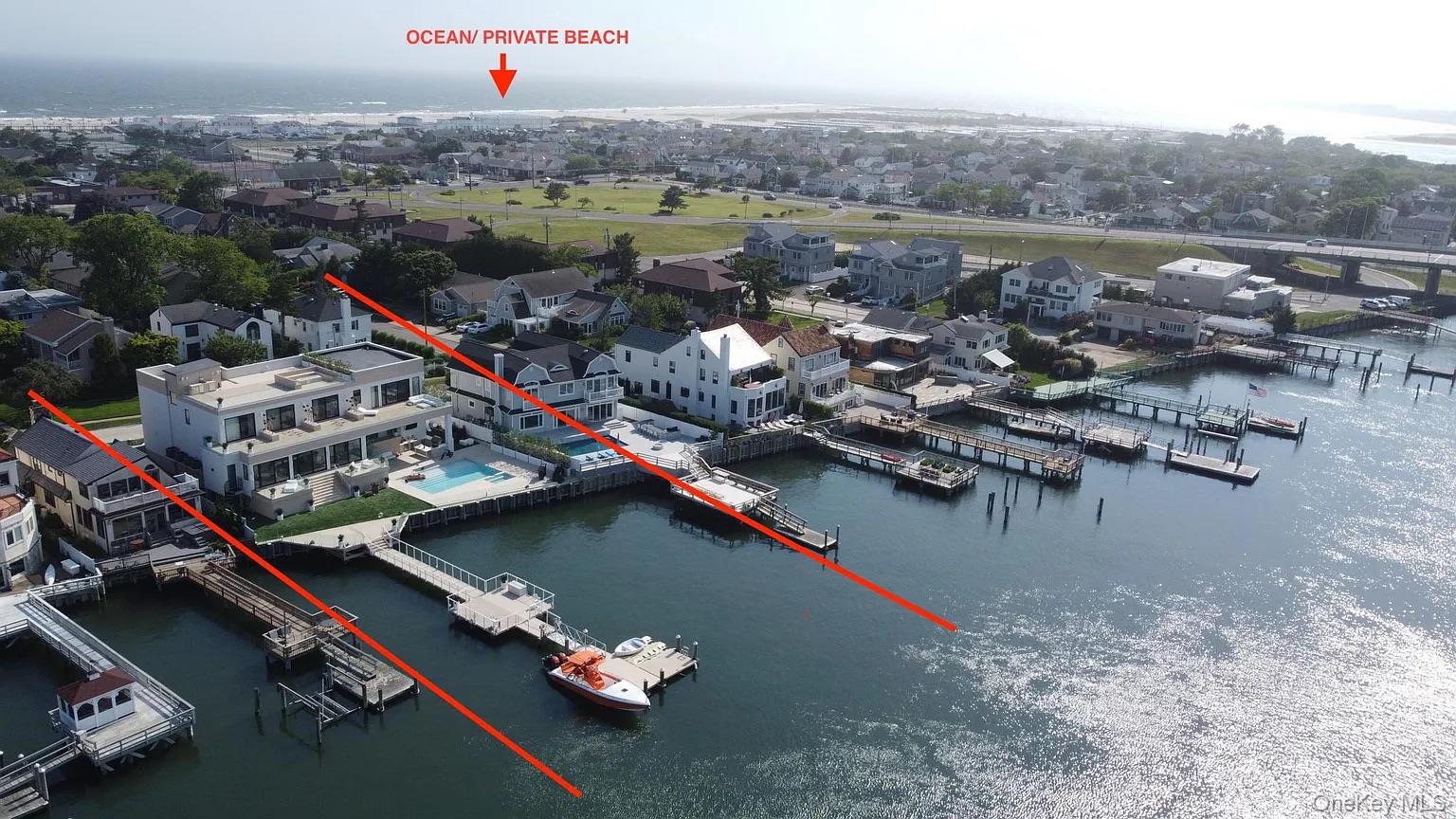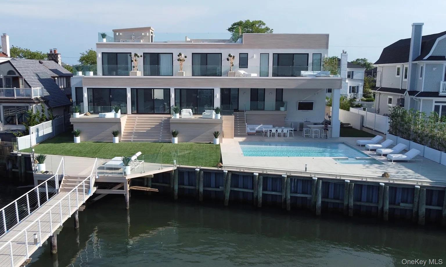 From the moment you enter, expansive water views and striking interiors set the tone for this Atlantic Beach waterfront residence. Designed with entertaining in mind, the home blends expansive indoor-outdoor living with refined, high-end finishes throughout. Situated on a 12, 000 SF lot, this home built in 2021 offers direct frontage on Reynolds Channel, ocean views from the roof deck, and a location just steps from the beach. The property features over 5, 000 SF of outdoor decking, including a 3, 000 SF rooftop deck with firepit and kitchenette. The home includes 6 bedrooms and 6. 5 bathrooms with high ceilings, radiant heat throughout approximately 8, 500 SF of tile flooring, and an open layout connecting the kitchen, living, and dining areas. Floor-to-ceiling sliding glass doors frame the water and provide seamless access to multiple outdoor spaces. A custom wet bar anchors the main living area. The kitchen is equipped with Sub-Zero and Wolf appliances, custom cabinetry, natural stone surfaces, and a center island with seating. All bedrooms feature private balconies facing Reynolds Channel. The main level also includes a media room, sauna, indoor/outdoor bath, and two decks overlooking the water. Outdoor areas include a heated pool, jacuzzi, sundeck, and low-maintenance turf. A summer kitchen with grill and smoker, outdoor TV, and sound system enhances the backyard. The private dock accommodates up to three boats with direct bay access. Additional features include two washer/dryer sets, a large crawl space for storage, a two-car garage, and a driveway accommodating up to six vehicles. Convenient access to New York City makes the property suitable as both a full-time residence and a weekend retreat.