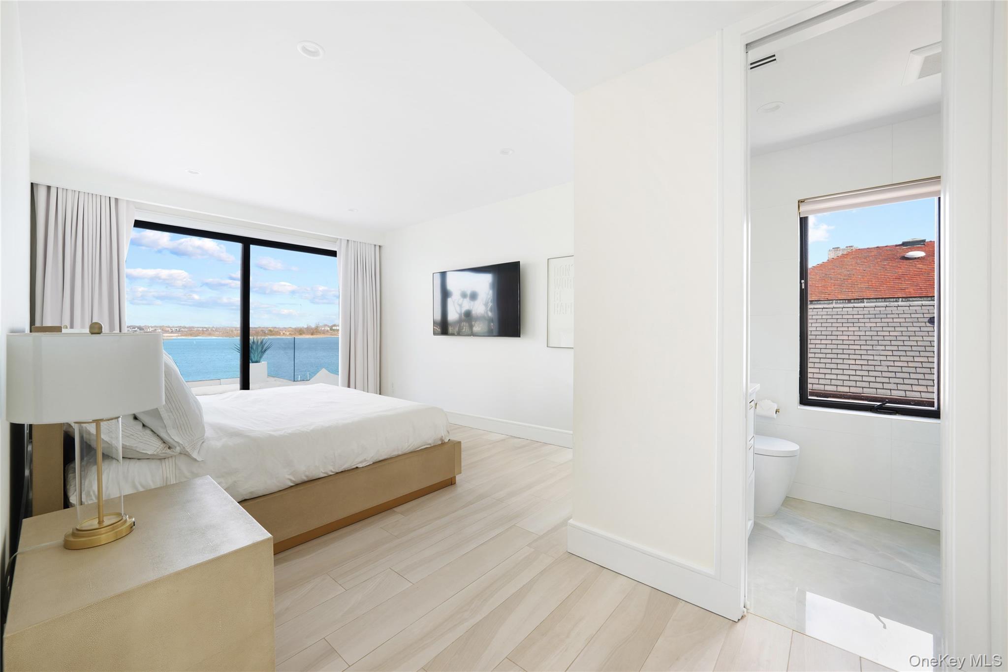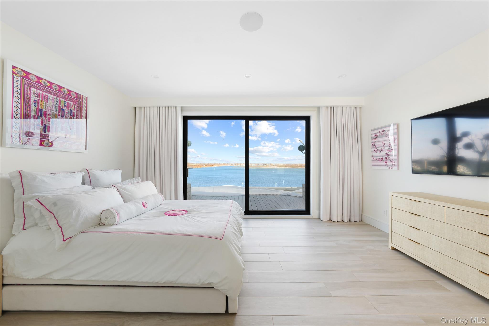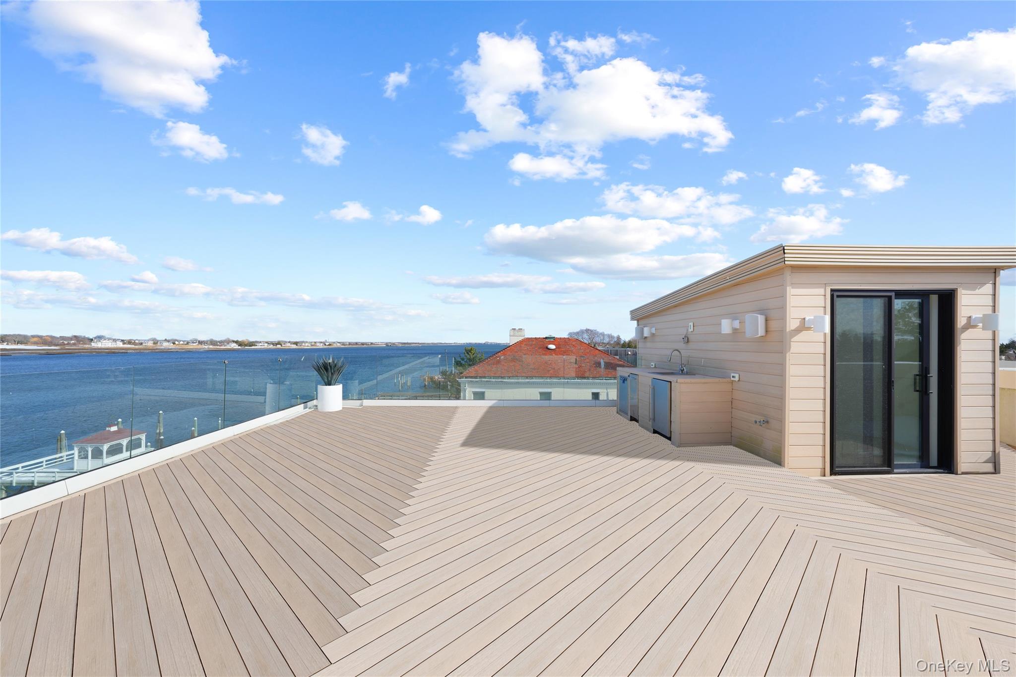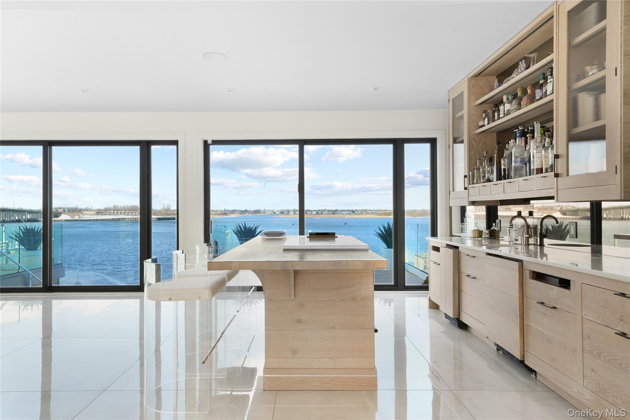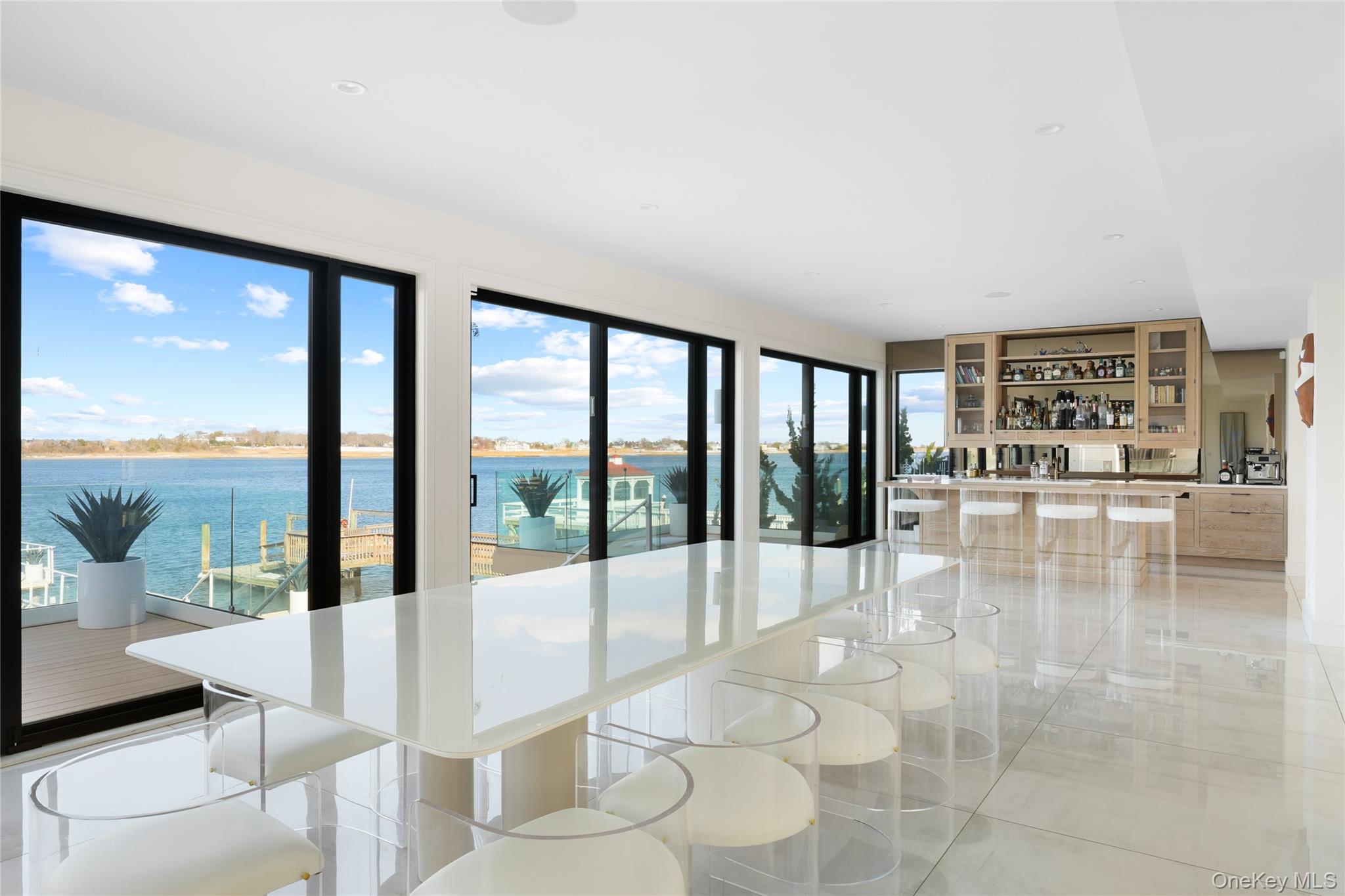 From the moment you enter, expansive water views and striking interiors set the tone for this Atlantic Beach waterfront residence. Designed with entertaining in mind, the home blends expansive indoor-outdoor living with refined, high-end finishes throughout. Situated on a 12, 000 SF lot, this home built in 2021 offers direct frontage on Reynolds Channel, ocean views from the roof deck, and a location just steps from the beach. The property features over 5, 000 SF of outdoor decking, including a 3, 000 SF rooftop deck with firepit and kitchenette. The home includes 6 bedrooms and 6. 5 bathrooms with high ceilings, radiant heat throughout approximately 8, 500 SF of tile flooring, and an open layout connecting the kitchen, living, and dining areas. Floor-to-ceiling sliding glass doors frame the water and provide seamless access to multiple outdoor spaces. A custom wet bar anchors the main living area. The kitchen is equipped with Sub-Zero and Wolf appliances, custom cabinetry, natural stone surfaces, and a center island with seating. All bedrooms feature private balconies facing Reynolds Channel. The main level also includes a media room, sauna, indoor/outdoor bath, and two decks overlooking the water. Outdoor areas include a heated pool, jacuzzi, sundeck, and low-maintenance turf. A summer kitchen with grill and smoker, outdoor TV, and sound system enhances the backyard. The private dock accommodates up to three boats with direct bay access. Additional features include two washer/dryer sets, a large crawl space for storage, a two-car garage, and a driveway accommodating up to six vehicles. Convenient access to New York City makes the property suitable as both a full-time residence and a weekend retreat.