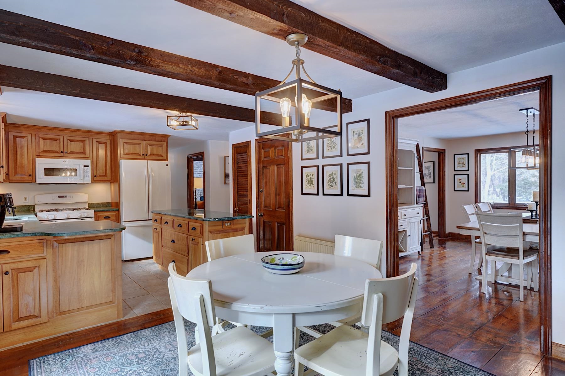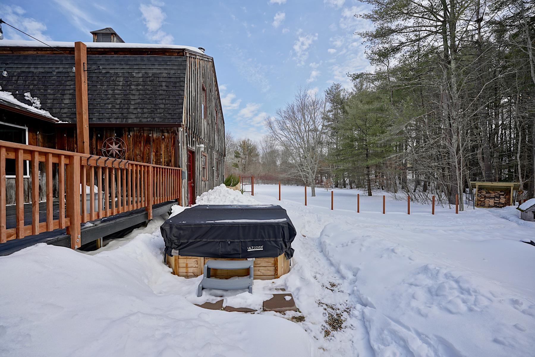 Set back from the road on over 2 acres, this 4-bedroom, 2-bath home is a wonderful balance of comfort, space, and privacy. Updates throughout provide a fresh feel while maintaining warmth and character. The home offers comfortable living spaces that flows easily for both everyday life and entertaining. A practical mudroom provides a seamless transition from the garage into the main living space, helping keep life organized through every season. Outdoor living is equally inviting. The generous back deck is ideal for morning coffee, summer dinners, or relaxing evenings in the hot tub. Lush gardens add color and charm, while the fenced yard offers a safe space for pets to roam. Backing up to the woods, the setting feels private and serene, with a fire pit area ready for gatherings with friends or quiet nights under the stars. The oversized garage/barn is a standout feature, offering ample room for vehicles, storage, hobbies, or a workshop, with bonus space above providing future potential for expansion or creative use. A partially finished basement adds valuable flexibility for many uses. With its combination of acreage, versatile spaces, and inviting outdoor areas, this property provides the opportunity that truly lets you spread out, settle in and enjoy home.
