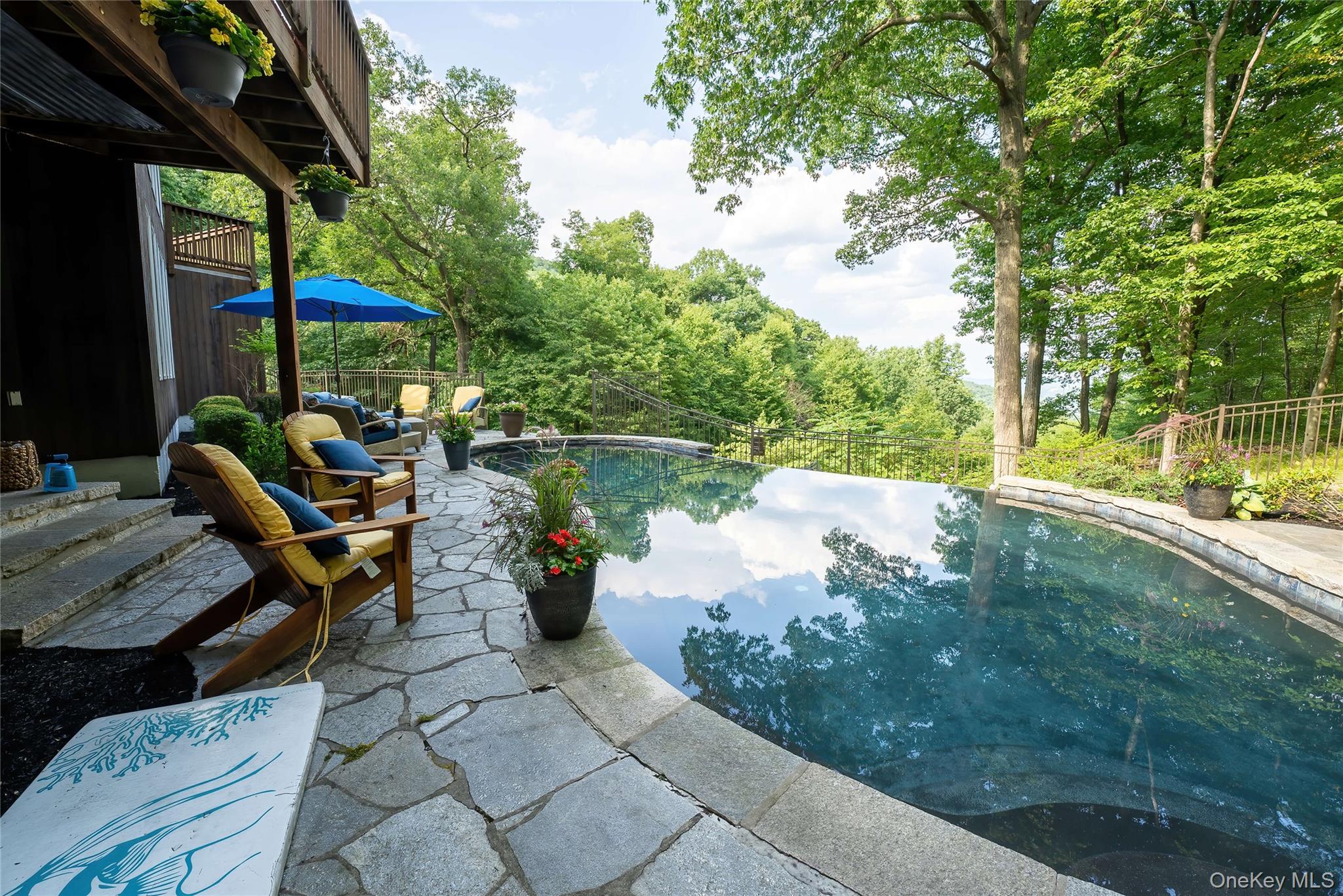 DREAMS WILL COME TRUE IN THIS STUNNING CONTEMPORARY WITH SWEEPING RIVER VIEWS SET IN A PRIVATE LAKE COMMUNITY YET AMAZINGLY CLOSE TO NEW YORK CITY Looking for a spacious, high-end daily or weekend retreat? Look no further. The dramatic architecture includes 2-story walls of windows which showcase the glorious natural setting all around you adjacent to Harriman State Park and overlooking the majestic Hudson River. A brand new eat-in kitchen with many beautiful and expensive finishes and appliances has just been completed and is a great place to prepare for and entertain guests. Large groups are easily accommodated in the spacious formal dining room which leads to an impressive Great Room, truly worthy of its name. There is even a large room with a river view on the main level which could be a perfect second Primary bedroom. The sought after open floorplan is complimented by spectacularly high ceilings and a striking fireplace while a breathtaking catwalk frames the entire second floor inviting you upstairs. Upstairs the primary bedroom has its own fireplace, a huge spa bath with a double sink vanity, a whirlpool tub, a separate shower and a private deck facing the river. Nearby bedrooms have their own viewing deck too so all can be enchanted by the picturesque views. All rooms are large with light colored hardwood floors which serve to enhance the abundant natural light . The partly finished basement adds lots of additional space and a wealth of handy storage. A breathtaking infinity pool with a stone patio and an energy efficient heating system faces the river and the amazing treehouse built by the owners to delight their grandchildren is a focal point in the yard. Don't miss the community lake steps away with waterfront activities and don't forget to bring your canoes and kayaks to leave at the lakefront for easy access. Spring, Summer, Winter , Fall 36 Ridgetop has it all.