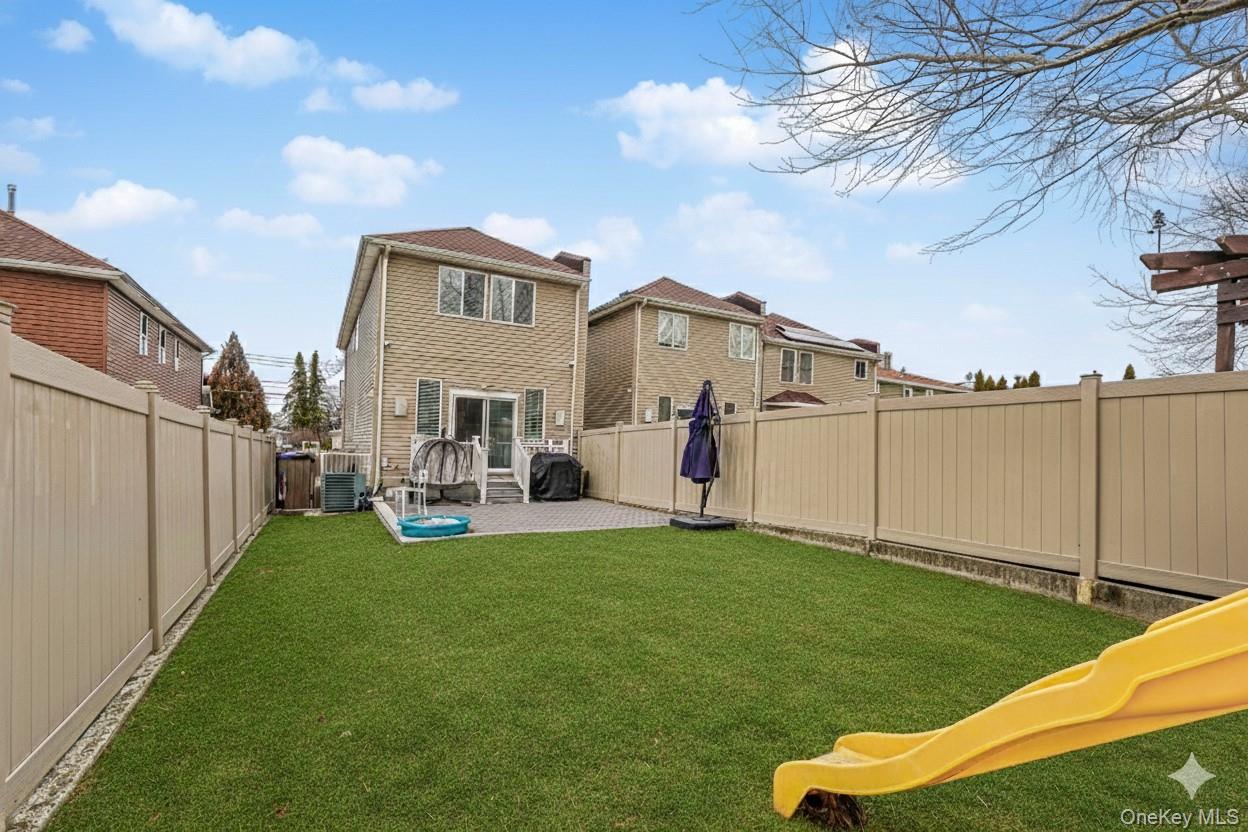 Welcome to this beautifully renovated, spacious detached Colonial offering 4 bedrooms and 4 bathrooms, perfectly situated on a quiet, friendly dead-end street in highly desirable Port Richmond. Designed for both comfort and entertaining, this home features a bright and airy open floor plan with elegant crown molding, classic wainscoting, and satin-finished hardwood floors throughout the main level. Sliding patio doors with built-in blinds lead to a custom deck equipped with an outdoor speaker system and Sonos connection — ideal for seamless indoor-outdoor living. The spacious eat-in kitchen is beautifully appointed with granite countertops and peninsula seating, rich cherrywood cabinetry, a touch-free automatic faucet, and stainless-steel appliances including range, microwave, dishwasher, and double-door refrigerator. Upper level, the second floor has been fully renovated and showcases stunning 16” Italian porcelain tile throughout. Four generously sized bedrooms offer ample closet space and an abundance of natural light. The fully finished basement provides exceptional additional space with an open layout, fully tiled flooring, French drain system, laundry room, half bath, and a custom-built bar complete with wine fridge and mini refrigerator/freezer — perfect for entertaining. The private backyard is thoughtfully designed with pavers, a lush lawn, swing set, and storage shed — perfect for relaxation or gatherings. Separate entrance to the basement is located on the side of the house. Conveniently located near local and express buses, major expressways, and shopping, this exceptional property offers space, style, and modern convenience in one of Port Richmond’s most sought-after neighborhoods. A true move-in-ready gem.