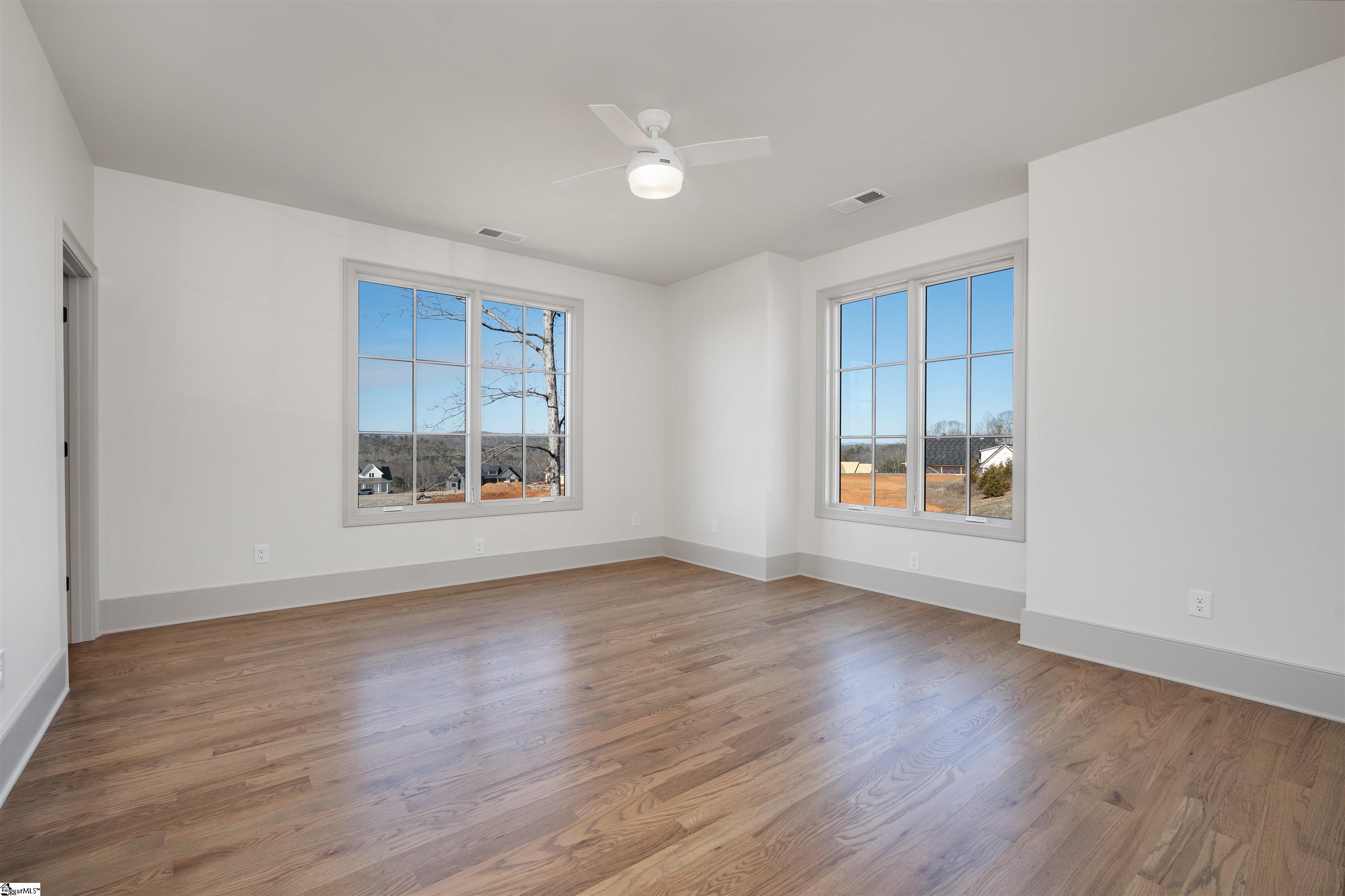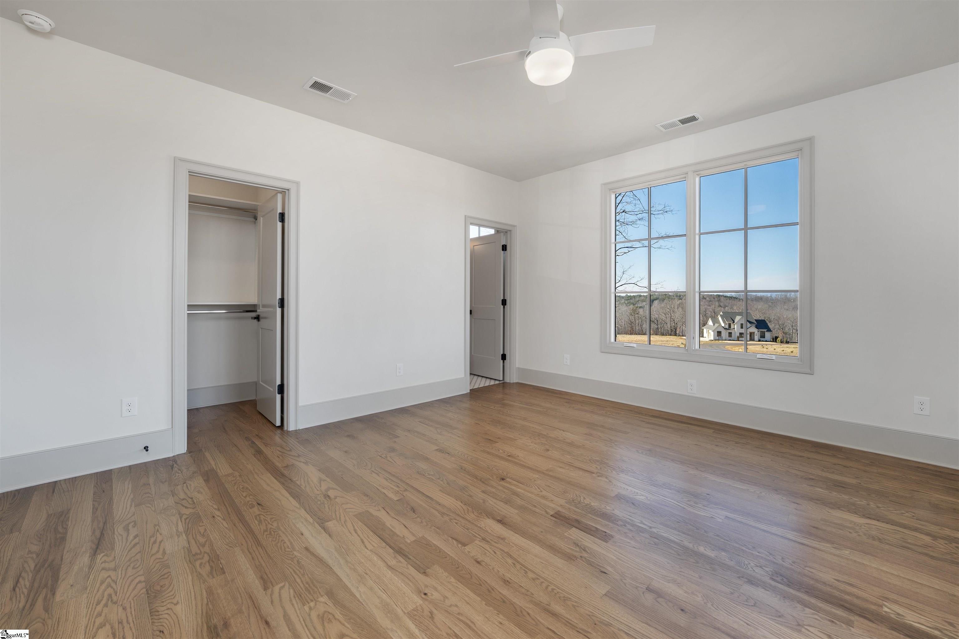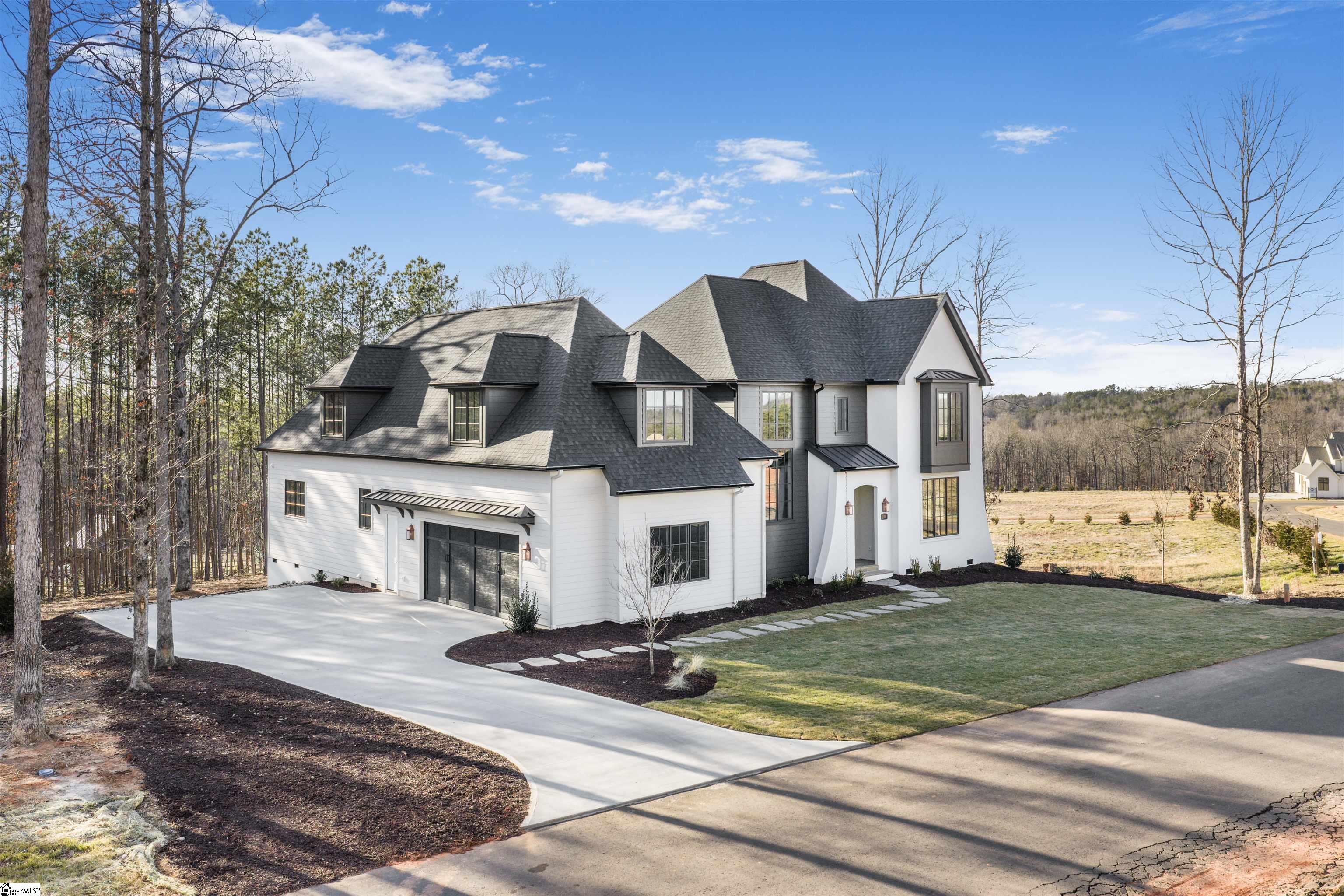 4, 300 square feet on just over an acre with Blue Ridge views from the living room and screened porch. New construction by White Buffalo Homes, whose work has been featured in Better Homes & Gardens and HGTV Magazine, in Longview Carolina, Jim Anthony’s 180-acre agricultural neighborhood in the foothills outside Easley. Transitional European design with Hardi lap siding, stucco, and a stone chimney. Metal accent roofs and exterior fixtures that will age beautifully. The lot has some nice hardwoods on it and feels like part of the landscape rather than carved out of it. Inside, ¾-inch solid oak hardwood floors run throughout with a custom oak staircase, solid pine trim, and solid core doors. The kitchen is anchored by a limestone hood with custom maple cabinetry, quartz countertops, and a full Bosch appliance package. The living room has a ventless gas fireplace and views of the ridge. Main level has the prime suite with a zero-entry tile shower, open living and dining areas, laundry, walk-in pantry, and a private office with closets that can serve as a fifth bedroom. Upstairs has three bedrooms, a loft, and a 21x34 bonus room that is one of the most usable spaces in the house. Behind it, a large walk-in unfinished attic gives you serious storage now or future square footage when you’re ready. The screened porch is where this house comes together. 19x15 with iron railings, a vaulted pine ceiling, a gas fireplace, and mountain views that don’t have anything in front of them. Trex deck beyond with TimberTech aluminum railing's. Irrigation installed. Oversized 2. 5-car garage with an EV charger already installed. 400-amp electrical service, Navien tankless gas water heater with recirculating pump, LED throughout, pre-wired for smart home, 10-year HVAC parts warranty with optional labor warranty, and Sherwin Williams Duration paint inside and out. This home sits in a community designed with as much intention as the house itself. Sixty acres of preserved green space, community gardens and chicken coops, beehives, over two miles of trails, and a mountaintop pavilion with 50-mile views of the Blue Ridge Escarpment. Four minutes from downtown Easley, twenty minutes to Greenville and Clemson.
