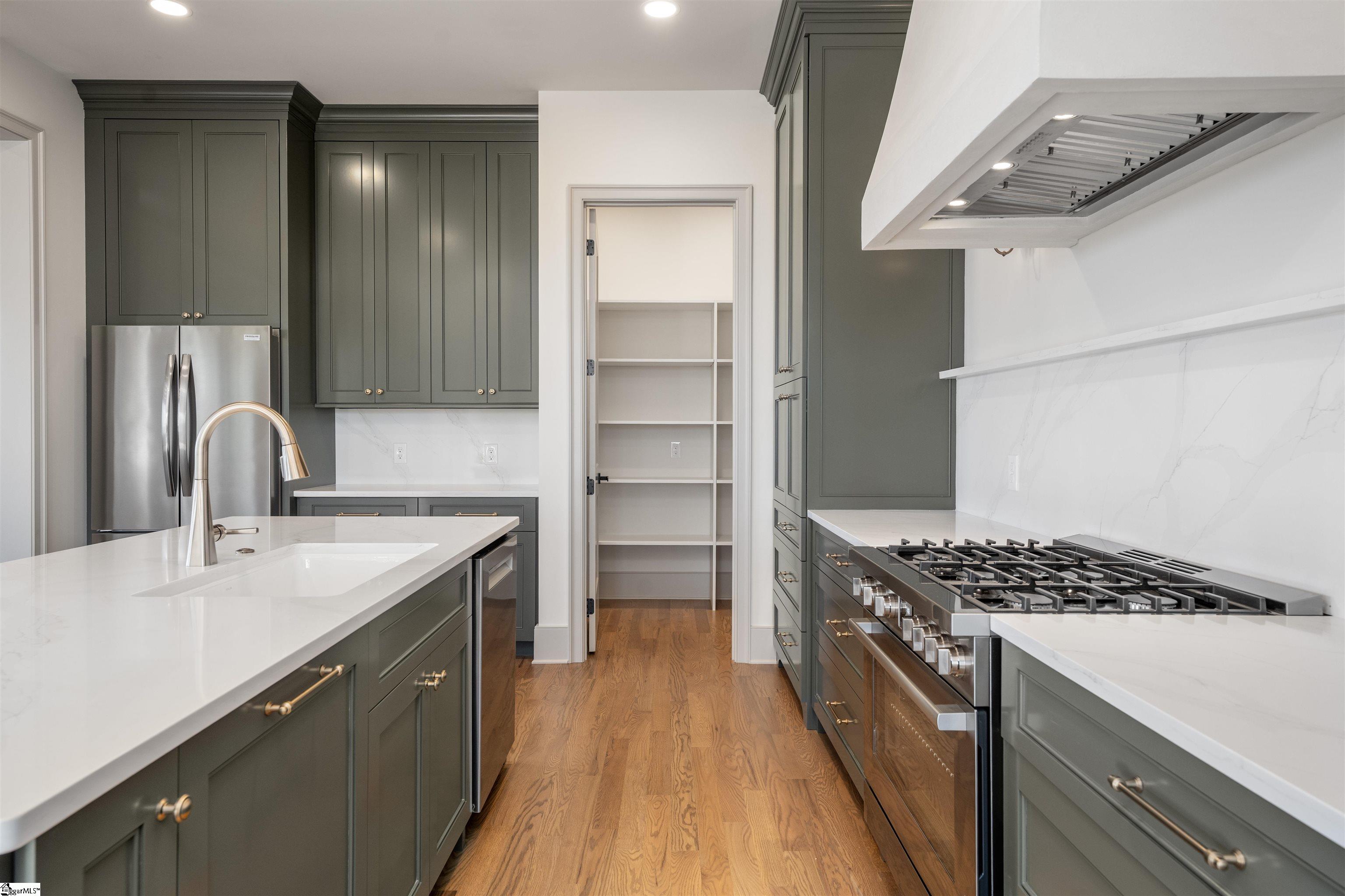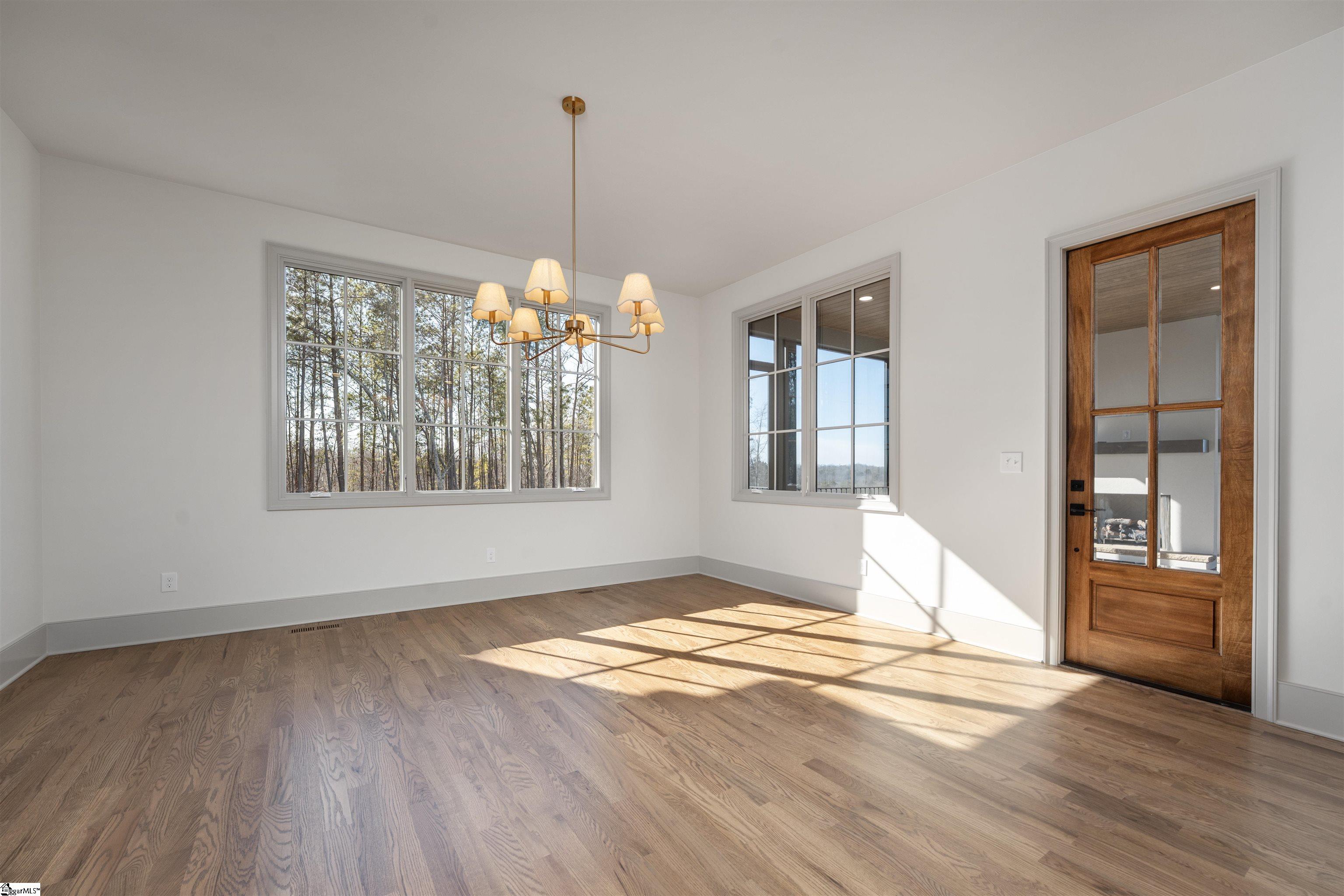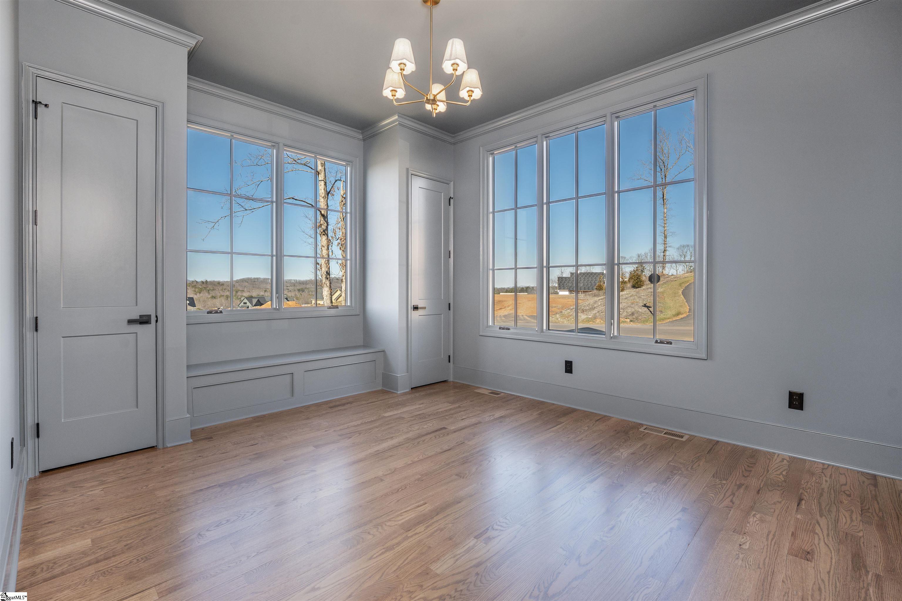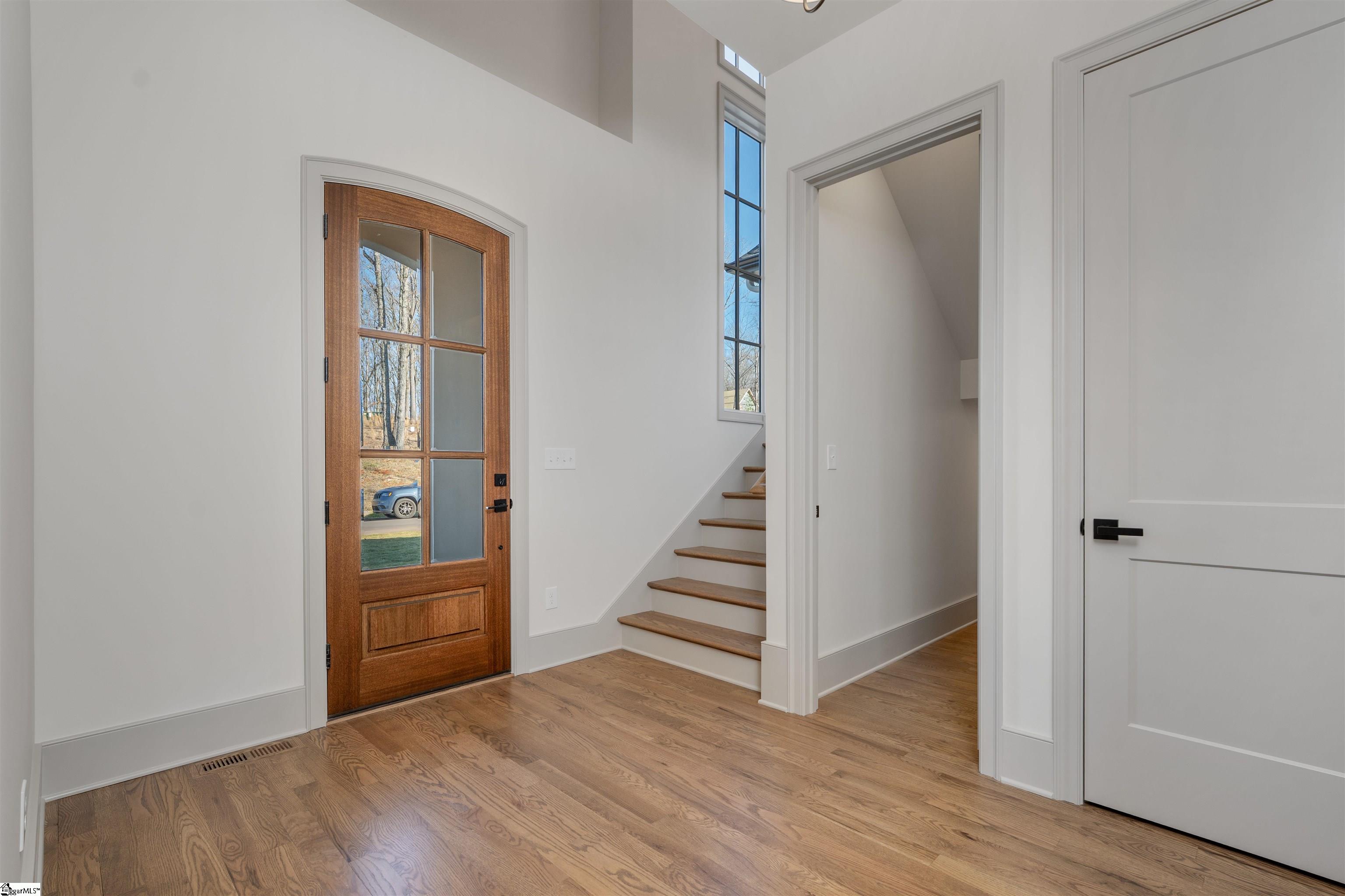 4, 300 square feet on just over an acre with Blue Ridge views from the living room and screened porch. New construction by White Buffalo Homes, whose work has been featured in Better Homes & Gardens and HGTV Magazine, in Longview Carolina, Jim Anthony’s 180-acre agricultural neighborhood in the foothills outside Easley. Transitional European design with Hardi lap siding, stucco, and a stone chimney. Metal accent roofs and exterior fixtures that will age beautifully. The lot has some nice hardwoods on it and feels like part of the landscape rather than carved out of it. Inside, ¾-inch solid oak hardwood floors run throughout with a custom oak staircase, solid pine trim, and solid core doors. The kitchen is anchored by a limestone hood with custom maple cabinetry, quartz countertops, and a full Bosch appliance package. The living room has a ventless gas fireplace and views of the ridge. Main level has the prime suite with a zero-entry tile shower, open living and dining areas, laundry, walk-in pantry, and a private office with closets that can serve as a fifth bedroom. Upstairs has three bedrooms, a loft, and a 21x34 bonus room that is one of the most usable spaces in the house. Behind it, a large walk-in unfinished attic gives you serious storage now or future square footage when you’re ready. The screened porch is where this house comes together. 19x15 with iron railings, a vaulted pine ceiling, a gas fireplace, and mountain views that don’t have anything in front of them. Trex deck beyond with TimberTech aluminum railing's. Irrigation installed. Oversized 2. 5-car garage with an EV charger already installed. 400-amp electrical service, Navien tankless gas water heater with recirculating pump, LED throughout, pre-wired for smart home, 10-year HVAC parts warranty with optional labor warranty, and Sherwin Williams Duration paint inside and out. This home sits in a community designed with as much intention as the house itself. Sixty acres of preserved green space, community gardens and chicken coops, beehives, over two miles of trails, and a mountaintop pavilion with 50-mile views of the Blue Ridge Escarpment. Four minutes from downtown Easley, twenty minutes to Greenville and Clemson.
