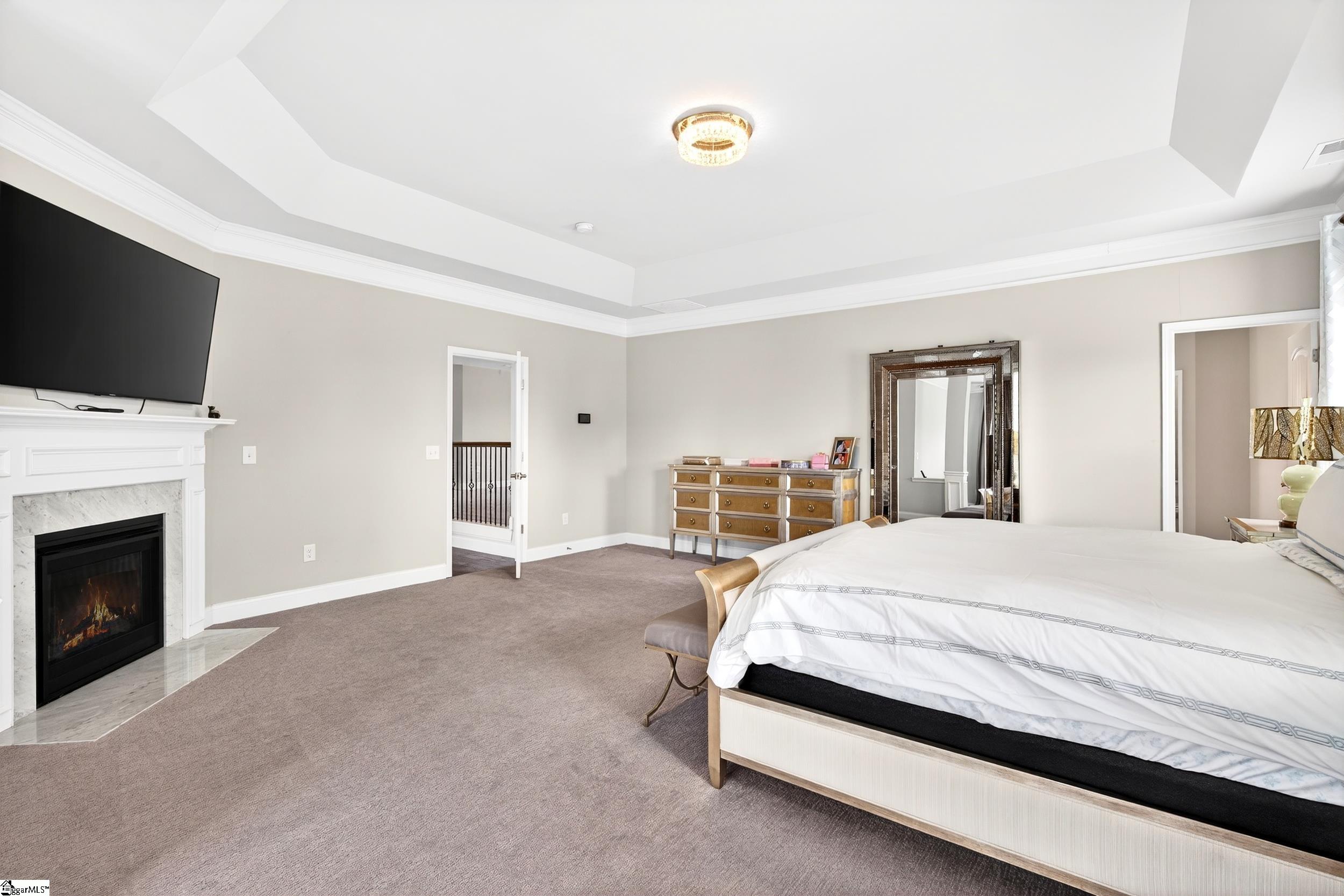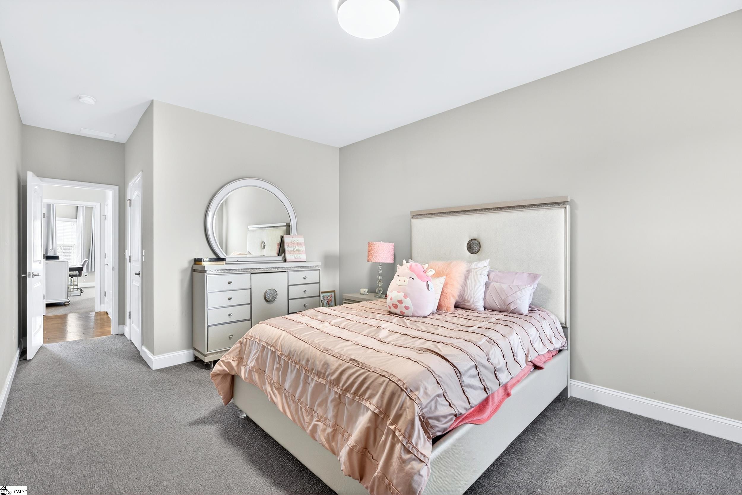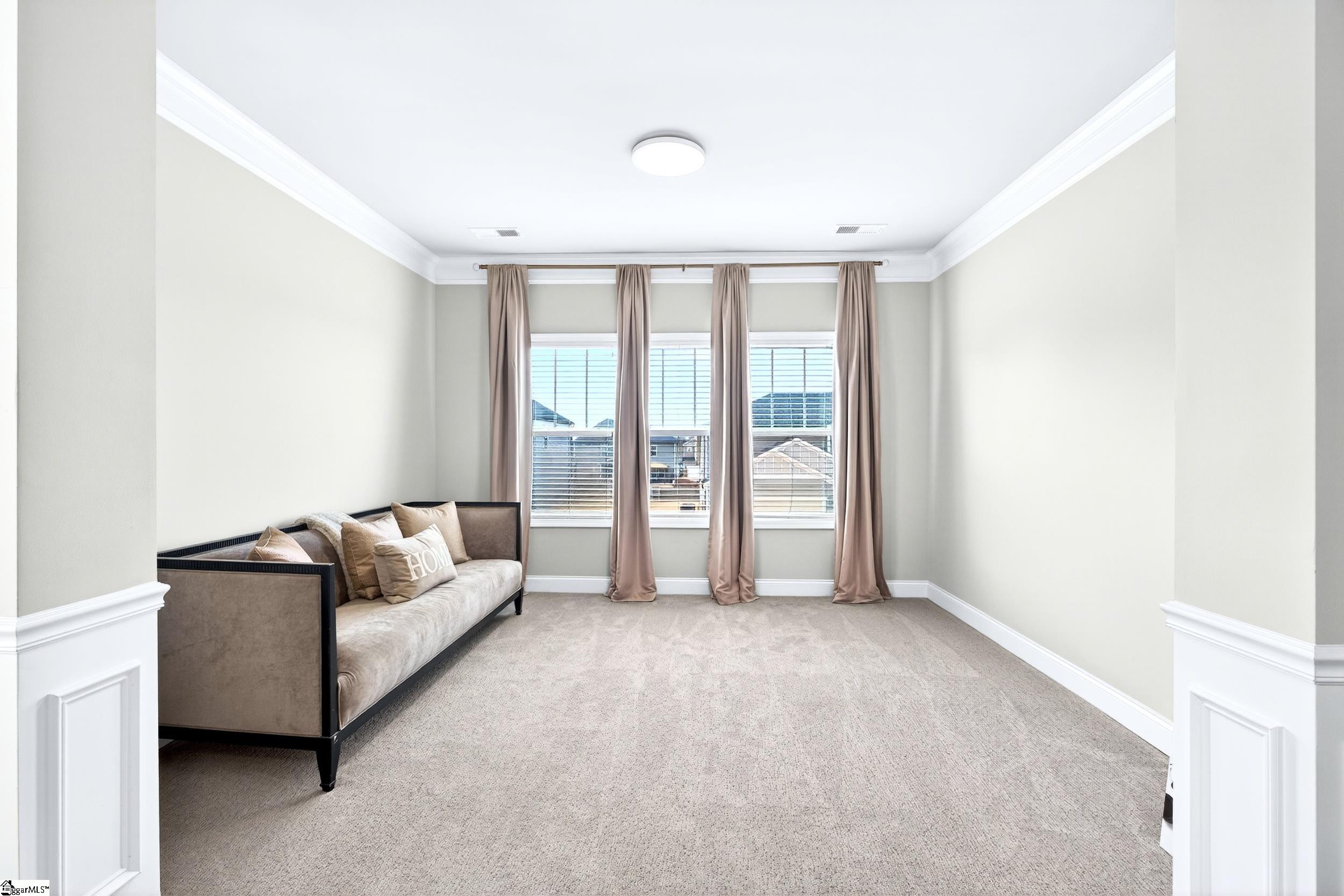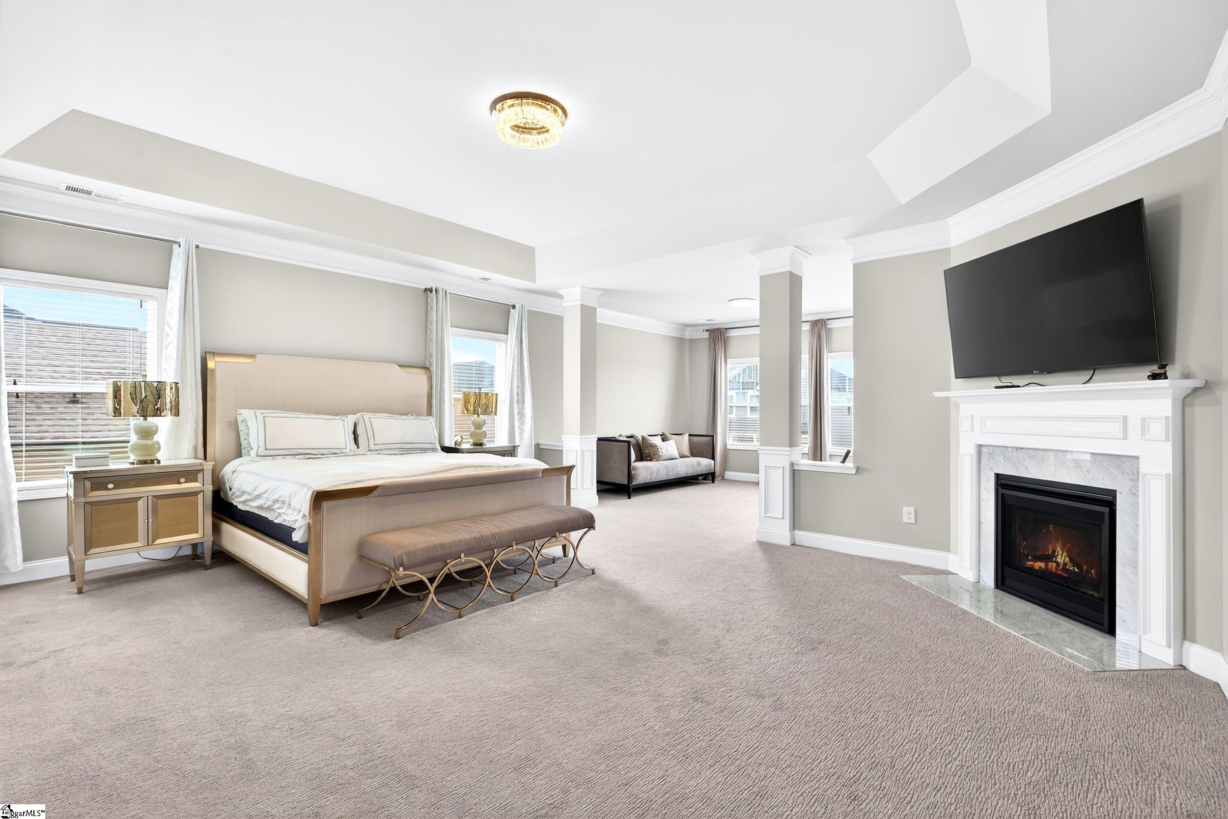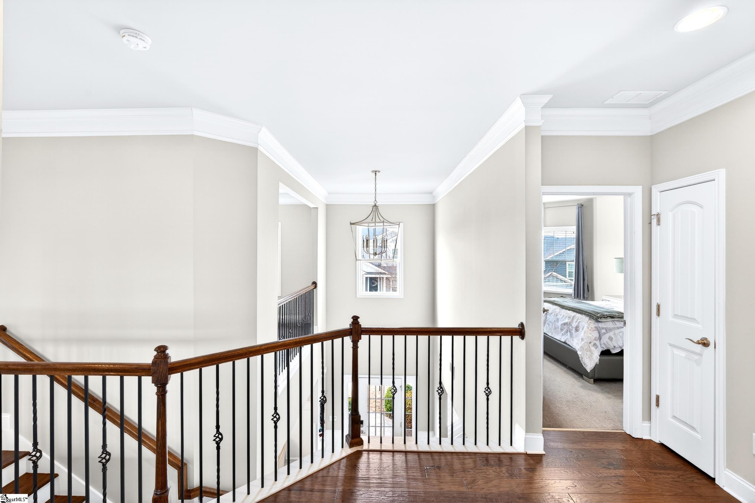 Beautiful brick and stone two-story home featuring hardwood floors, extensive trim detail, and a grand entry with staircase. The main level offers an open floor plan with a coffered ceiling in the living room, fireplace, and abundant natural light. Formal dining room with wainscoting and crown molding. Spacious bedrooms upstairs plus a versatile loft/flex area. The owner’s suite includes dual vanities and a separate shower. Dedicated laundry room and ample storage throughout. Enjoy the covered back patio overlooking a large, level backyard—perfect for entertaining or future outdoor additions. Two-car garage. Conveniently located near BMW, GSP Airport, downtown Greer and Greenville, with easy access to shopping, dining, and major highways.